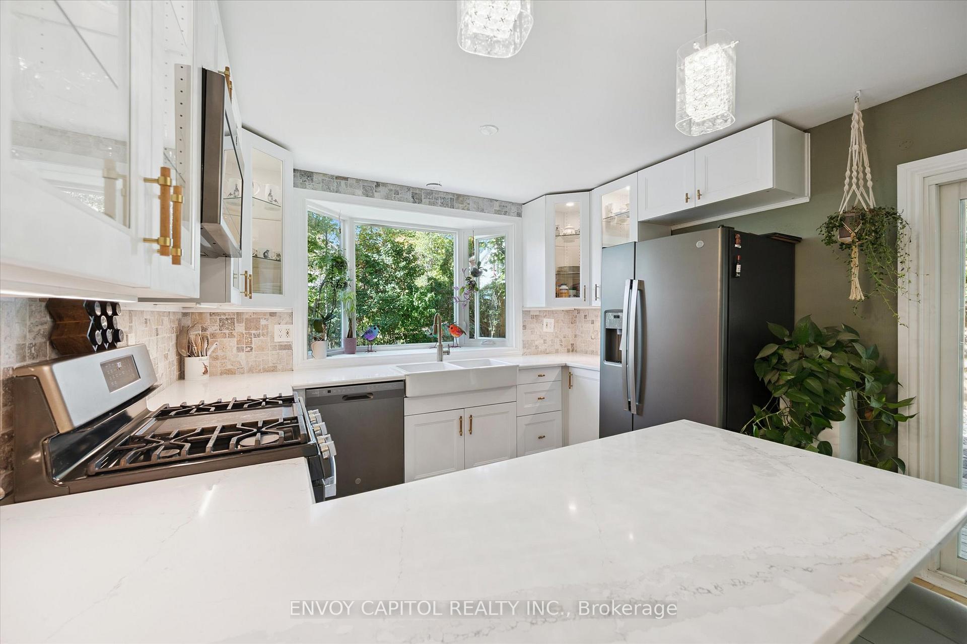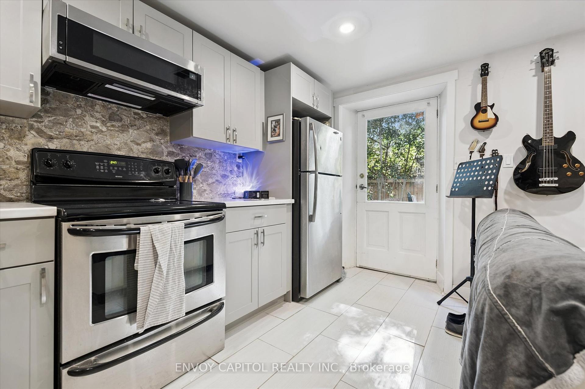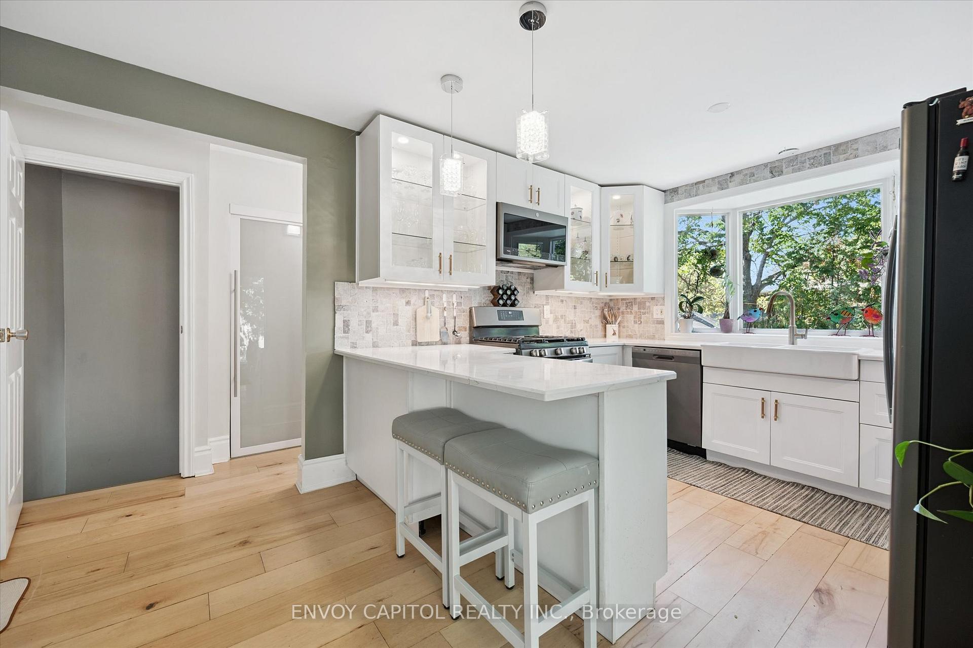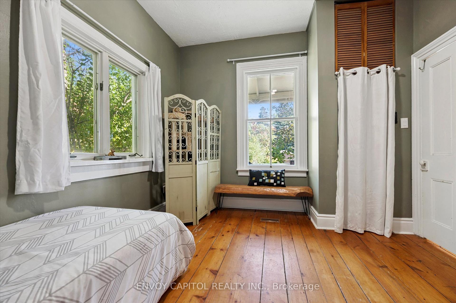 Adorable circa 1875 build set on a generous and private 75′ x 117′ lot. The house is set on a hill and is surrounded by mature trees making this home all the more magical. Ideally located close to trendy downtown shops and dining, Speed River trails, the Go Station and a short drive to University of Guelph. The home has been lovingly renovated top to bottom and is perfect for first-timers and right-sizers. The chef inspired kitchen, complete with eat-in peninsula, gas stove, and new appliances grant easy and welcoming entertaining opportunities. Directly off the kitchen is the open concept dining and living rooms allowing for a functional and airy layout with 10ft ceilings. After dinner cozy up and enjoy the crackle of the wood stove while you relax in this welcoming space. 2 bedrooms off this area make for convenient sleeping quarters. A fully renovated bathroom with awe-inspiring walk-in glass shower completes this floor. The walkout basement is the definition of flex space in this house. An in-law suite, kids quarters, secondary entertaining space or even a potential rental income stream could be considered for this lower level retreat. Through the basement walkout, privacy abounds in the much desired greenspace that this property lends to you. With rolling hills, a large sun filled deck and a handy storage shed this property exudes charm and character! Updates: kitchen reno (23-24), furnace (25), ac (24), fencing (25), deck and stairs (24), windows/doors (24), appliances (23), washer/dryer (23), water softener (22).