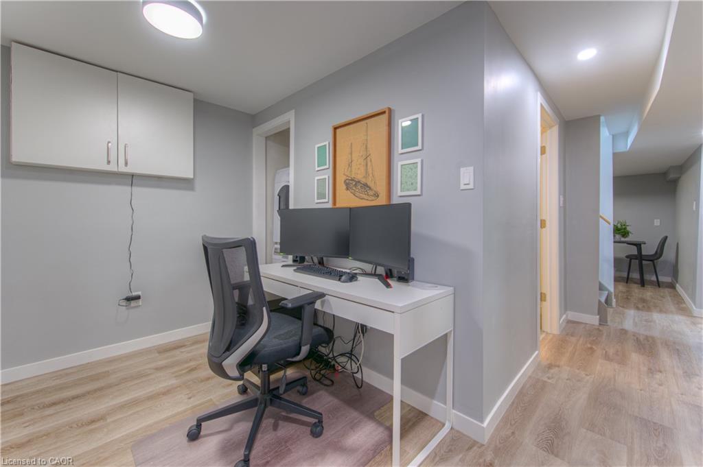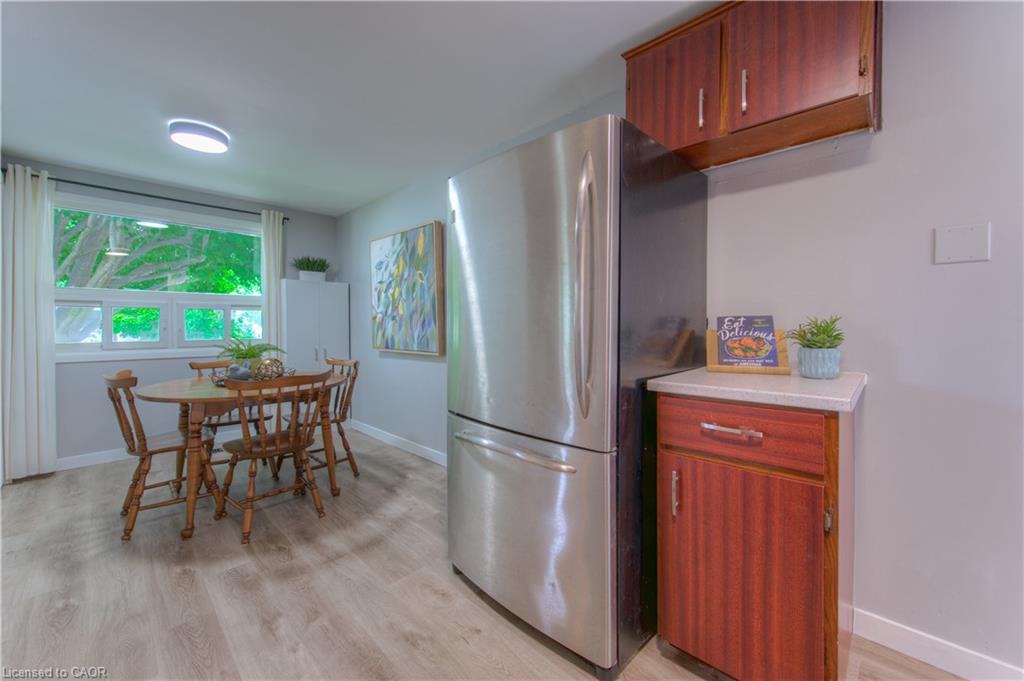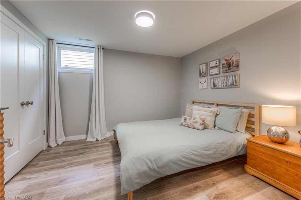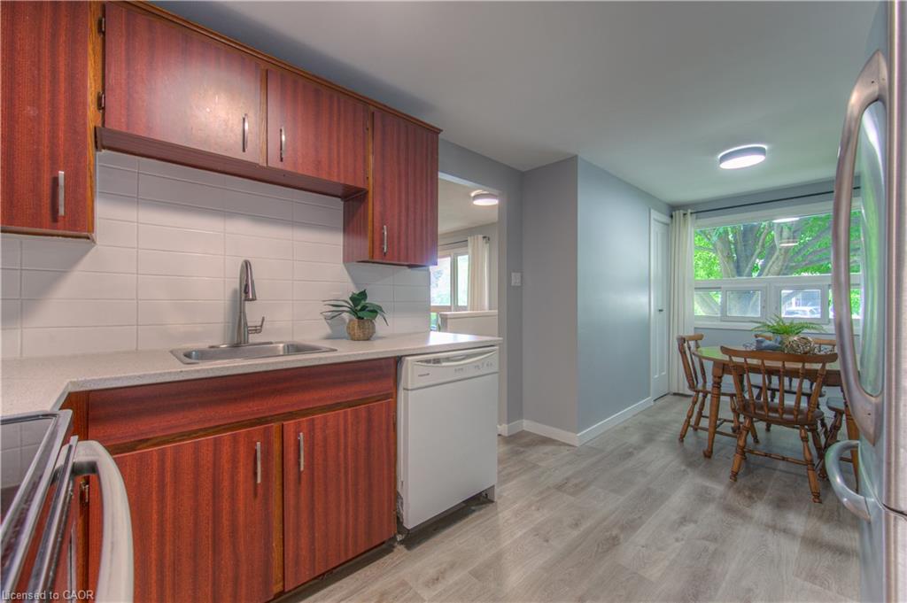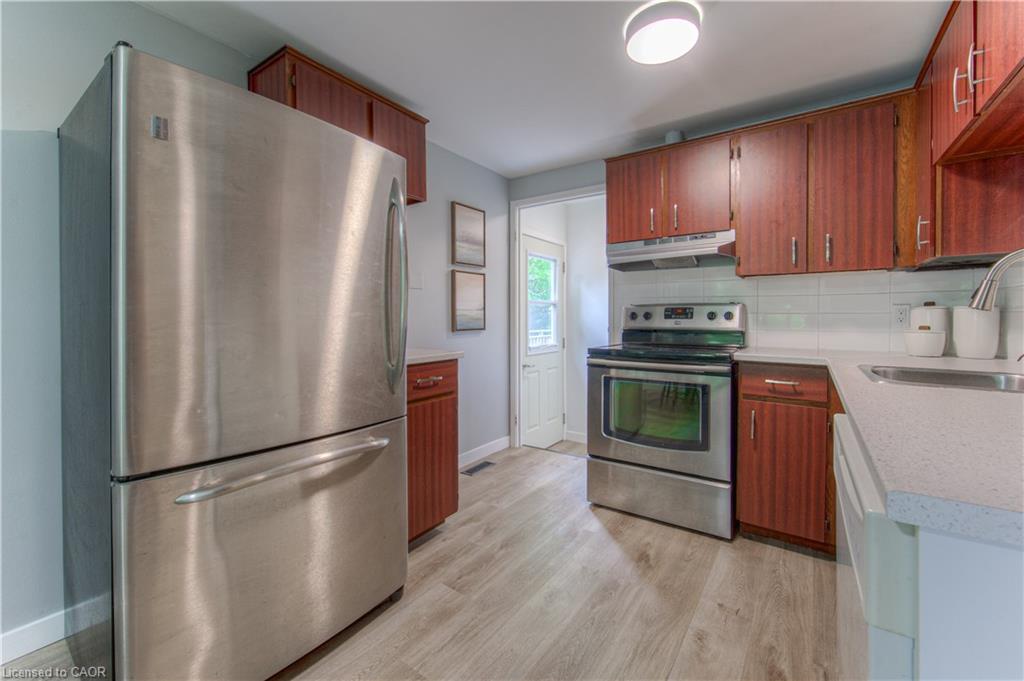Open House Sat June 21 & Sun June 22 2-4pm. With nearly $70,000 in upgrades, this fully renovated bungalow in Waterloo’s sought-after Lincoln Heights offers modern living, thoughtful finishes, and future flexibility with in-law or duplex potential. The main floor features wide-plank luxury vinyl flooring (2023), fresh baseboards, updated lighting, and a fresh, neutral paint palette. The kitchen has been tastefully redone with new countertops, subway tile backsplash, plenty of room to cook and connect over family meals, and easy clean up with a convenient dishwasher. The main 4-piece bathroom is fully renovated in a timeless style (2021) and serves the 3 spacious, main floor bedrooms. The finished, updated, basement (2021) adds incredible value with a large rec room, 4th bedroom, stylish 3-piece bath, and a kitchen rough-in, offering excellent potential for multigenerational living, a rental suite, or a private guest space. Everything down here has been taken care of, popcorn ceilings have been removed, new drywall installed, 5 new windows (including 2 egress’) fill the space with light. A sprinkler head and in-duct smoke detector enhance safety for a legal suite setup. Major mechanical upgrades include: new electrical panel (2023), 2-stage furnace, water softener (2020), AC (2016), interconnected smoke detectors and updated insulation between floors support peace of mind and sound separation. Curb appeal shines with a freshly painted exterior (2023), trimmed trees, low-maintenance landscaping, and a new backyard shed. The deep driveway fits 3 cars, and mature trees offer year-round privacy. Located on a quiet, family-friendly street close to schools, parks, shopping, public transit, and Hwy 8, just minutes to the 401, this move-in ready home is ideal for families, investors, or anyone seeking a stylish home with room to grow.