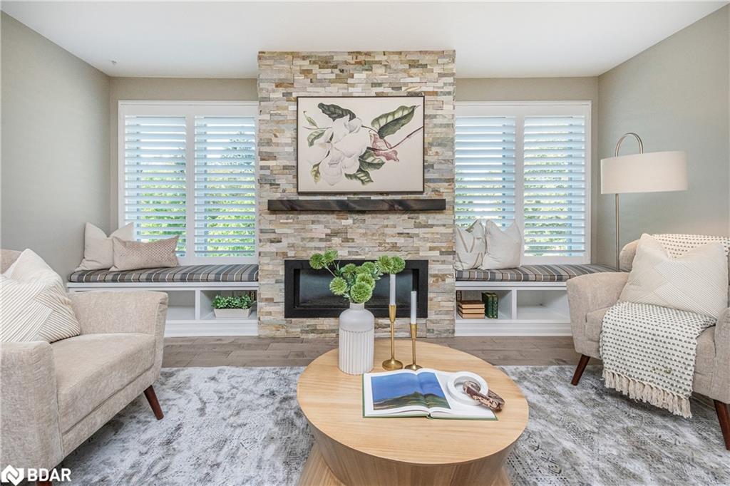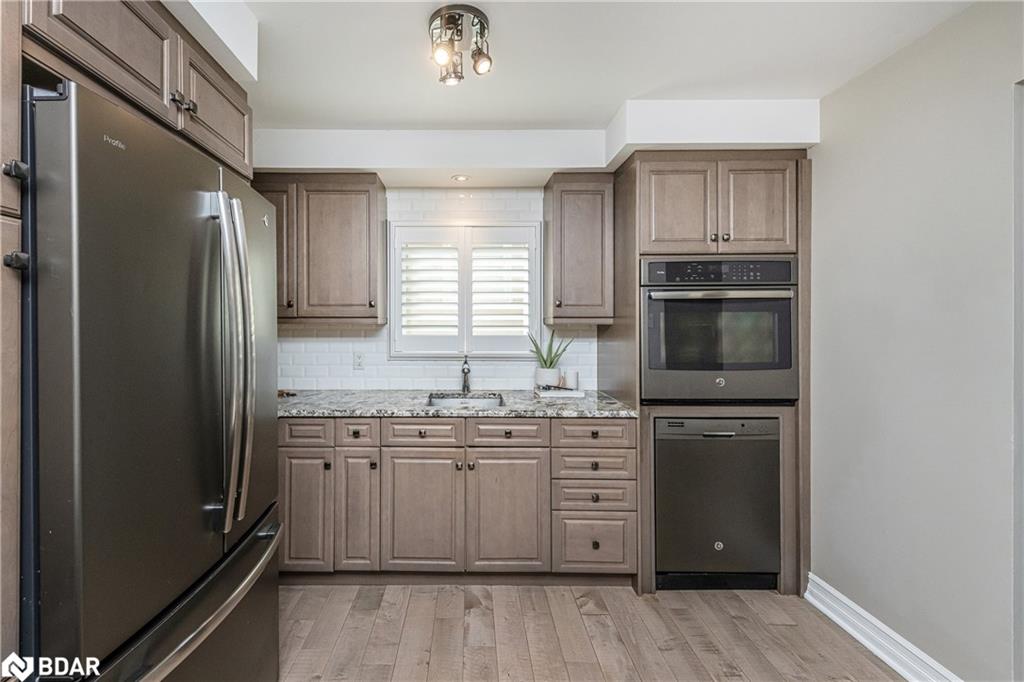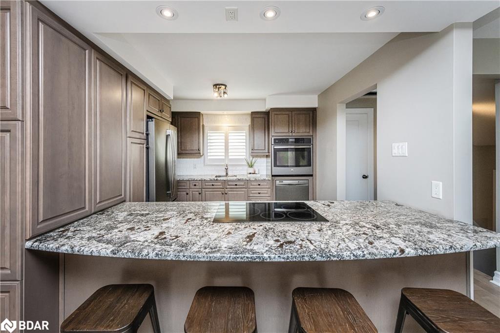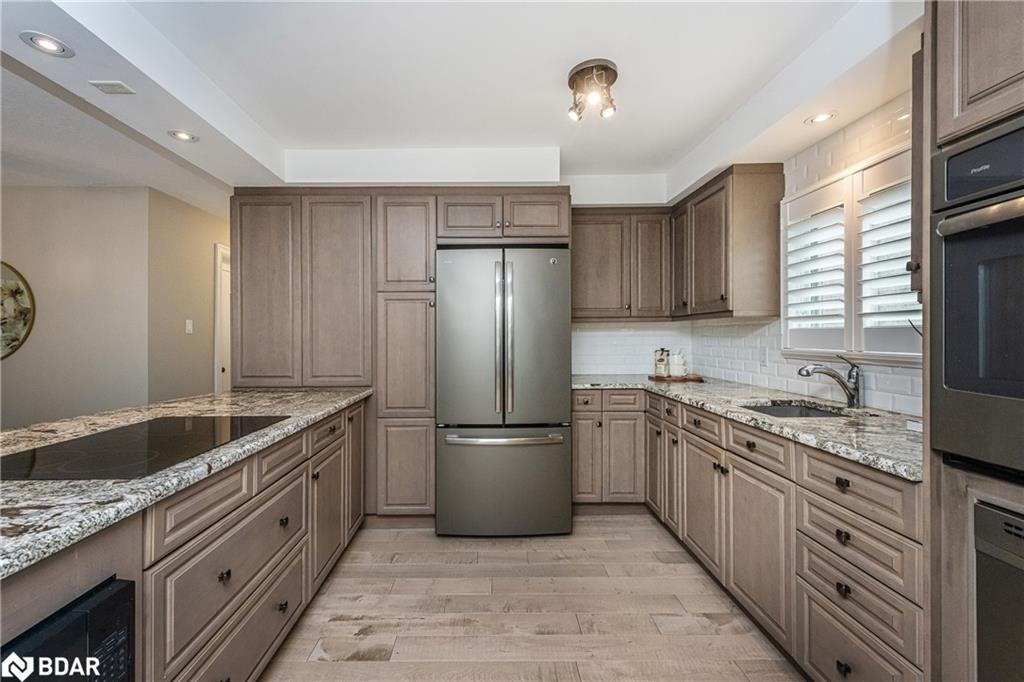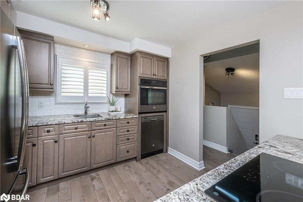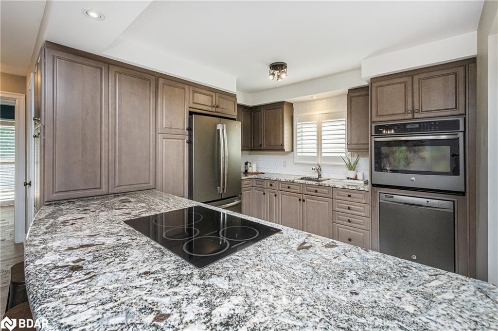 This is one home you don’t want to miss! This completely updated raised bungalow is tucked away on a quiet crescent close to shopping, restaurants, and schools. Freshly painted and upgraded top to bottom, this home offers peace of mind with nothing with left to do but move in and relax. From the moment you arrive, manicured perennial gardens set the tone for the pride of ownership throughout. Inside, every detail has been thoughtfully updated with timeless, high-end finishes. Hardwood flooring and California shutters flow through the main level. The chefs kitchen features abundant cabinetry, a pantry, granite counters, tile backsplash, glass cooktop, and matching GE Profile appliances. Overlooking counter seating, the dining area, and great room, this kitchen makes entertaining effortless. The great room is anchored by a striking stone fireplace, flanked by oversized windows with charming bench seating that fill the space with natural light. Down the hall, past the updated 2-piece bathroom, is the primary suite, a true retreat! This oversized bedroom offers a walkout to the deck, an extra-large closet, and space for sitting or reading. The spa-like ensuite includes a double vanity with stone countertops and a glass walk-in tiled shower, another example of the top-to-bottom updates that make this home feel brand new. The lower level offers a separate entrance, kitchenette, and a 4-piece bathroom. Two generous bedrooms with large above-grade windows provide plenty of natural light, ideal for in-laws, guests, or rental potential. Outside, a two-tier deck provides multiple sitting areas with room to dine, lounge, and barbecue. Surrounded by mature trees, perennials, and a cozy fire pit, the backyard is the perfect place to unwind. This home truly leaves nothing to do but move in and enjoy.