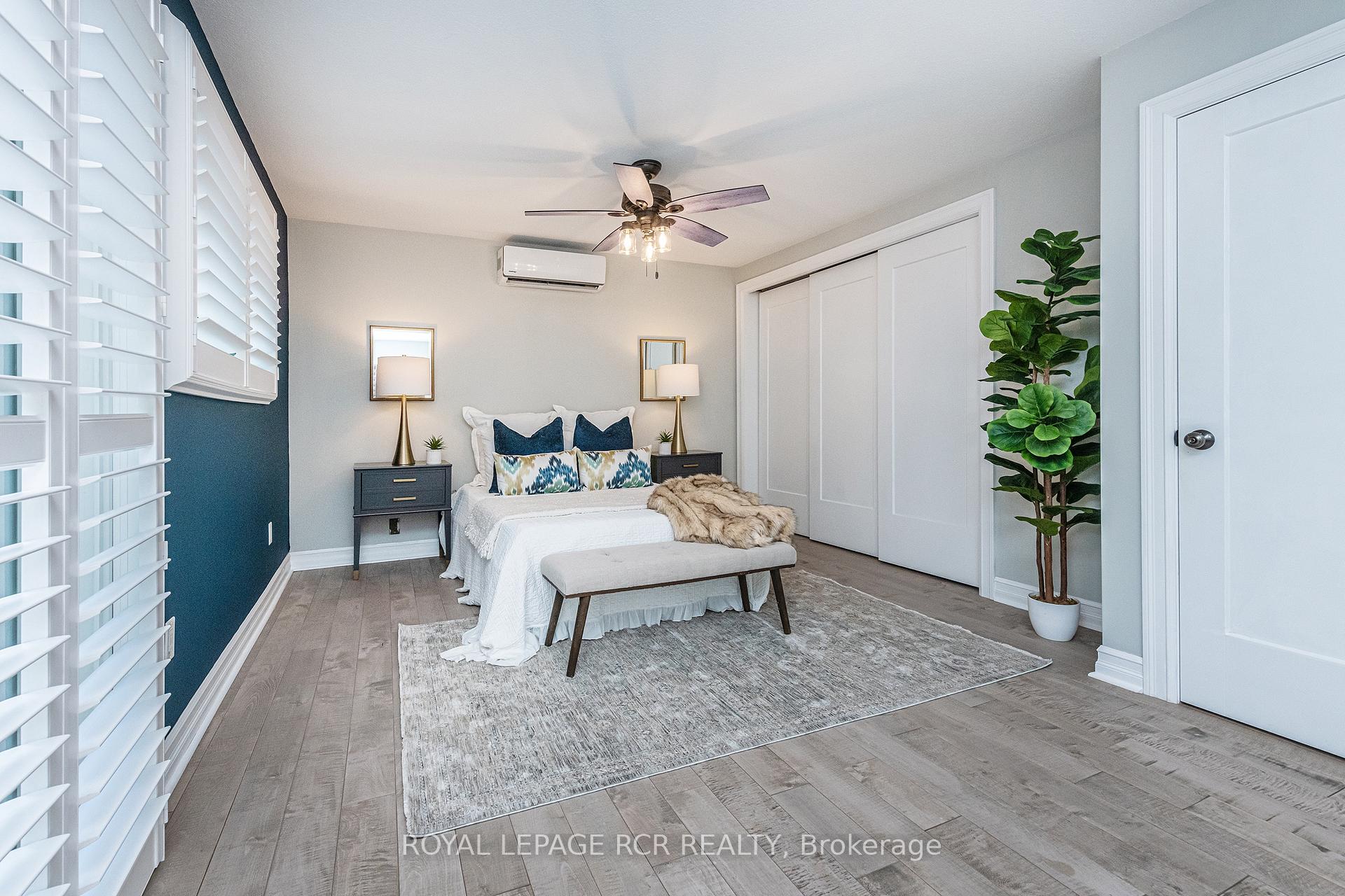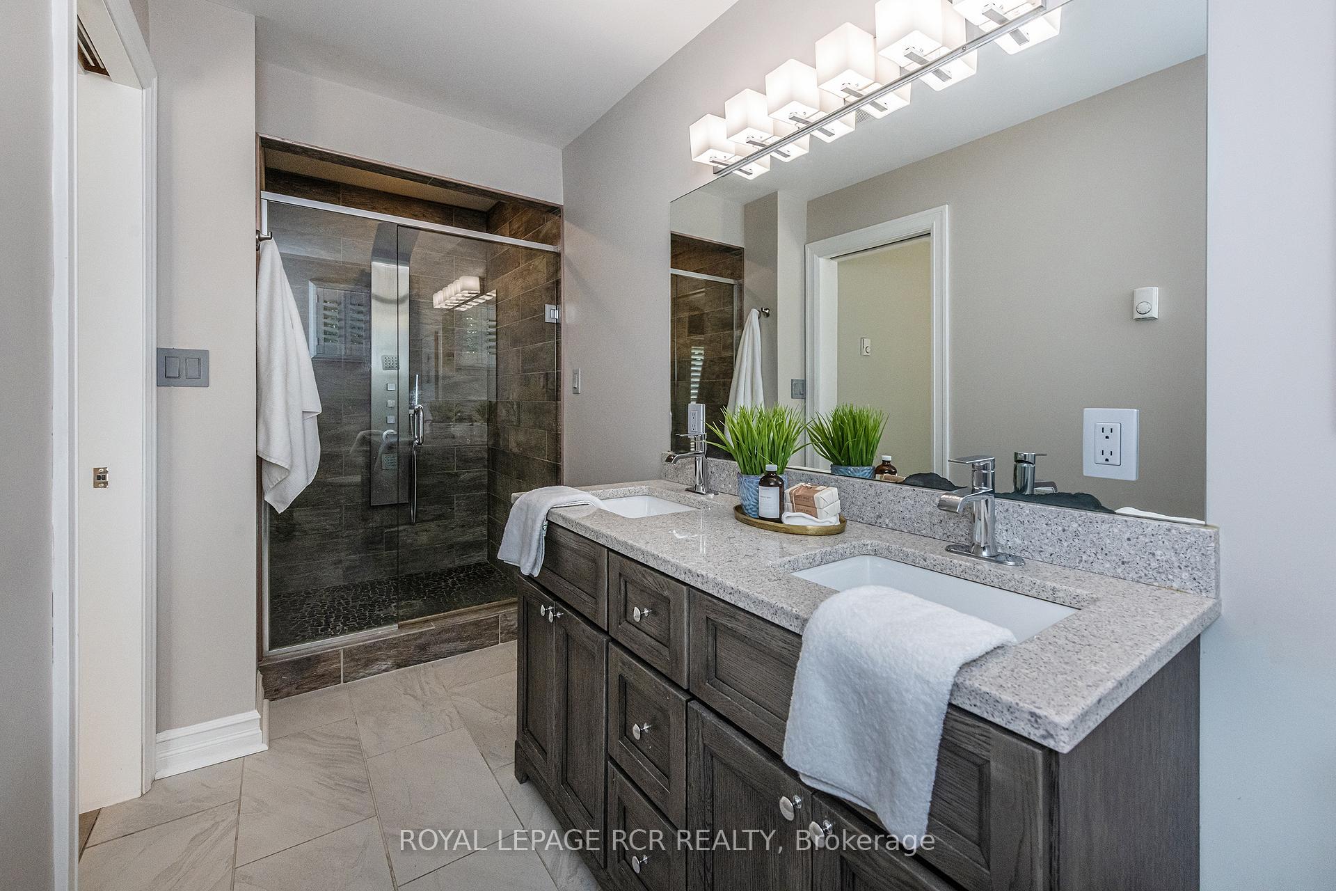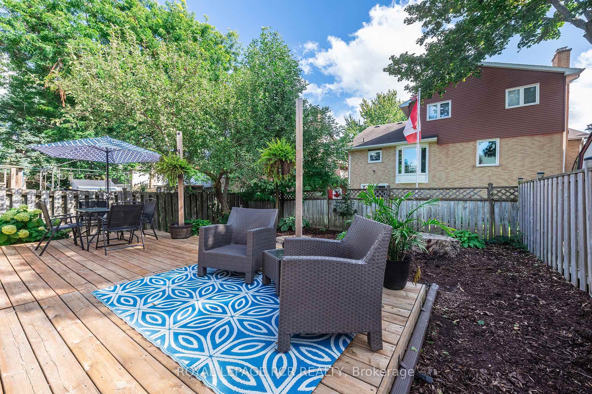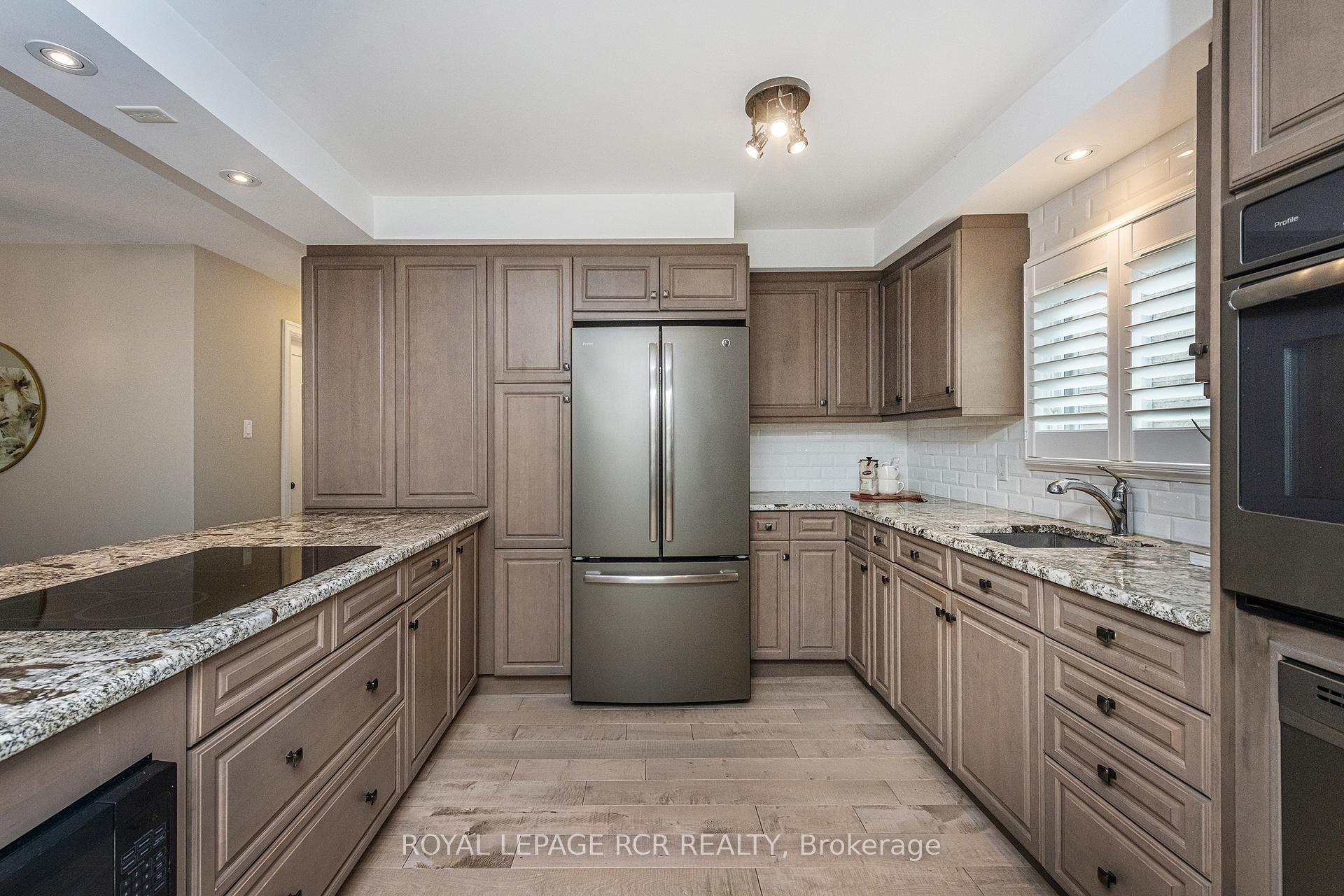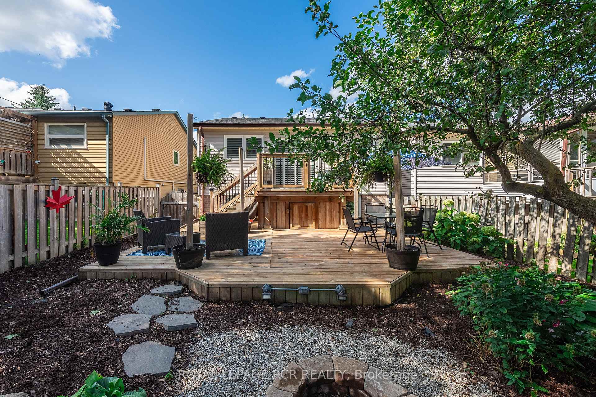 Completely updated, this raised bungalow is tucked away on a quiet crescent close to shopping, restaurants, and schools. Freshly painted and upgraded top to bottom, this home offer peace of mind with nothing left to do but move in and relax. From the moment you arrive, manicured perennial gardens set the tone for the pride of ownership throughout. Inside, every detail has been thoughtfully updated with timeless, high-end finishes. Hardwood flooring and California shutters flow through the main level. The chefs kitchen features abundant cabinetry, a pantry, granite counters, tile backsplash, glass cooktop, and matching GE Profile appliances. Overlooking counter seating, the dining area, and great room, this kitchen makes entertaining effortless. The great room is anchored by a striking stone fireplace, flanked by oversized windows with charming bench seating that fill the space with natural light. Down the hall, past the updated 2-piece bathroom, is the primary suite, a true retreat! This oversized bedroom offers a walkout to the deck, an extra-large closet, and space for sitting or reading. The spa-like ensuite includes a double vanity with stone countertops and a glass walk-in tiled shower, another example of the top-to-bottom updates that make this home feel brand new. The lower level offers a separate entrance, kitchenette, and a 4-piece bathroom. Two generous bedrooms with large above-grade windows provide plenty of natural light, ideal for in-laws, guests, or rental potential. Outside, a two-tier deck provides multiple sitting areas with room to dine, lounge, and barbecue. Surrounded by mature trees, perennials, and a cozy fire pit, the backyard is the perfect place to unwind. This home truly leaves nothing to do but move in and enjoy.