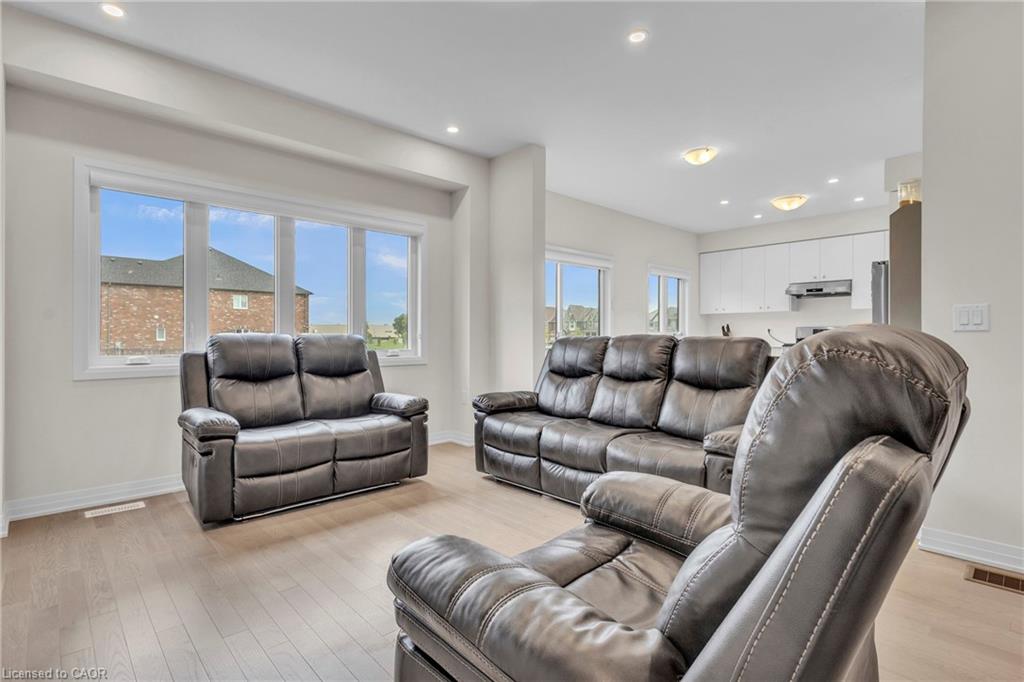 hardwood flooring & soaring 9ft Smooth Ceilings on Main level. Pot Lights in Kitchen & Family room. Big windows all around the house. This