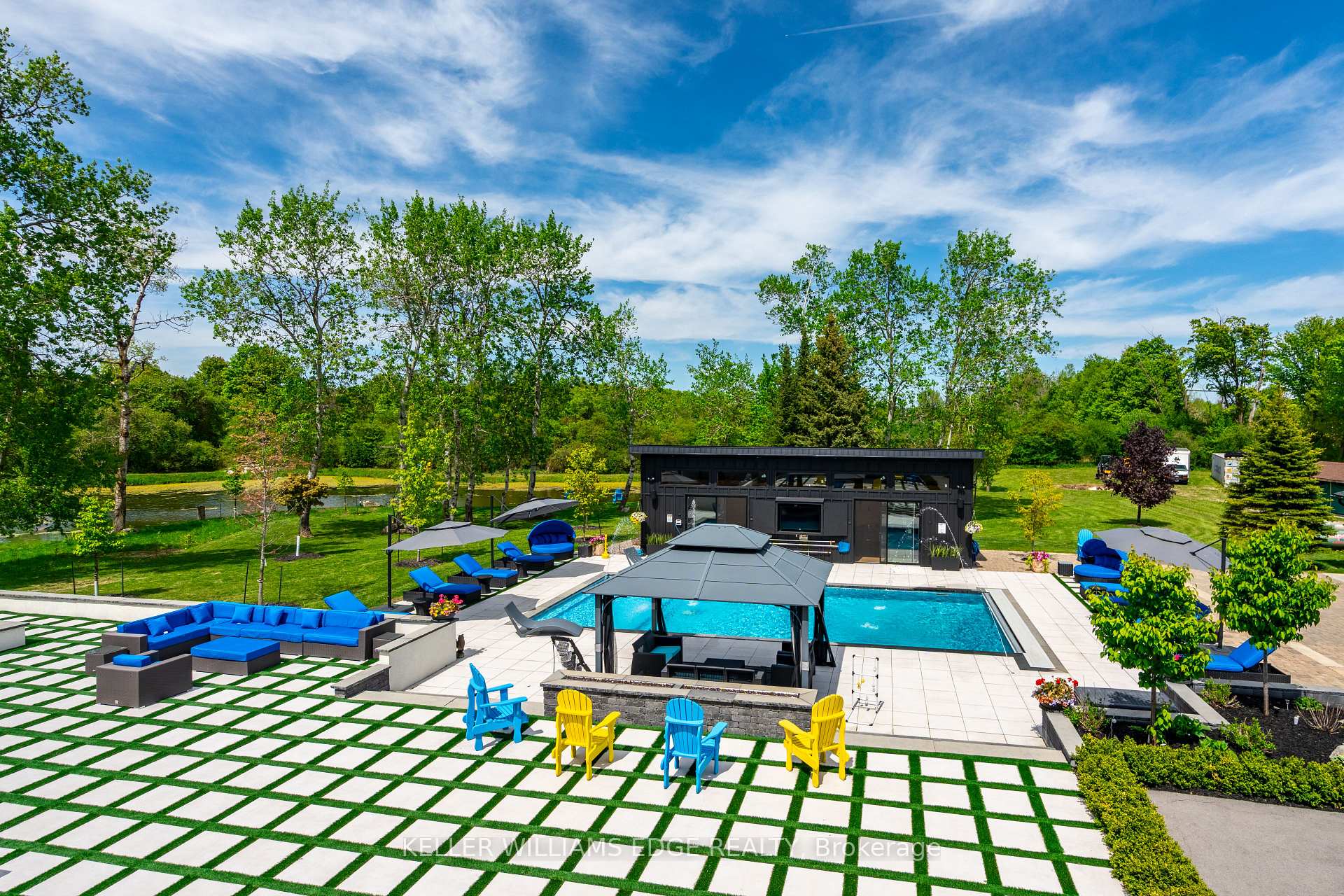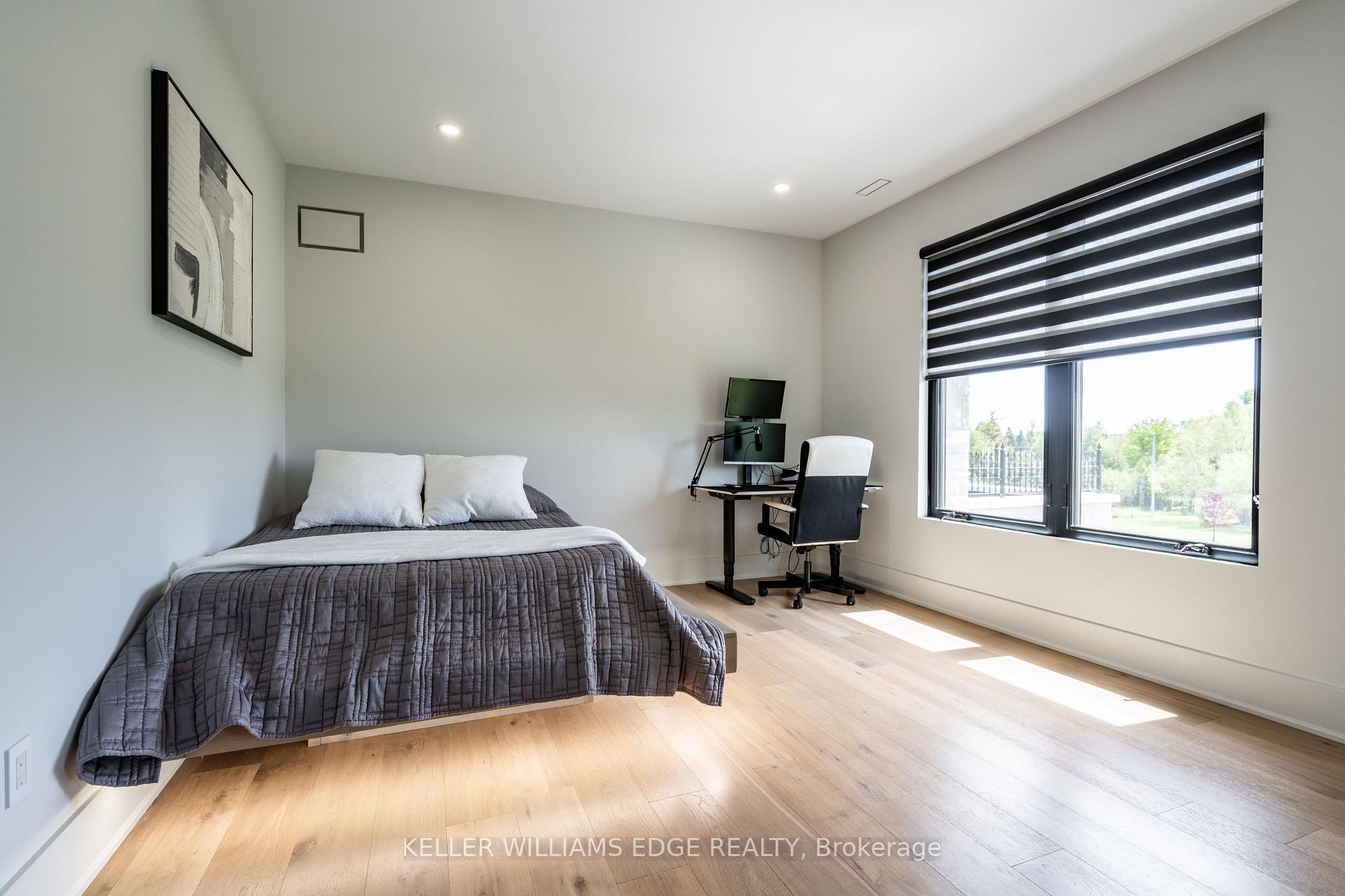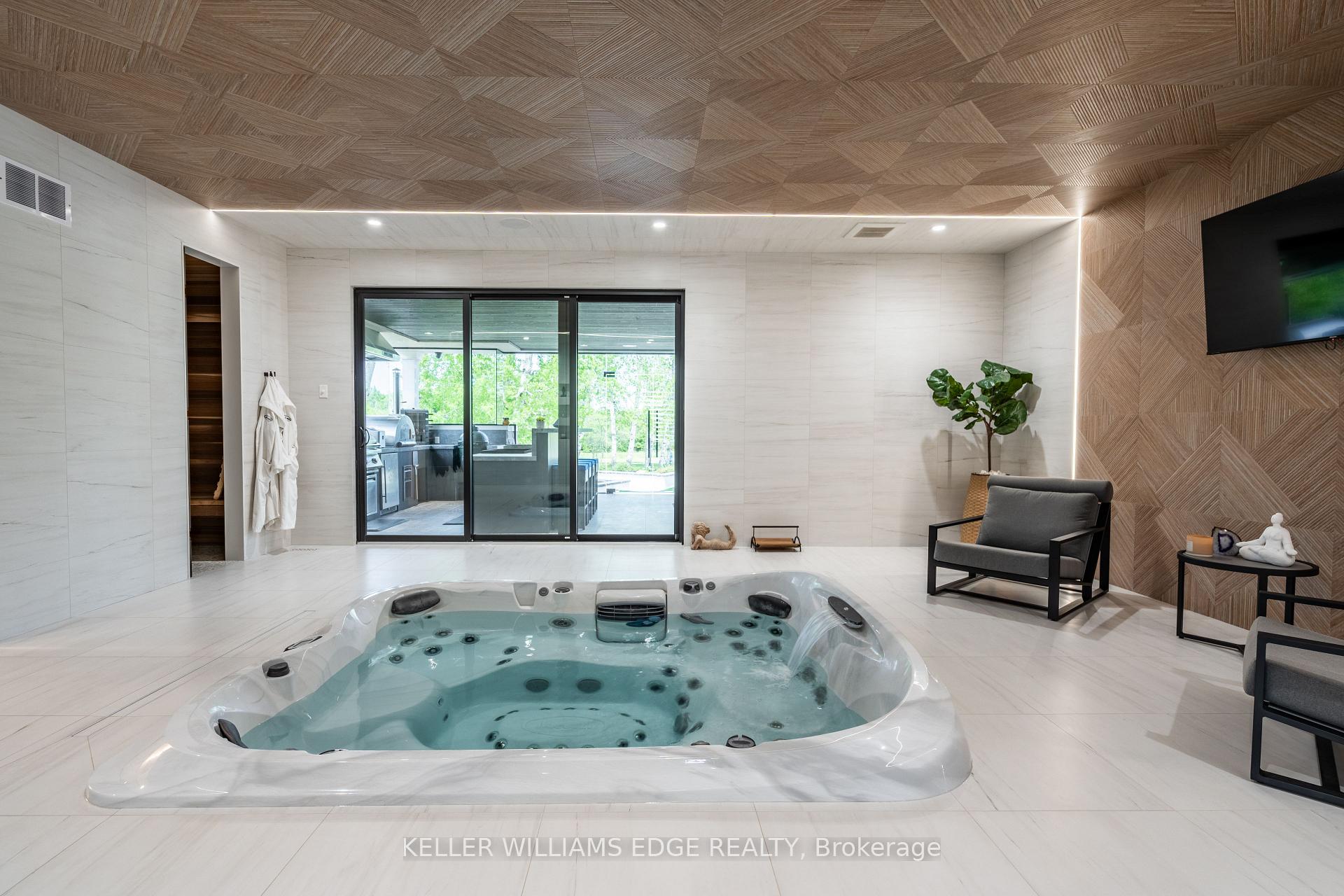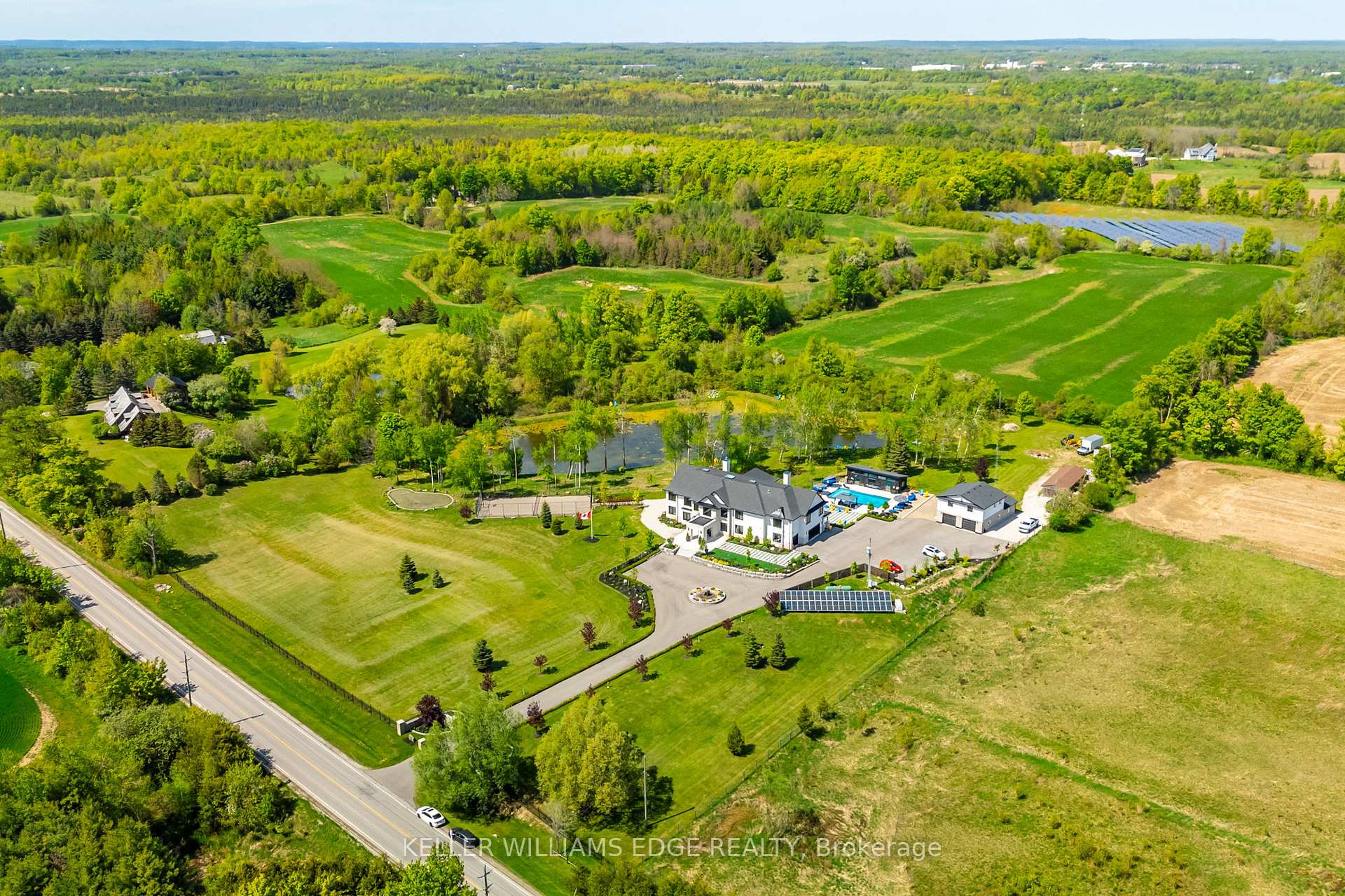 A truly rare offering. Set on 5.76 acres of private, tree-lined grounds, this custom-built estate presents an exceptional opportunity to own a secluded executive retreat minutes from the GTA. Thoughtfully designed and meticulously crafted by its original owners, the residence balances architectural presence with everyday livability, offering space, privacy, & quality that is difficult to replicate. A dramatic 22-foot foyer with a striking floating staircase creates a commanding first impression, while expansive floor-to-ceiling windows frame serene natural views & flood the home with sunshine. The layout is intentionally designed for both grand-scale entertaining and comfortable family living. At the centre of the home is a remarkable chef’s kitchen featuring dual oversized islands with seating for up to fourteen, premium appliances, & seamless flow to the sunroom & outdoor kitchen, ideal for hosting, gatherings, & year-round entertaining. This estate offers an extensive collection of resort-style amenities, including a private spa with a 10-person jacuzzi, steam room, & sauna, plus a fully equipped home theatre, gym, games area, & full bar. A private elevator enhances convenience across all levels. Above the garage, a three-bed guest suite provides flexibility for extended family, guests, or live-in support. The outdoor experience is equally impressive: heated saltwater pool, two fire pit areas, tennis & basketball courts, walking trails surrounding a tranquil private pond, & multiple outdoor spaces designed for relaxation and entertaining, all within complete privacy. The property is equipped with solar & geothermal systems, full smart-home integration, & dual septic systems, reflecting a commitment to sustainability, efficiency, & long-term ownership. A rare legacy estate offering privacy, land, & lifestyle without sacrificing proximity to major urban centres. An exceptional opportunity for the discerning buyer seeking space, discretion, & enduring value.