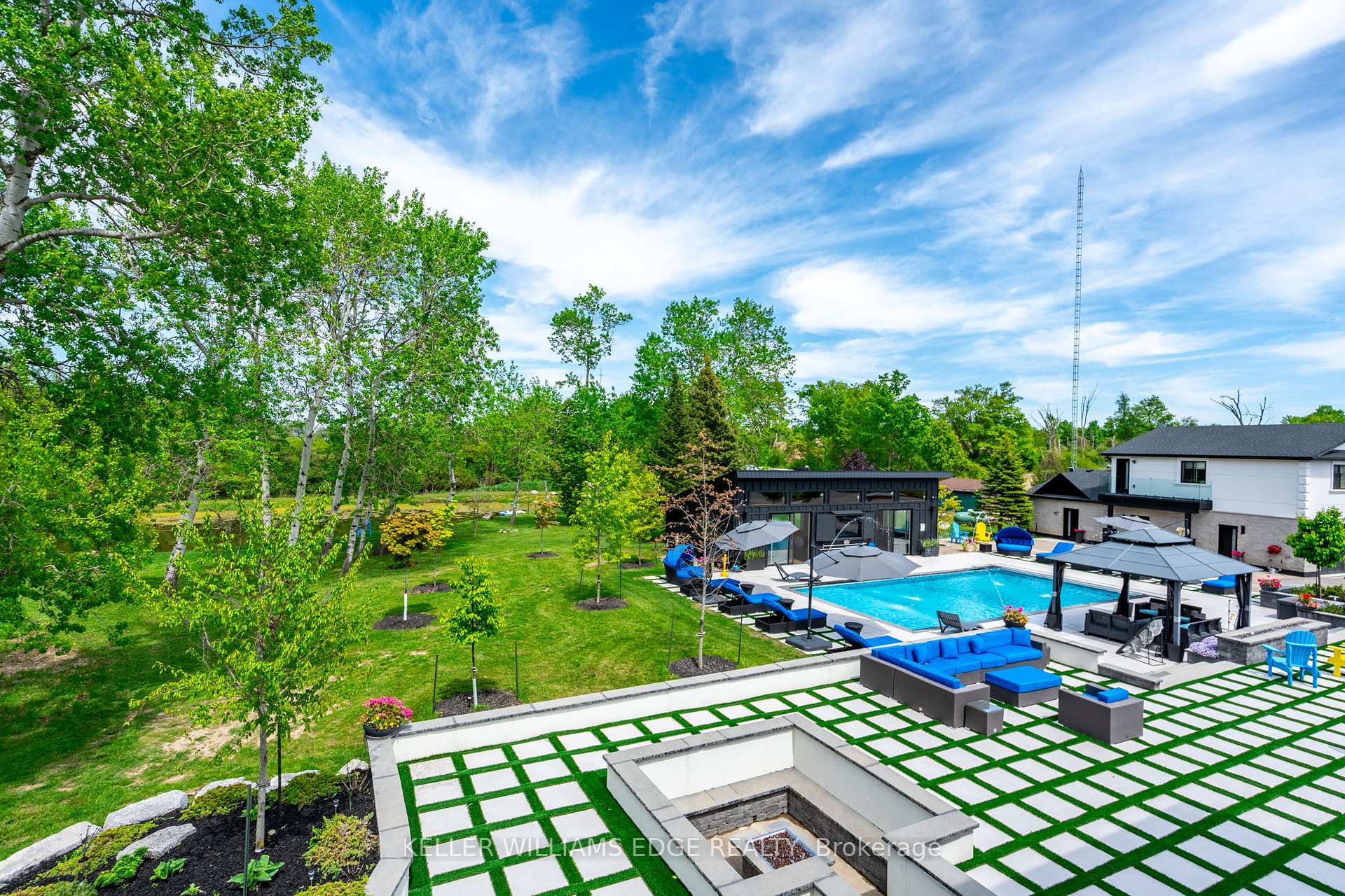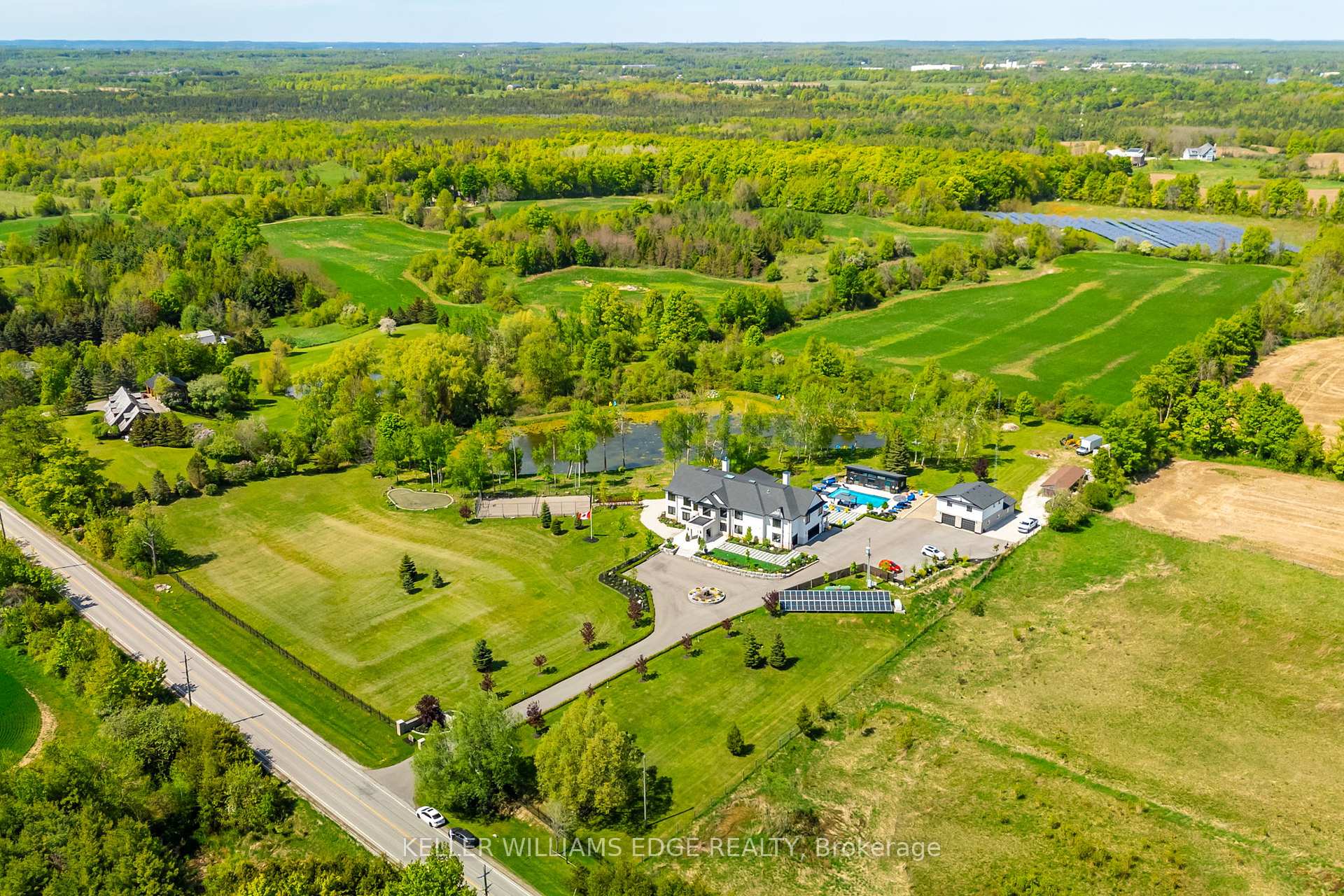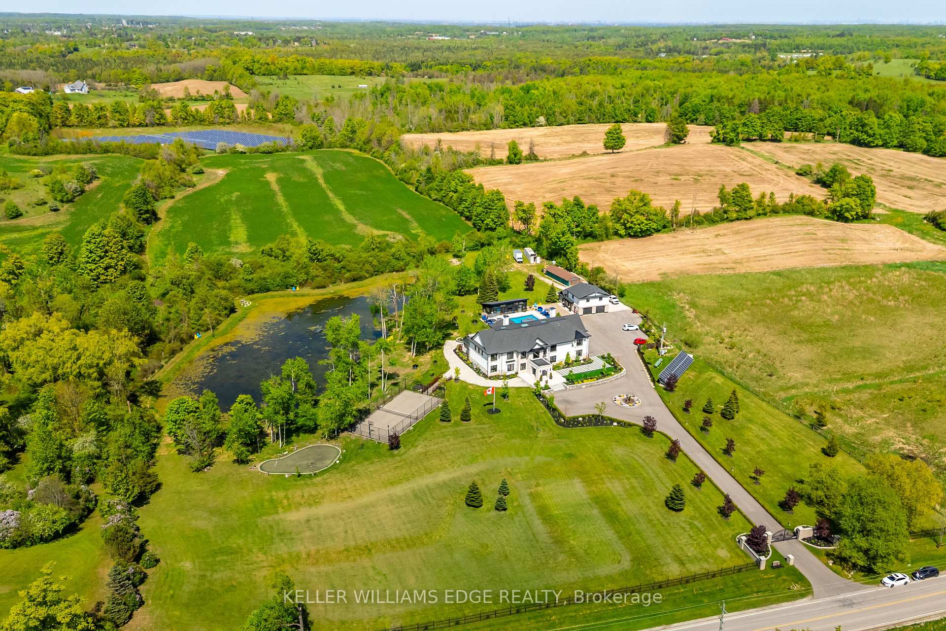 A rare opportunity to own a truly exceptional family retreat on 5.76 acres of private, tree-lined paradise. Thoughtfully designed and custom built by its owners, this one-of-a-kind estate blends luxury and warmth in equal measure. A place where timeless design meets everyday comfort. From the moment you step inside, the soaring 22-ft foyer and striking floating staircase set the tone for whats to come. Expansive windows flood the home with natural light, seamlessly connecting the indoors with the beauty of the surrounding landscape. Every space here was created with family and connection in mind. The heart of the home is an extraordinary chefs kitchen, anchored by dual islands with seating for 14, top-of-the-line appliances, and effortless flow into the sunroom and outdoor kitchen. Its a space designed for gatherings, where Sunday dinners stretch late into the evening and celebrations spill out under the stars. For everyday indulgence, this estate offers an incredible private spa with a 10-person jacuzzi, steam room, and sauna, plus a home theatre, gym, games area, and full bar. A private elevator adds ease, while a three-bedroom guest suite above the garage provides flexibility for extended family, in-laws, or a live-in nanny. Outdoors, the possibilities are endless. Lounge by the heated saltwater pool, host evenings around one of two fire pits, or enjoy a friendly game on the tennis and basketball courts. Wander along walking paths that circle a peaceful private pond or simply relax in one of the many quiet corners designed for reflection and connection with nature. This estate is as smart and sustainable as it is beautiful, with solar and geothermal systems, full smart-home integration, and two septic systems. This property is designed to stand the test of time and a place to build a legacy. Where laughter echoes through the halls, traditions take root, and generations come together. A lifestyle of luxury, privacy, and possibility awaits.