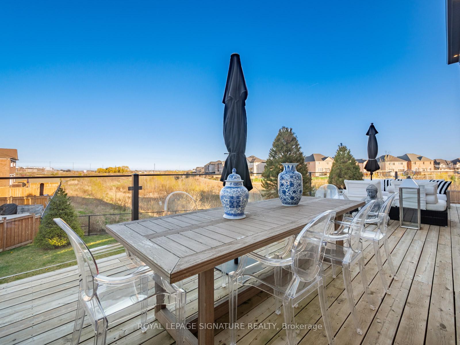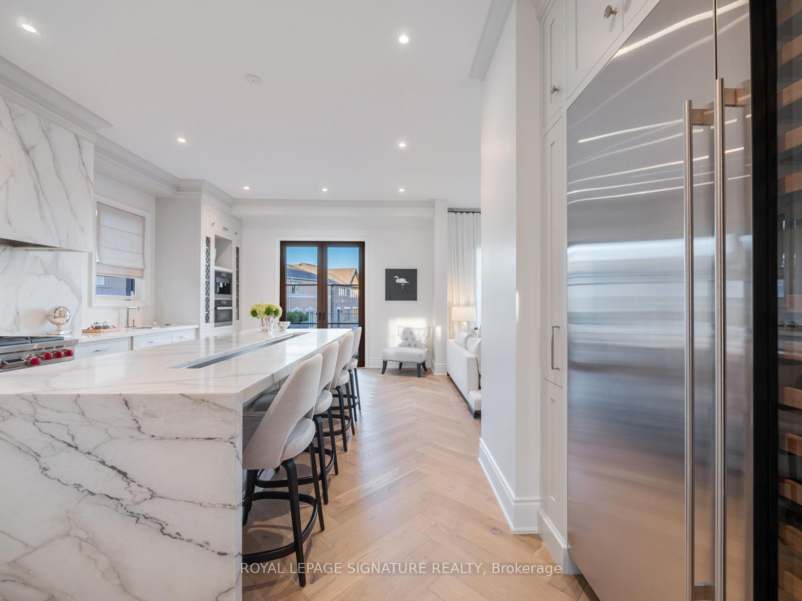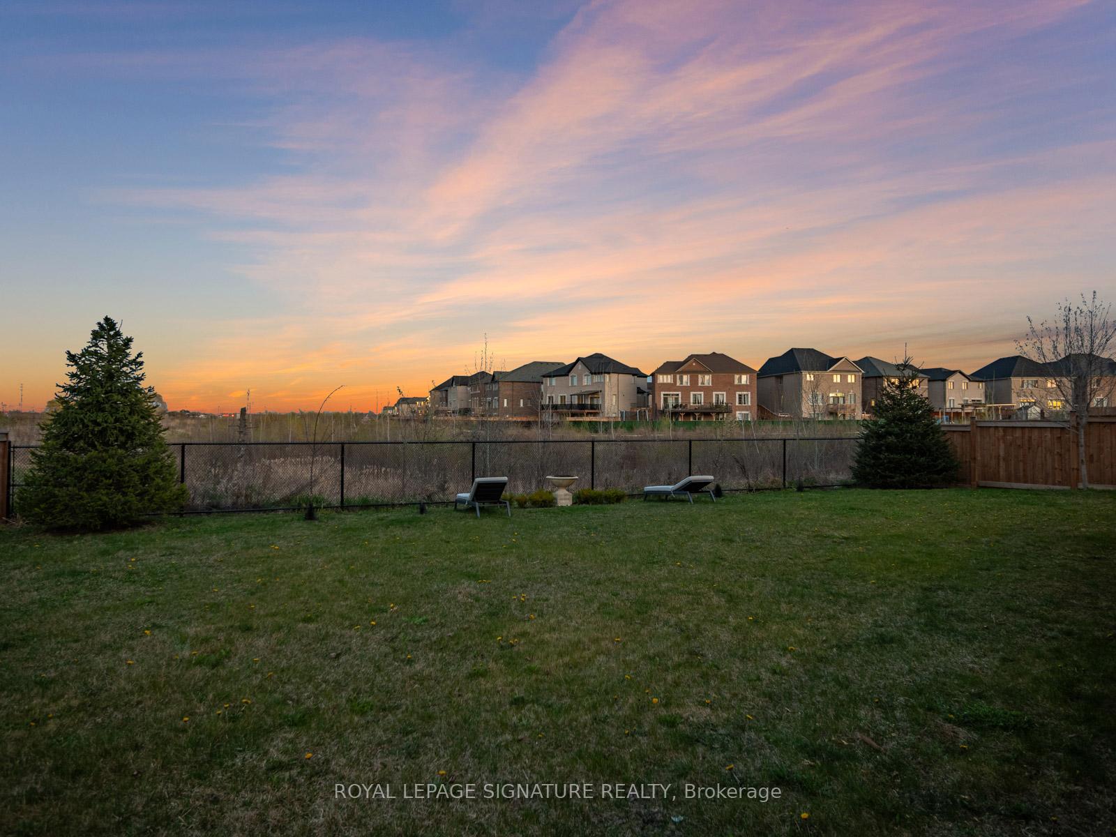 Your opportunity to own a fully customized home on a private street at the desirable Oakville/Milton border. Set on an oversized pie-shaped lot backing onto ravine and conservation land, this exceptional property offers approx. 5,200 sq.ft. of finished living space designed for comfort, entertaining, and everyday luxury. Featuring 10ft ceilings on the main level, 9ft ceilings upstairs, and high-end custom finishes throughout – including a marble, custom Bloomsbury-built kitchen and White Oak 5″ plank flooring with herringbone design throughout the main level and upper hall – this home combines scale, style, and premium views with abundant natural light. Elegant principal rooms lead to impressive 9ft upgraded European-style doors that open onto a large deck overlooking protected greenspace – the ideal extension of your living and entertaining spaces. The home has a total of 5 bedrooms and 5 bathrooms. The upper level features a spacious dressing suite connected to the primary, plus ensuite access from every bedroom. The bright walk-out lower level adds a great room, gym, studio and ample storage, with outstanding potential to create a private living space for multigenerational needs – ideal for adult children, in-laws or guests – without the feel of a traditional basement. The south-facing, pool-sized yard delivers rare privacy and a true outdoor oasis ready to personalize to your taste. Freshly priced to welcome your final touches and make this extraordinary home uniquely yours.