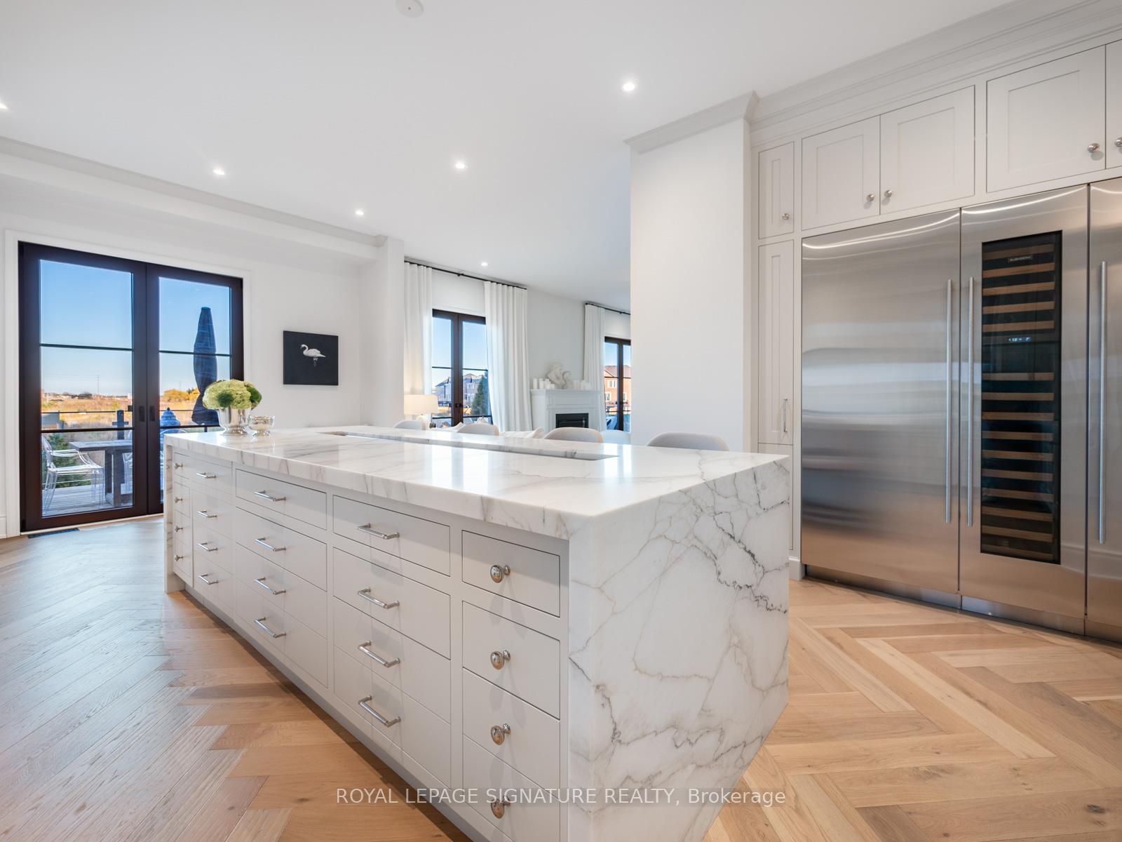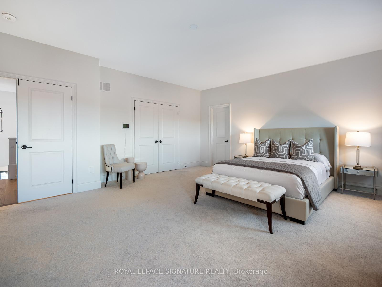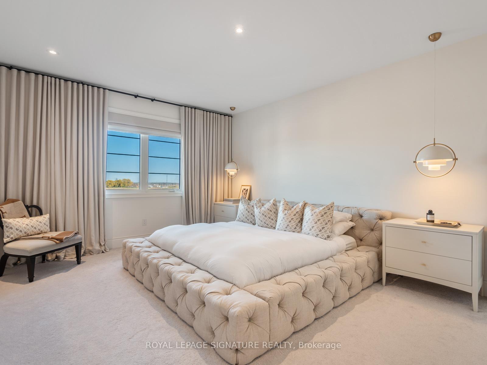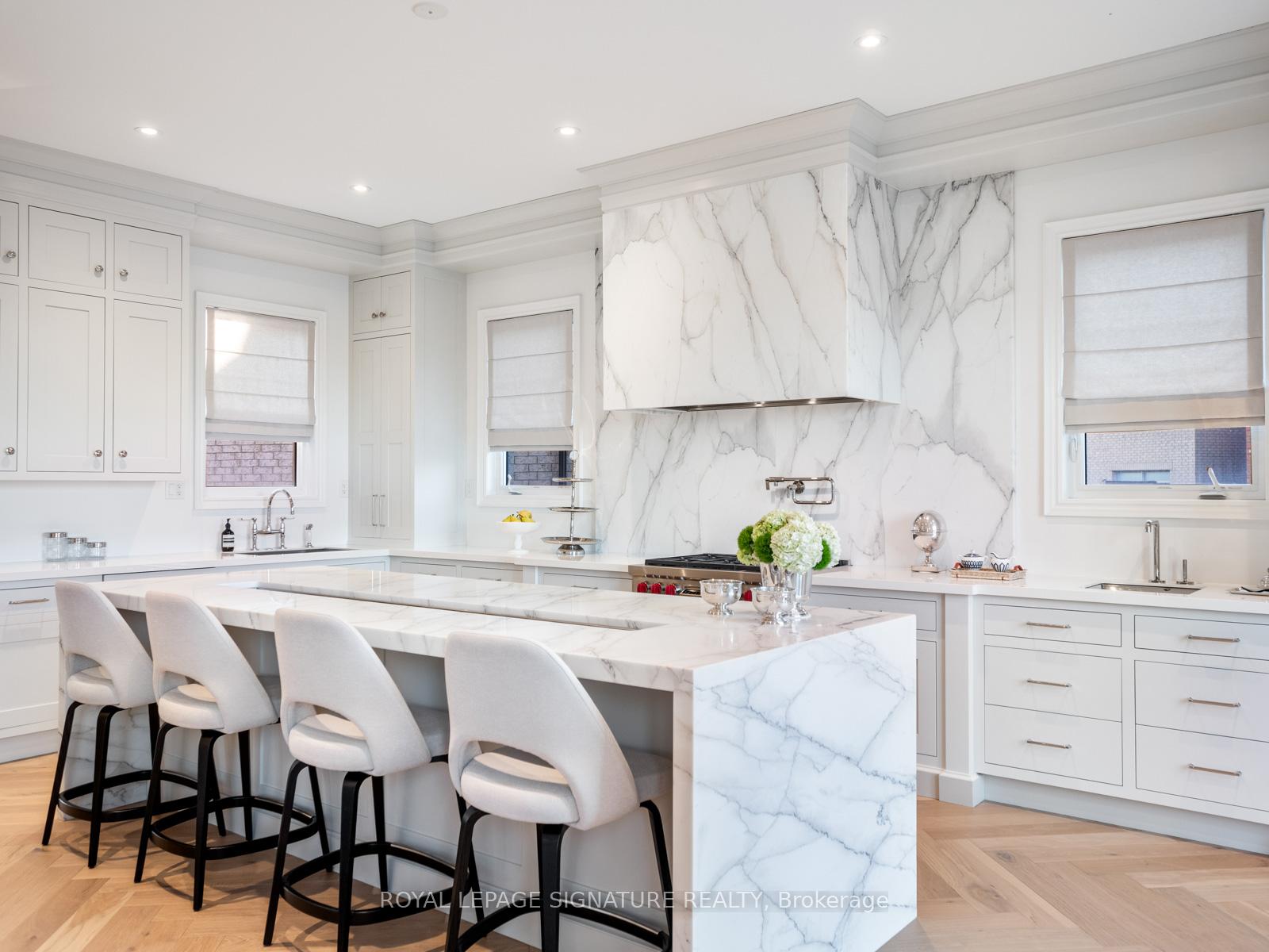 Your opportunity to own a fully customized home on a private street at the desirable Oakville/Milton border. Set on an oversized pie-shaped lot backing onto ravine and conservation land, this exceptional property offers approx. 5,200 sq.ft. of finished living space designed for comfort, entertaining, and everyday luxury. Featuring 10ft ceilings on the main level, 9ft ceilings upstairs, and high-end custom finishes throughout – including a marble, custom Bloomsbury-built kitchen and White Oak 5″ plank flooring with herringbone design throughout the main level and upper hall – this home combines scale, style, and premium views with abundant natural light. Elegant principal rooms lead to impressive 9ft upgraded European-style doors that open onto a large deck overlooking protected greenspace – the ideal extension of your living and entertaining spaces. The home has a total of 5 bedrooms and 5 bathrooms. The upper level features a spacious dressing suite connected to the primary, plus ensuite access from every bedroom. The bright walk-out lower level adds a great room, gym, studio and ample storage, with outstanding potential to create a private living space for multigenerational needs – ideal for adult children, in-laws or guests – without the feel of a traditional basement. The south-facing, pool-sized yard delivers rare privacy and a true outdoor oasis ready to personalize to your taste. Freshly priced to welcome your final touches and make this extraordinary home uniquely yours.