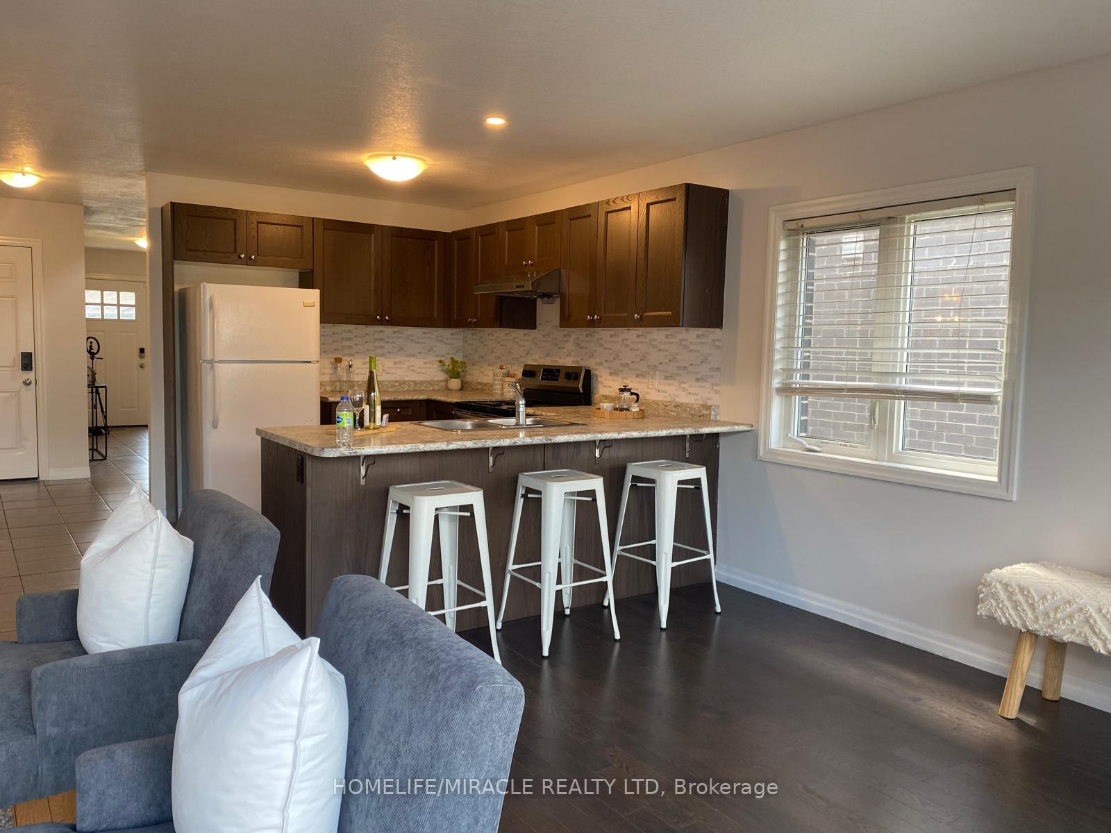 This beautiful, well-maintained townhouse is nestled in the desirable and upscale Highland Ridge community in Cambridge. With 3 plus 1 spacious bedrooms and 3 bathrooms, the home features a practical and welcoming layout. The large primary bedroom comes complete with an ensuite and dual walk-in closets-perfect for both Him & Her. Convenience is key, with a second-floor laundry room adding to the home’s appeal. The private backyard offers a peaceful retreat with a deck, while the attached garage and driveway provide ample parking. Visitor parking is also readily available. Additionally, the finished 1 bedroom walk-out basement provides endless potential for extra living space or storage. Located just minutes from parks, top-rated schools, walking trails, shopping, and major highways like the 401, this property combines comfort, accessibility, and quality living. With property taxes and a modest POTL fee of $163.85, this is an ideal opportunity for first-time homebuyers looking to settle into a friendly, vibrant neighborhood. Schedule your showing today!