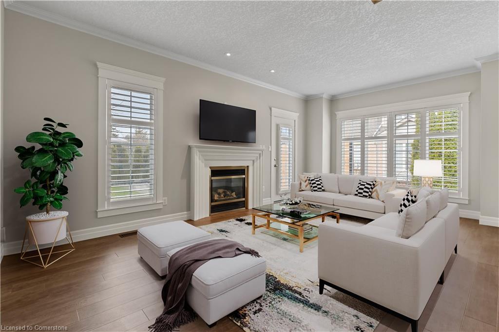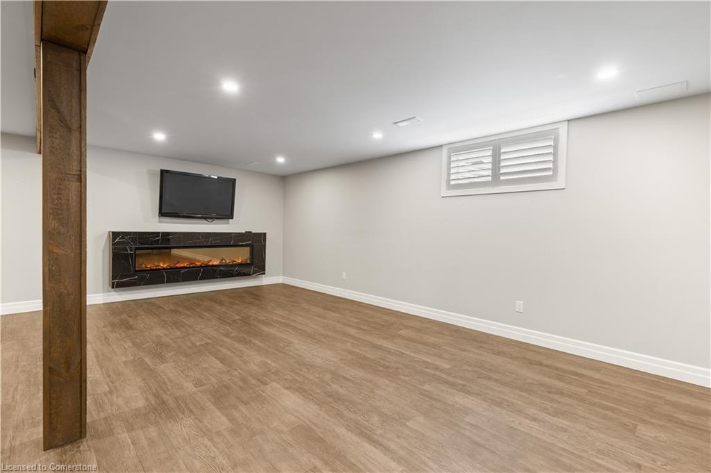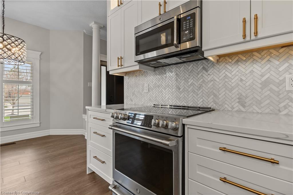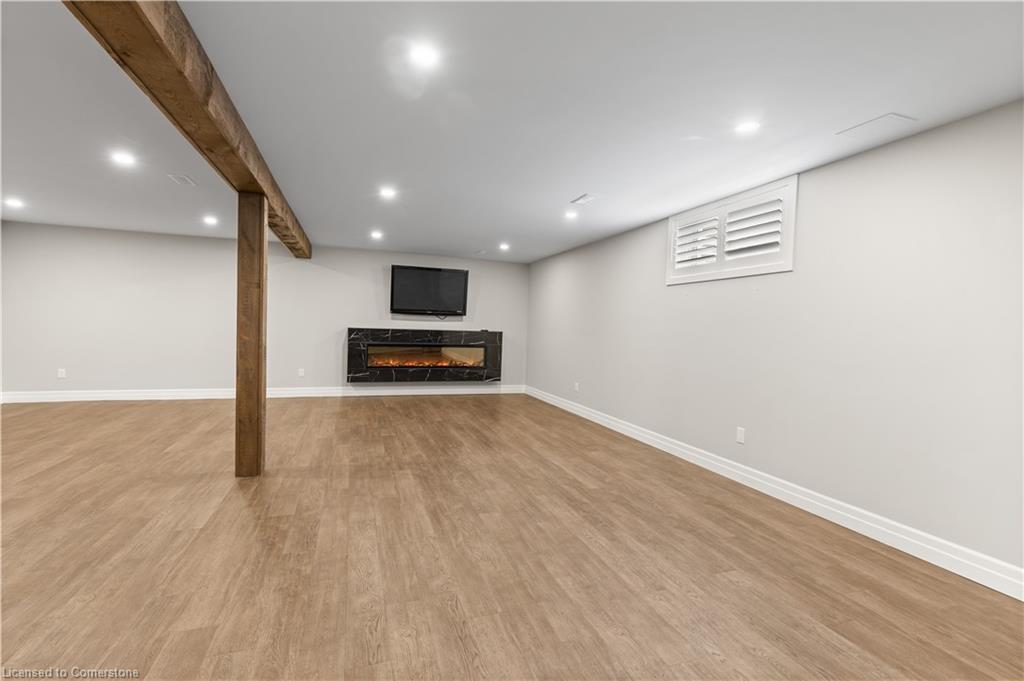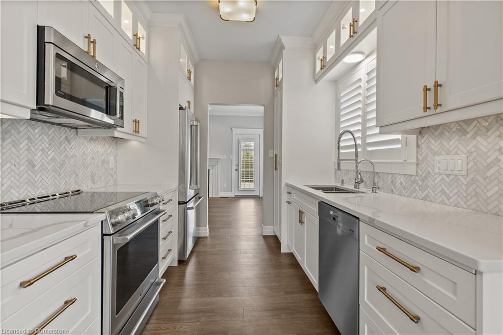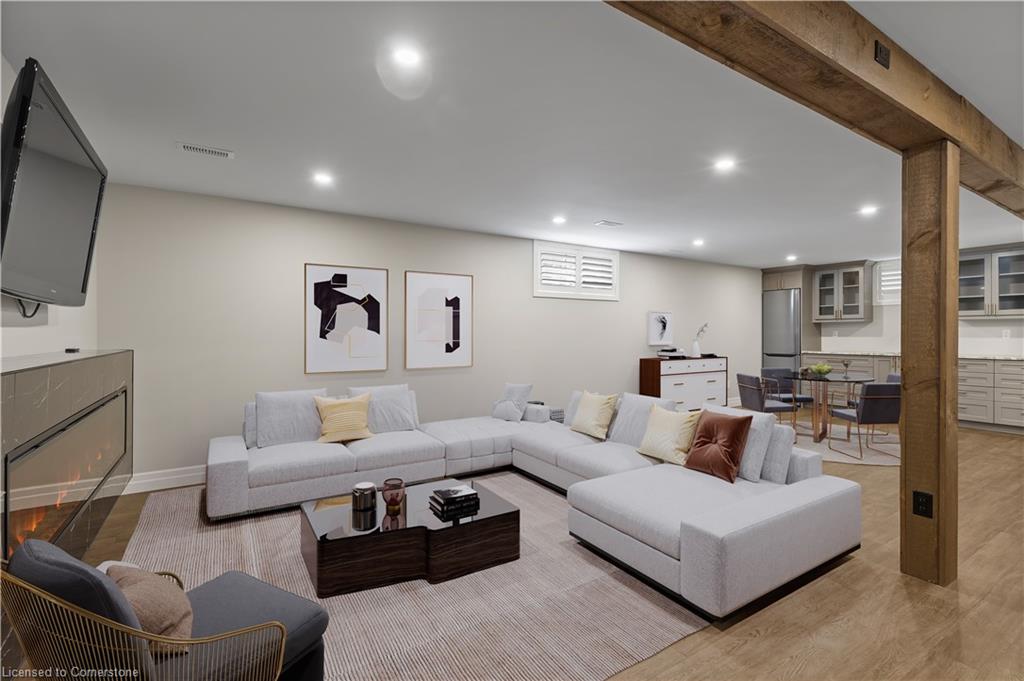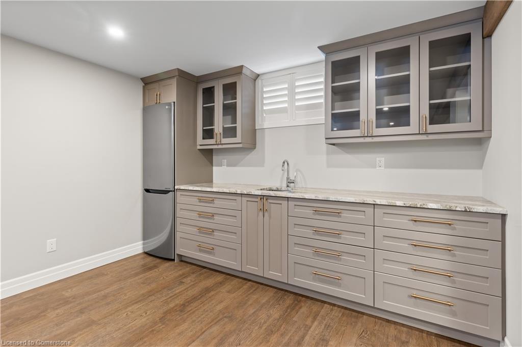 The absolute BEST that Beechwood West has to offer! THIS is the one you’ve been searching for. This end unit, FREEHOLD townhome has been upgraded & improved from top to bottom and inside out. With over $350,000 invested in improvements over the last 5 years YOU get to inherit the home of your dreams. A formal dining room boasting a crystal chandelier & superb wainscoted walls, a main floor primary bedroom with walk-in closet & ensuite privilege door to a stunning 4 piece bath accented with a granite topped vanity with double undermount sinks and oversized shower with glass sliding doors. You are going to fall in love with the custom designed Chef’s kitchen! It’s bright and white & features quartz countertops and marble backsplash this kitchen has THREE pull out cutting boards and 2 huge pull out cutlery organizer drawers! Other extras include a double undermount sink, soap dispenser & pantry faucet plus a pull out recycle bin. Your living room has a gas fireplace surrounded by a gorgeous white mantle & a walkout to your patio retreat! Let’s explore the lower level. An amazing, spacious recreation room with a stunning black wall mounted electric fireplace & the perfect games area complimented with a wet bar finished with a 9’6″ granite counter. Be sure to explore the ample drawers in the cabinet. Deep drawers plus 3 unique wine storage drawers too! Lastly tons of storage & a full 4 piece bathroom. There is a 2nd bedroom or guest room on the lofted area that offers a large walk-in closet & a 3 piece ensuite with a quartz undermount sink. The exterior of the home offer very little maintenance for you. A double wide concrete drive, recent concrete walkways and a superb concrete and stone patio and handy storage shed! Here are just some of the extras…ALL flooring has been replaced with hardwoods, ceramics & luxury vinyl plank. California shutter throughout (even the garage), all new light fixtures, epoxy floor in the garage & so much more. A complete list is available.