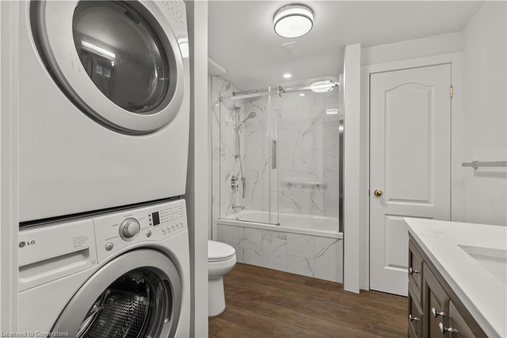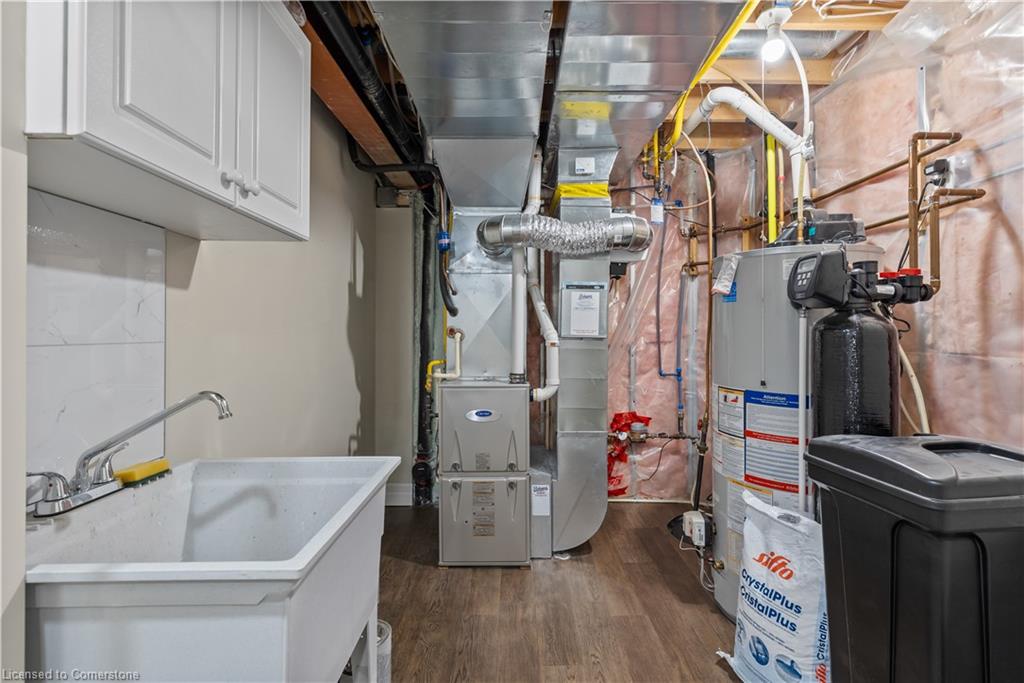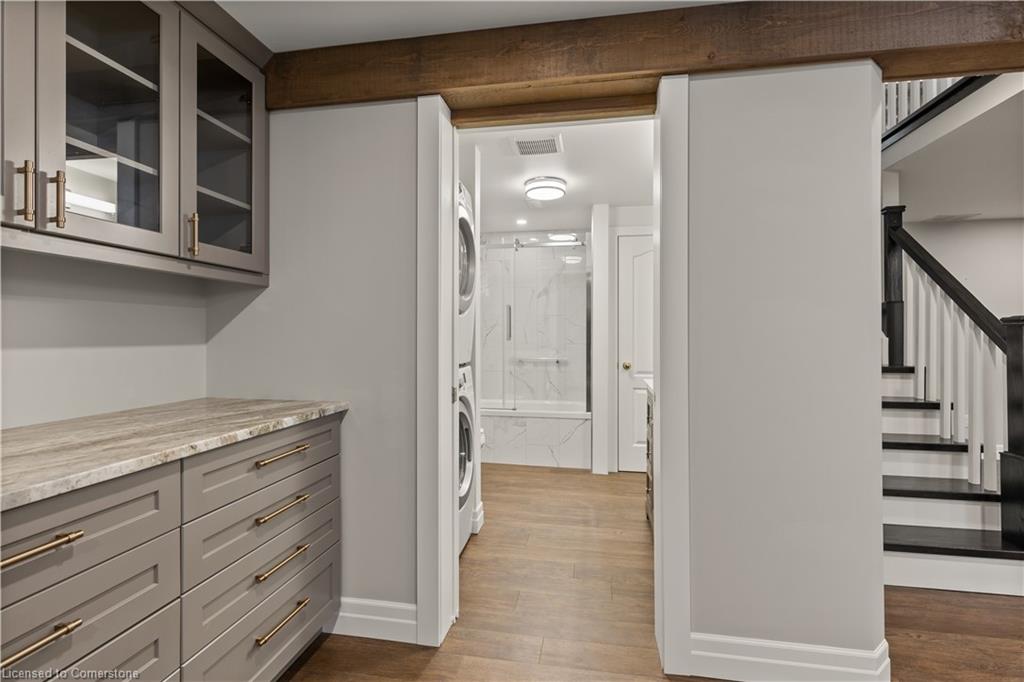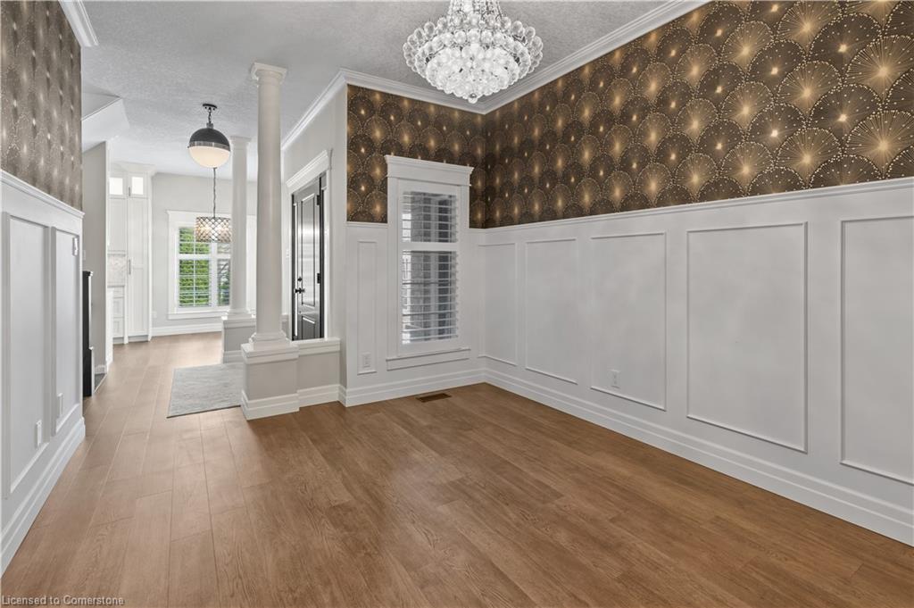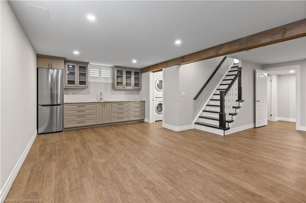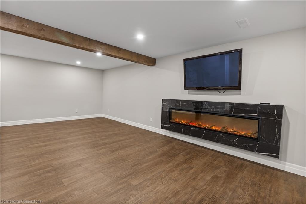 The absolute BEST that Beechwood West has to offer! THIS is the one you’ve been searching for. This end unit, FREEHOLD townhome has been upgraded & improved from top to bottom and inside out. With over $350,000 invested in improvements over the last 5 years YOU get to inherit the home of your dreams. A formal dining room boasting a crystal chandelier & superb wainscoted walls, a main floor primary bedroom with walk-in closet & ensuite privilege door to a stunning 4 piece bath accented with a granite topped vanity with double undermount sinks and oversized shower with glass sliding doors. You are going to fall in love with the custom designed Chef’s kitchen! It’s bright and white & features quartz countertops and marble backsplash this kitchen has THREE pull out cutting boards and 2 huge pull out cutlery organizer drawers! Other extras include a double undermount sink, soap dispenser & pantry faucet plus a pull out recycle bin. Your living room has a gas fireplace surrounded by a gorgeous white mantle & a walkout to your patio retreat! Let’s explore the lower level. An amazing, spacious recreation room with a stunning black wall mounted electric fireplace & the perfect games area complimented with a wet bar finished with a 9’6″ granite counter. Be sure to explore the ample drawers in the cabinet. Deep drawers plus 3 unique wine storage drawers too! Lastly tons of storage & a full 4 piece bathroom. There is a 2nd bedroom or guest room on the lofted area that offers a large walk-in closet & a 3 piece ensuite with a quartz undermount sink. The exterior of the home offer very little maintenance for you. A double wide concrete drive, recent concrete walkways and a superb concrete and stone patio and handy storage shed! Here are just some of the extras…ALL flooring has been replaced with hardwoods, ceramics & luxury vinyl plank. California shutter throughout (even the garage), all new light fixtures, epoxy floor in the garage & so much more. A complete list is available.