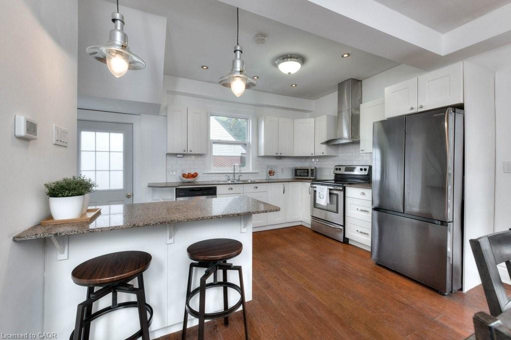Step into a home that feels both timeless and fresh. This bright, move-in ready 3-bedroom, 2-bathroom gem has been thoughtfully updated with modern finishes while preserving its original charm. Enjoy ample storage, hardwood and laminate floors throughout, high ceilings, and elegant trim and baseboards that add depth and personality to every room. The open-concept kitchen and dining area invites connection, featuring stainless steel appliances, granite counters, a breakfast bar, and a walk-out to a side entrance. Keep your car out of the cold and into the heated detached garage that was built with city permits in 2017. A rare find in this family-friendly neighbourhood. This home offers quick access to major roads and a short walk to downtown Guelph, schools and other fantastic amenities. Families and outdoor enthusiasts will love the close proximity to parks and the Royal Recreation Trail. Whether you’re starting out, downsizing, or a creative looking for a space that supports your passions, 136 Alma Street North offers the perfect blend of character, convenience, and possibility.