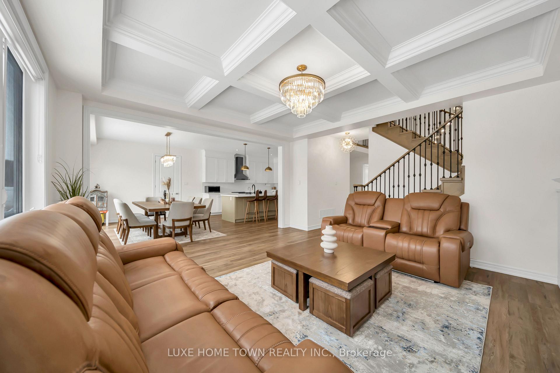 An Exceptional Offering in the Heart of Fergus – 136 Harpin Way E. Experience refined luxury in this exquisite 4-bedroom, 4-bathroom executive residence, masterfully designed for those who appreciate elevated living, generous space, and a strong sense of community. Set within one of Fergus’ most prestigious neighbourhoods, this beautifully upgraded home delivers sophistication, comfort, and timeless appeal. Backing onto the scenic expanse of Beatty Line with no rear neighbours, the property offers a rare sense of privacy and tranquility, while maintaining effortless access to Guelph, Kitchener-Waterloo, and the GTA. The charm of Elora and historic downtown Fergus lies just minutes away, offering boutique shopping, dining, and cultural experiences. Inside, a sun-filled open-concept design unfolds beneath coffered ceilings and statement chandeliers, creating an atmosphere of understated elegance. The chef-inspired kitchen, complete with a grand centre island, quartz marble countertops, and custom cabinetry, anchors the home-perfect for refined entertaining and intimate family gatherings. A main-floor office provides a private, sophisticated workspace. The upper level is crowned by a serene primary retreat, featuring a spa-inspired ensuite designed for relaxation. With two additional ensuite bathrooms, every bedroom offers comfort and privacy. One suite opens to a private balcony, an ideal setting for morning coffee or evening reflection. Outdoors, the fully fenced backyard is a private oasis, professionally landscaped and framed by a graceful willow tree-an elegant backdrop for outdoor living and quiet moments. This move-in-ready residence is enhanced by extensive high-end upgrades throughout and offers approved legal basement apartment permits (available upon request)-a rare and valuable opportunity.