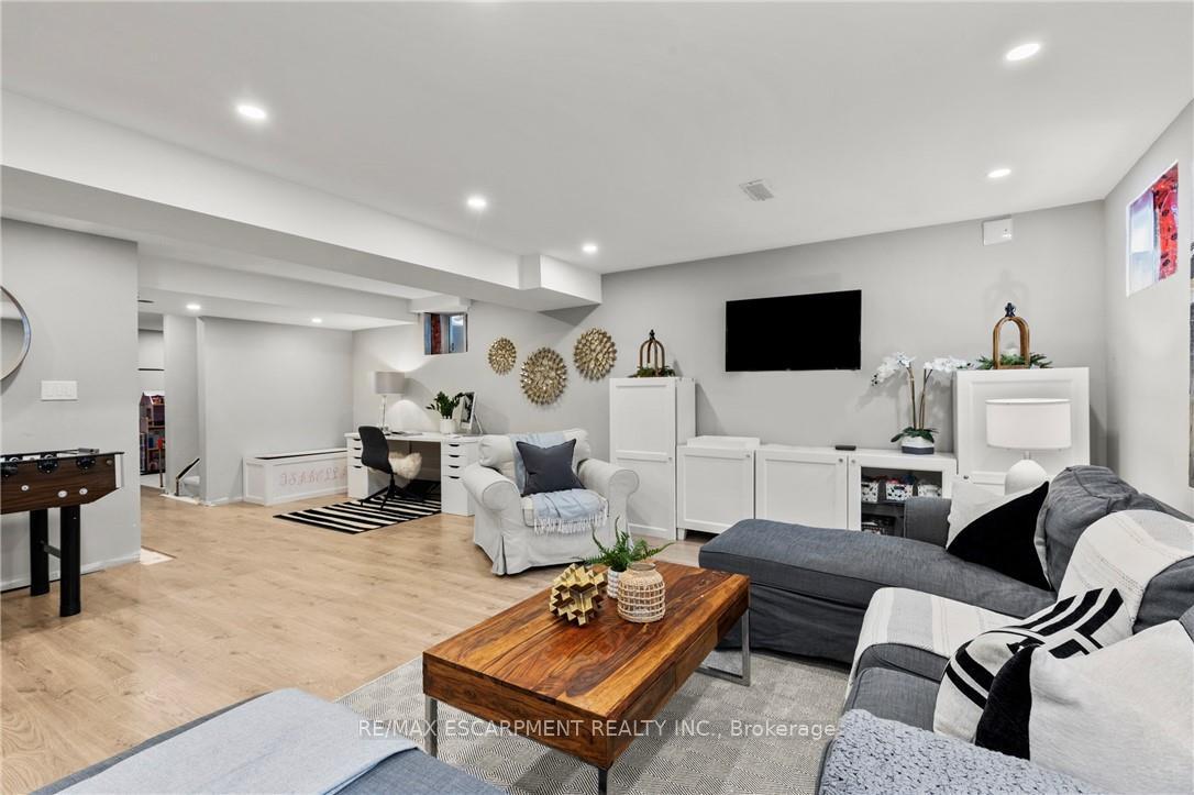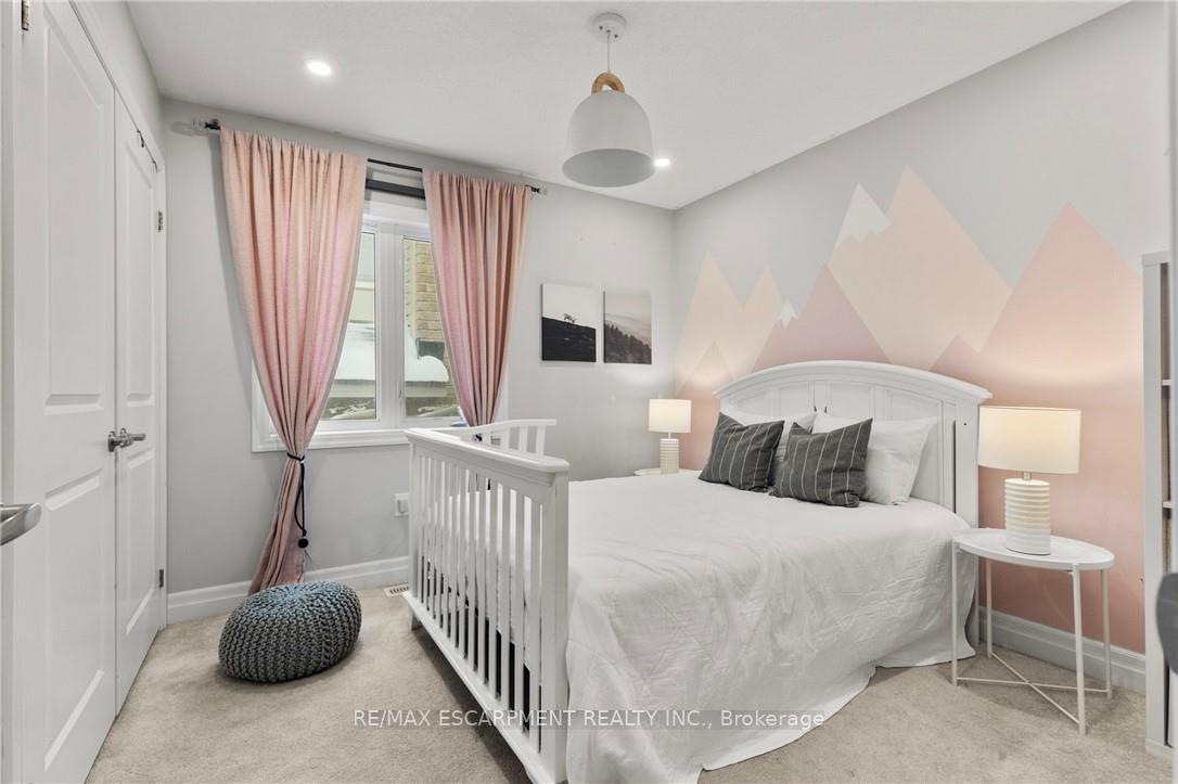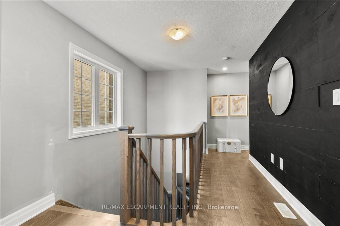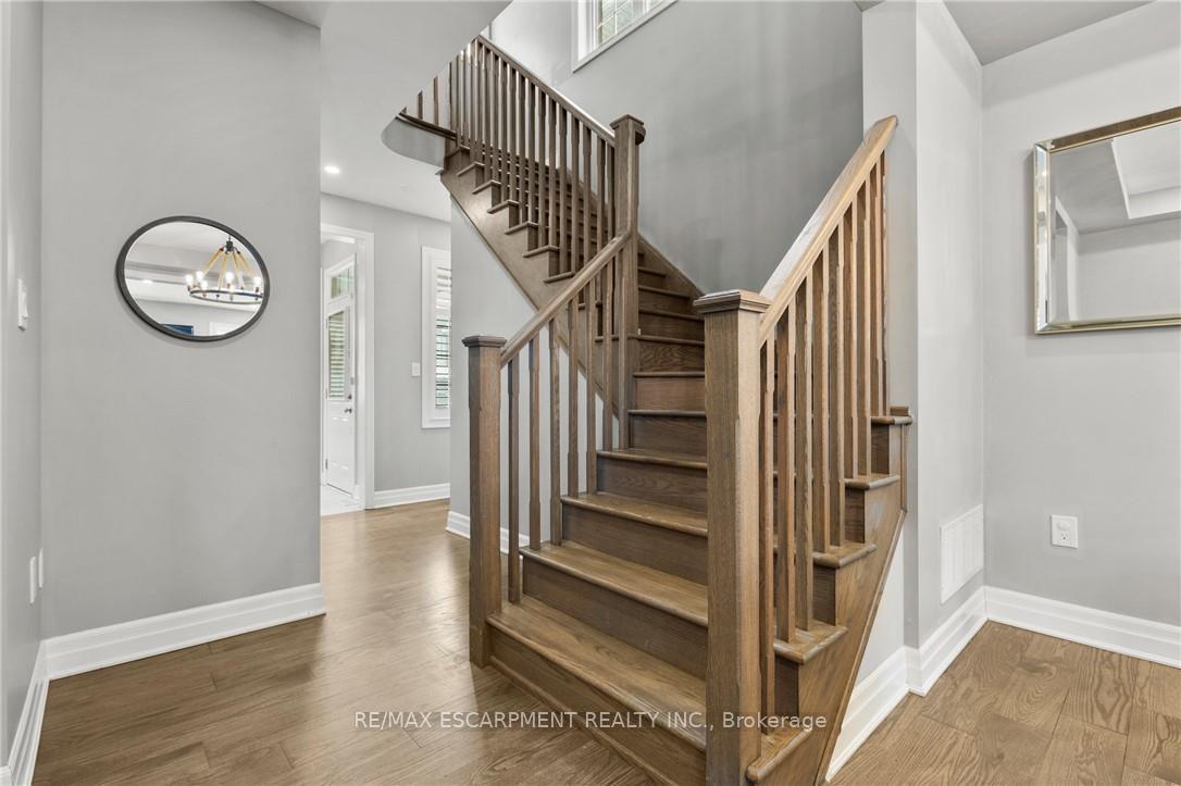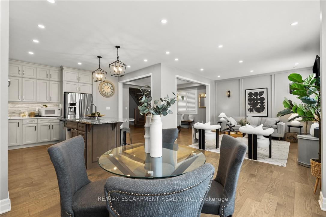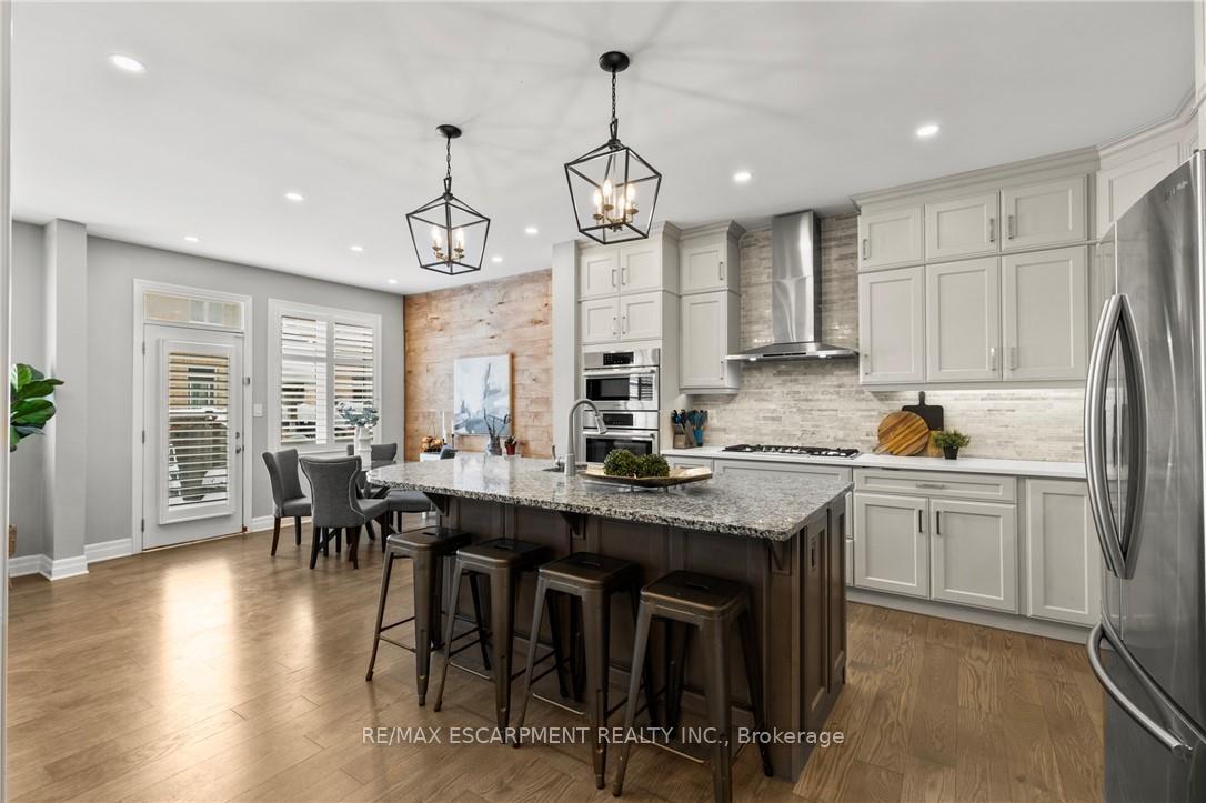 Welcome to this thoughtfully designed Mattamy home, ideally located on a quiet, family-friendly street in Milton. The main level features Engineered hardwood through-out and has a spacious and inviting layout, starting with a main floor office with large windows overlooking the front of the property. As you walk through the large dining room area, you are greeted by a chef-inspired kitchen featuring built-in Bosch appliances and gas range, stone countertops, and ample upgraded cabinetry. The large oversized island and eat-in kitchen provides even more flexibility for the family-perfect for everyday living and entertaining. The open concept family room is spacious and anchored by a gas fireplace, creating a warm and welcoming atmosphere. Upstairs, the home offers four generously sized bedrooms, including a well-appointed primary suite with an oversized walk-in closet and ensuite bath. The remaining bedrooms provide flexibility for growing families, guests, or home office needs, and are conveniently located near another 4pc bathroom and upper level laundry room. The finished basement adds even more flexibility to accommodate your needs, whether a large rec space, office area, or hobby room! Additional highlights include an attached garage and fenced in rear yard. Located close to schools, parks, and amenities, this home delivers comfort, style, and convenience in one of Milton’s desirable neighbourhoods.