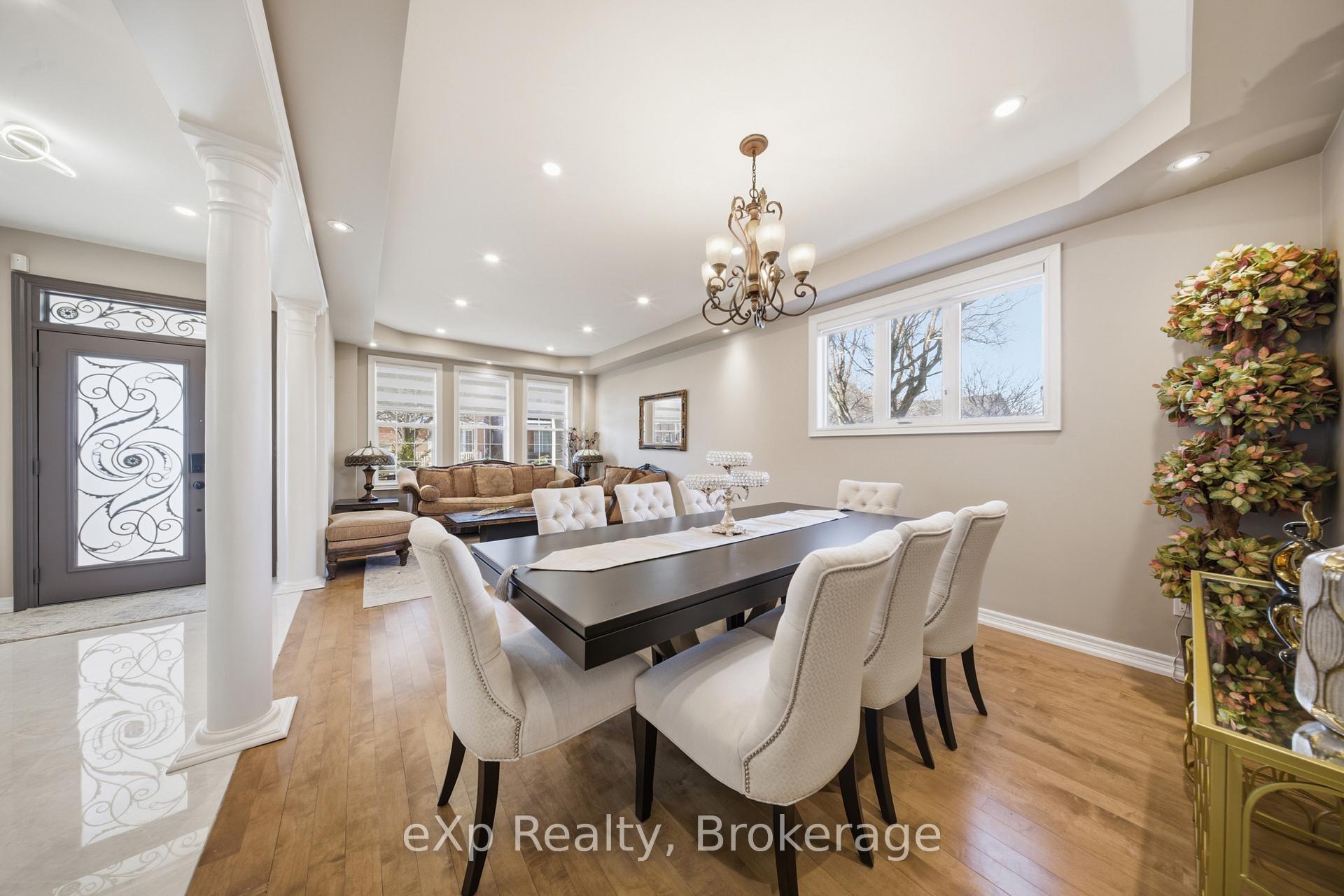 Welcome to 1360 Hill, an exceptional opportunity in a highly sought-after enclave in Beaty. Set on a 52x103ft lot, this beautifully maintained Mattamy home, proudly owned by the original owners, offers 2,675 sq ft above grade plus a 900 sq ft finished basement. Positioned minutes to shopping, schools, parks, public transit, and Hwy 401, this home delivers a high walk score. Enjoy a thoughtful layout designed for everyday comfort and entertaining, with 9ft ceilings on the main floor, brand new porcelain tiles throughout the main level, professionally refinished maple hardwood on the main and upper levels, and a timeless oak staircase. Updated lighting and pot lights enhance the home, while the walk-in coat closet adds convenience. At the heart of the home is the professionally designed luxury kitchen (2024), featuring custom cabinetry, quartz countertops and backsplash, and new JennAir appliances with transferable extended warranties. The kitchen is elevated with a built-in microwave, valance lighting, gas range, and commercial-grade professional range hood. Just off the kitchen, the inviting family room is anchored by a stone-clad gas fireplace. A custom-built office offers a polished work-from-home setup, while the primary bedroom includes custom closets. Upstairs, you’ll find 4 large bedrooms and second-floor laundry. The fully finished basement adds bonus space with brand-new luxury vinyl flooring, home theatre, gym area, bathroom, large recreation space, two storage rooms, and a sump pump. Outside, an oversized driveway accommodates 4 vehicles, plus an oversized 2 car garage with shelving. A new high-end GARAGA garage door adds style and function. The roof was completed in 2017 and remains in excellent condition. Step into the oversized backyard and unwind on the wooden deck, perfect for summer BBQs and outdoor entertaining. A rare offering blending space, upgrades, and prime location-this is a home you don’t just move into, you grow into.