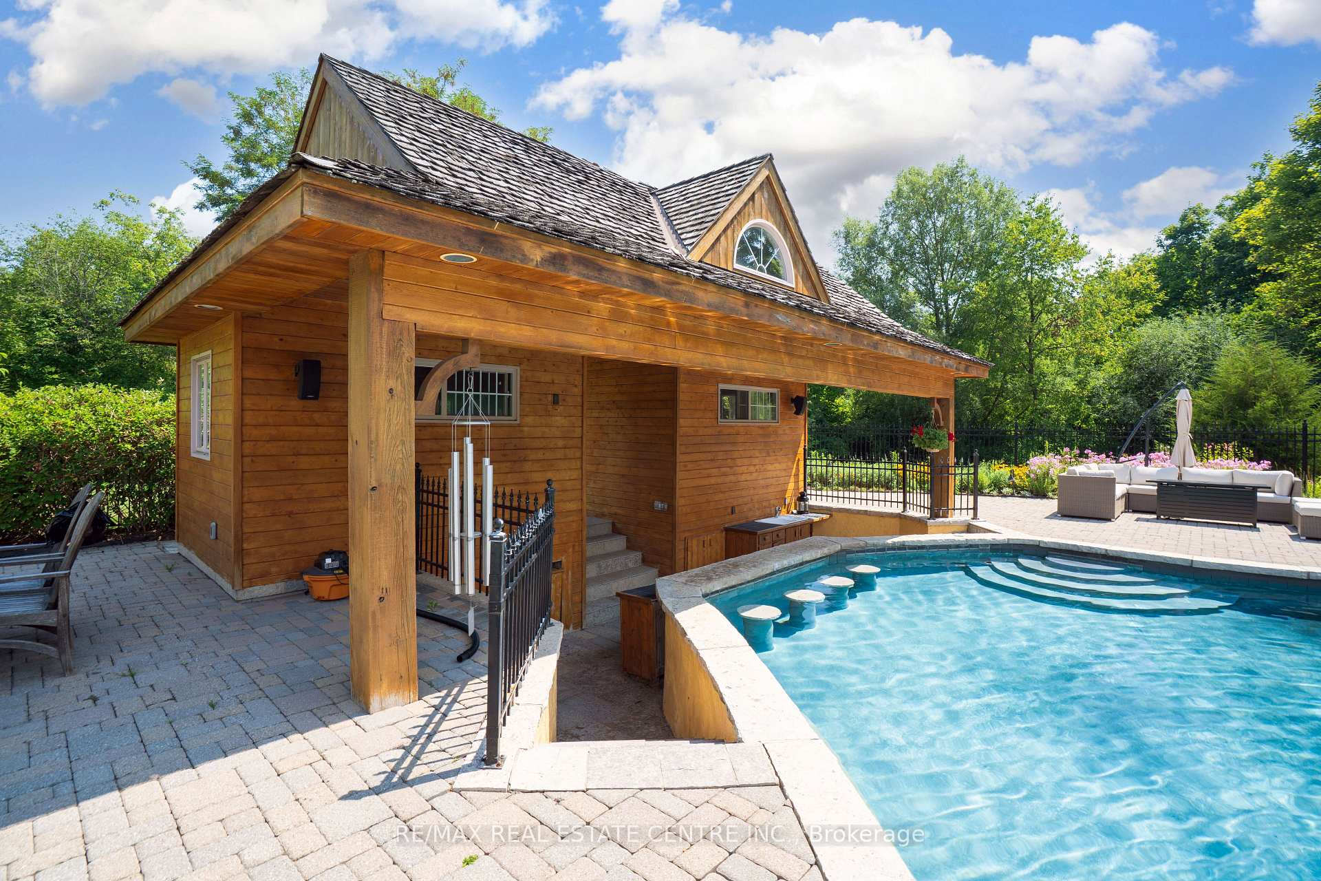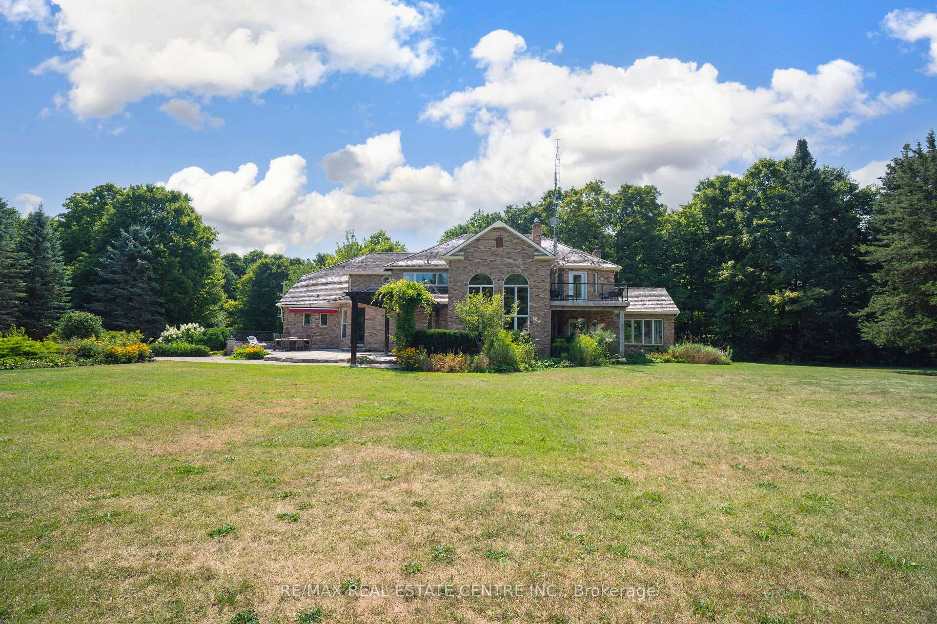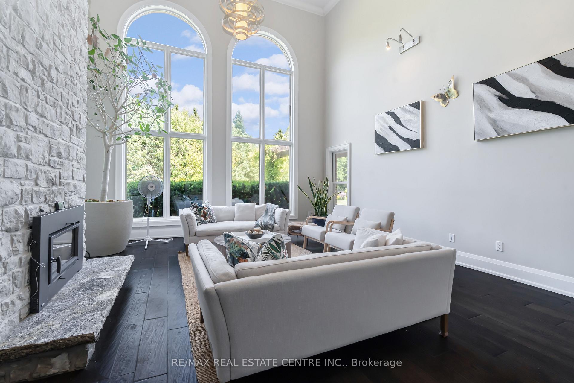 A Signature Estate in Nassagaweya. Set at the end of a long, tree-lined drive, this remarkable custom-built 4-bedroom, 7-bathroom residence delivers over 6,100 sq. ft. above grade plus approx 2,000 sq. ft. finished walk-out lower level. The grand two-storey foyer leads to a striking great room with floor-to-ceiling stone fireplace, a light-filled conservatory, private office, and a sunken living room. The chefs kitchen showcases premium appliances, live-edge granite surfaces, an oversized island, and a sunny breakfast nook, while the formal dining room offers a two-sided stone fireplace and custom cabinetry. A billiards lounge with lava rock bar, waffle ceiling, and bespoke built-ins adds to the main floors appeal. Upstairs, the primary suite features a spa-like ensuite and a custom walk-in closet, while three additional bedrooms each have their own designer baths. A secondary staircase provides direct access to the kitchen and laundry. The lower level is fully finished with a large recreation area, games room, and 2-piece bath. Outdoors, the resort-style grounds feature a lagoon-inspired saltwater pool with waterfall, wading area, swim-up bar, and custom hot tub. A cedar pool house with 2- piece bath, sunken outdoor kitchen, and stone patio BBQ space make entertaining effortless. The property also includes two fire pits, a playhouse, horseshoe pit, vast lawn areas, a detached garage with heated workshop, and parking for 50+ vehicles. All within minutes of Rockwood, and an easy commute to Guelph, Milton, the GTA, and Pearson Airport. A home that delivers unmatched luxury, privacy, and lifestyle.