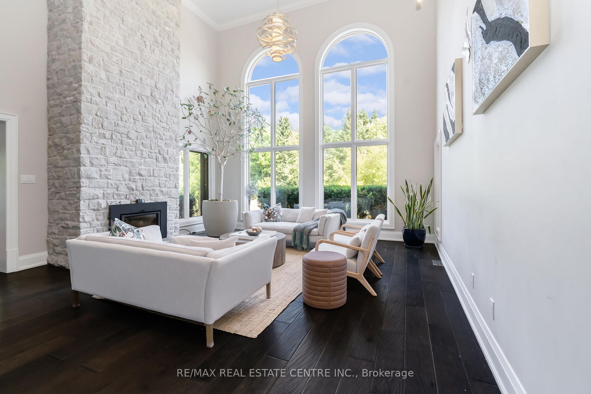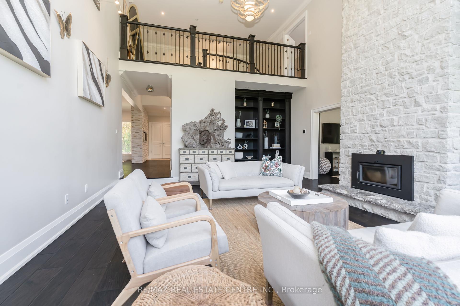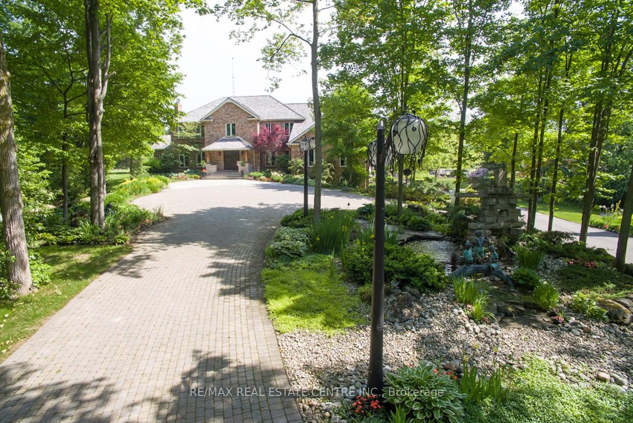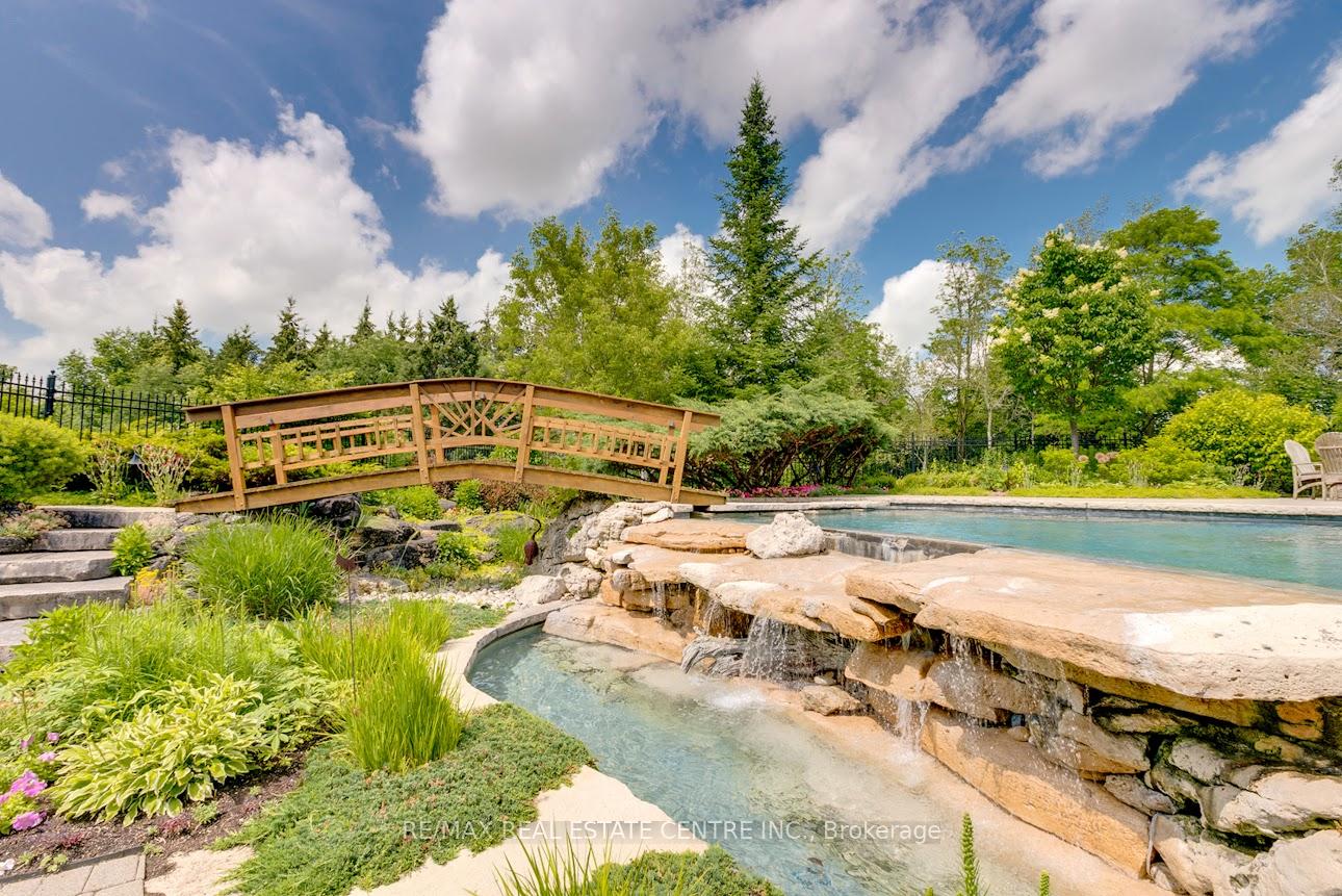 A Signature Estate in Nassagaweya. Set at the end of a long, tree-lined drive, this remarkable custom-built 4-bedroom, 7-bathroom residence delivers over 6,100 sq. ft. above grade plus approx 2,000 sq. ft. finished walk-out lower level. The grand two-storey foyer leads to a striking great room with floor-to-ceiling stone fireplace, a light-filled conservatory, private office, and a sunken living room. The chefs kitchen showcases premium appliances, live-edge granite surfaces, an oversized island, and a sunny breakfast nook, while the formal dining room offers a two-sided stone fireplace and custom cabinetry. A billiards lounge with lava rock bar, waffle ceiling, and bespoke built-ins adds to the main floors appeal. Upstairs, the primary suite features a spa-like ensuite and a custom walk-in closet, while three additional bedrooms each have their own designer baths. A secondary staircase provides direct access to the kitchen and laundry. The lower level is fully finished with a large recreation area, games room, and 2-piece bath. Outdoors, the resort-style grounds feature a lagoon-inspired saltwater pool with waterfall, wading area, swim-up bar, and custom hot tub. A cedar pool house with 2- piece bath, sunken outdoor kitchen, and stone patio BBQ space make entertaining effortless. The property also includes two fire pits, a playhouse, horseshoe pit, vast lawn areas, a detached garage with heated workshop, and parking for 50+ vehicles. All within minutes of Rockwood, and an easy commute to Guelph, Milton, the GTA, and Pearson Airport. A home that delivers unmatched luxury, privacy, and lifestyle.