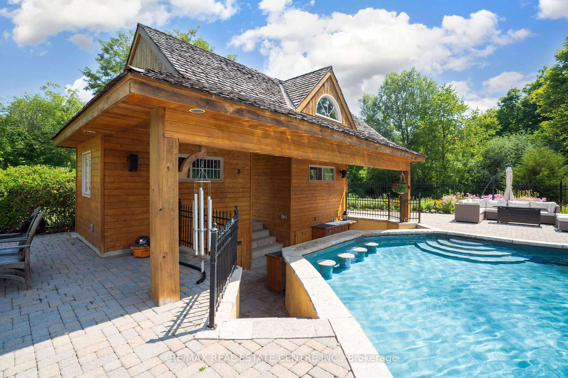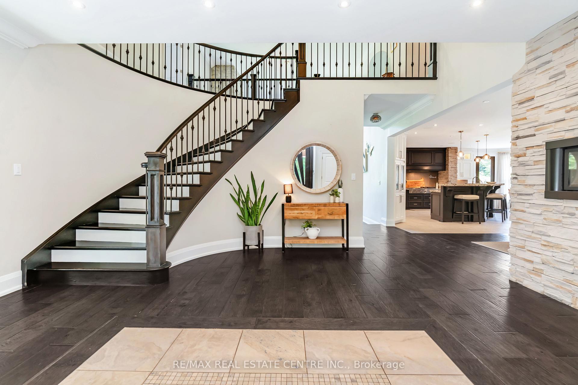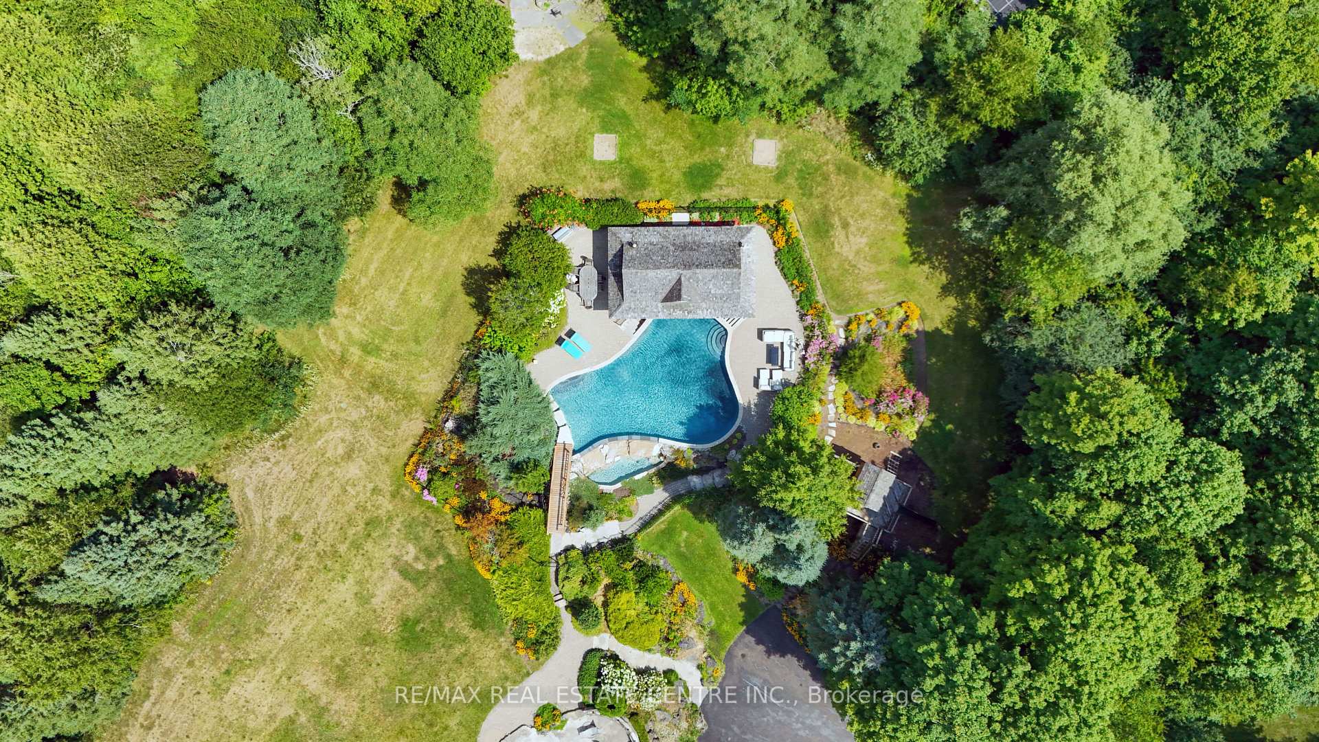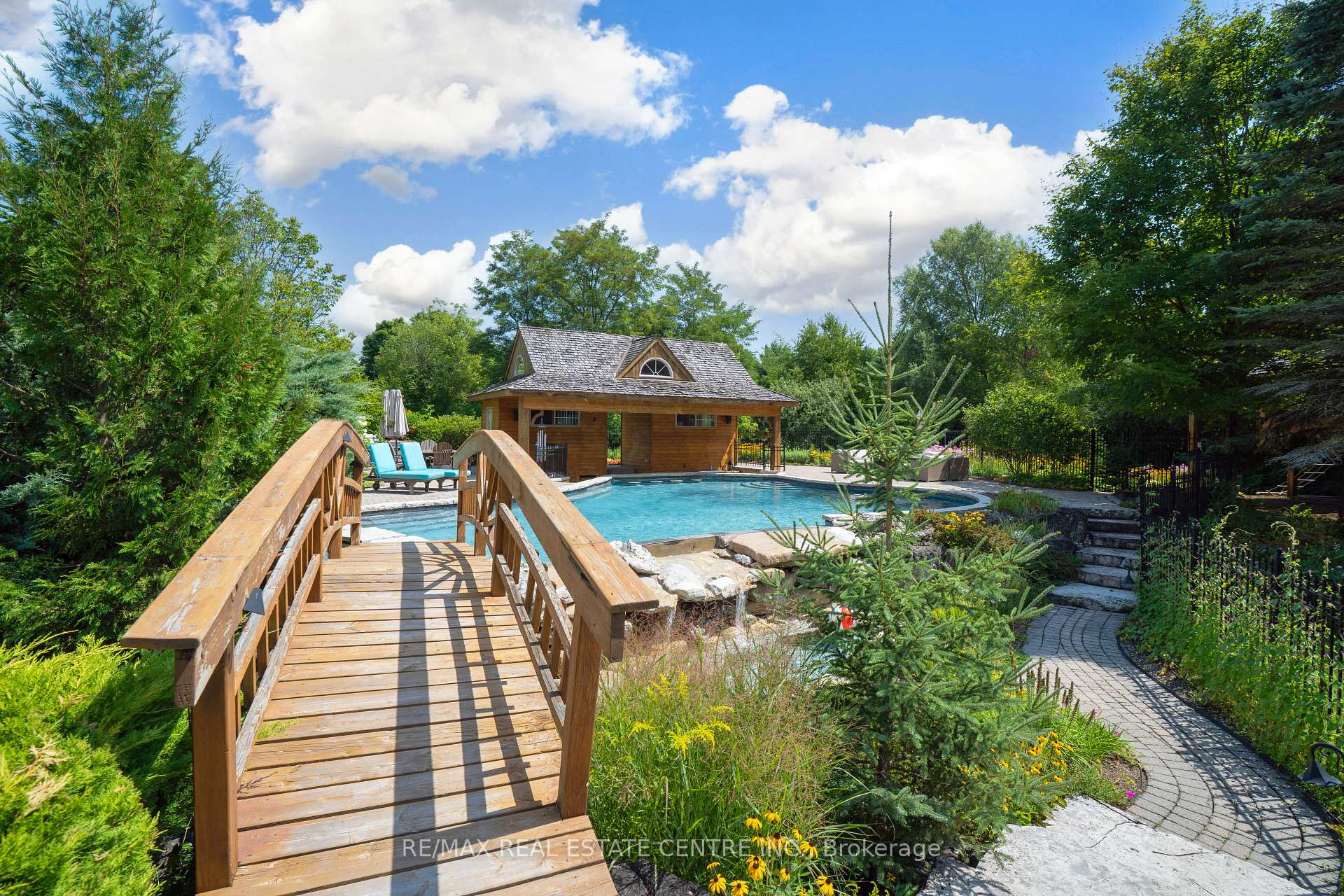 A Signature Estate in Nassagaweya. Set at the end of a long, tree-lined drive, this remarkable custom-built 4-bedroom, 7-bathroom residence delivers over 6,100 sq. ft. above grade plus approx 2,000 sq. ft. finished walk-out lower level. The grand two-storey foyer leads to a striking great room with floor-to-ceiling stone fireplace, a light-filled conservatory, private office, and a sunken living room. The chefs kitchen showcases premium appliances, live-edge granite surfaces, an oversized island, and a sunny breakfast nook, while the formal dining room offers a two-sided stone fireplace and custom cabinetry. A billiards lounge with lava rock bar, waffle ceiling, and bespoke built-ins adds to the main floors appeal. Upstairs, the primary suite features a spa-like ensuite and a custom walk-in closet, while three additional bedrooms each have their own designer baths. A secondary staircase provides direct access to the kitchen and laundry. The lower level is fully finished with a large recreation area, games room, and 2-piece bath. Outdoors, the resort-style grounds feature a lagoon-inspired saltwater pool with waterfall, wading area, swim-up bar, and custom hot tub. A cedar pool house with 2- piece bath, sunken outdoor kitchen, and stone patio BBQ space make entertaining effortless. The property also includes two fire pits, a playhouse, horseshoe pit, vast lawn areas, a detached garage with heated workshop, and parking for 50+ vehicles. All within minutes of Rockwood, and an easy commute to Guelph, Milton, the GTA, and Pearson Airport. A home that delivers unmatched luxury, privacy, and lifestyle.