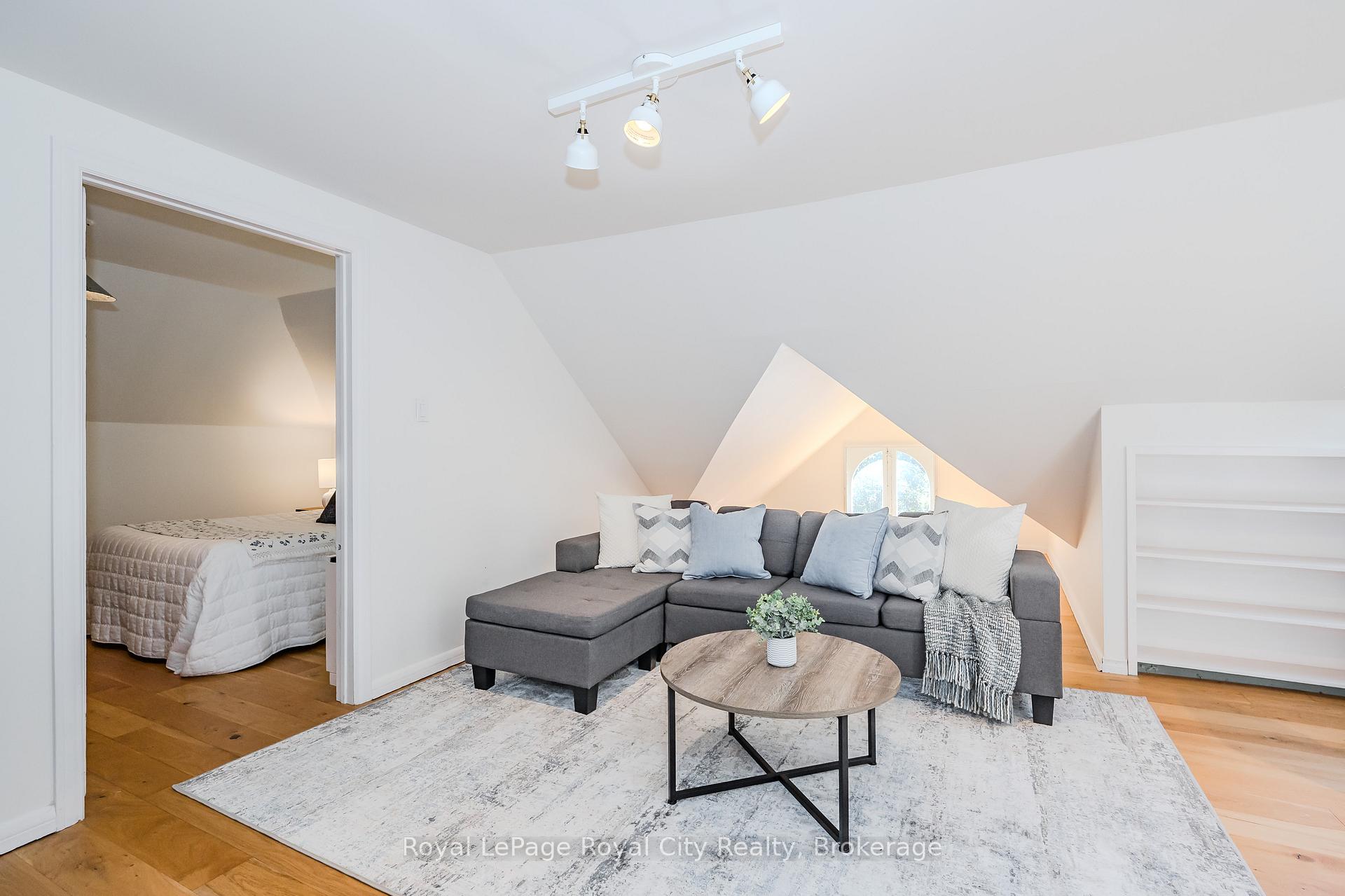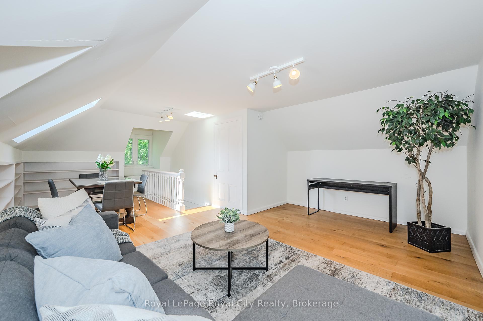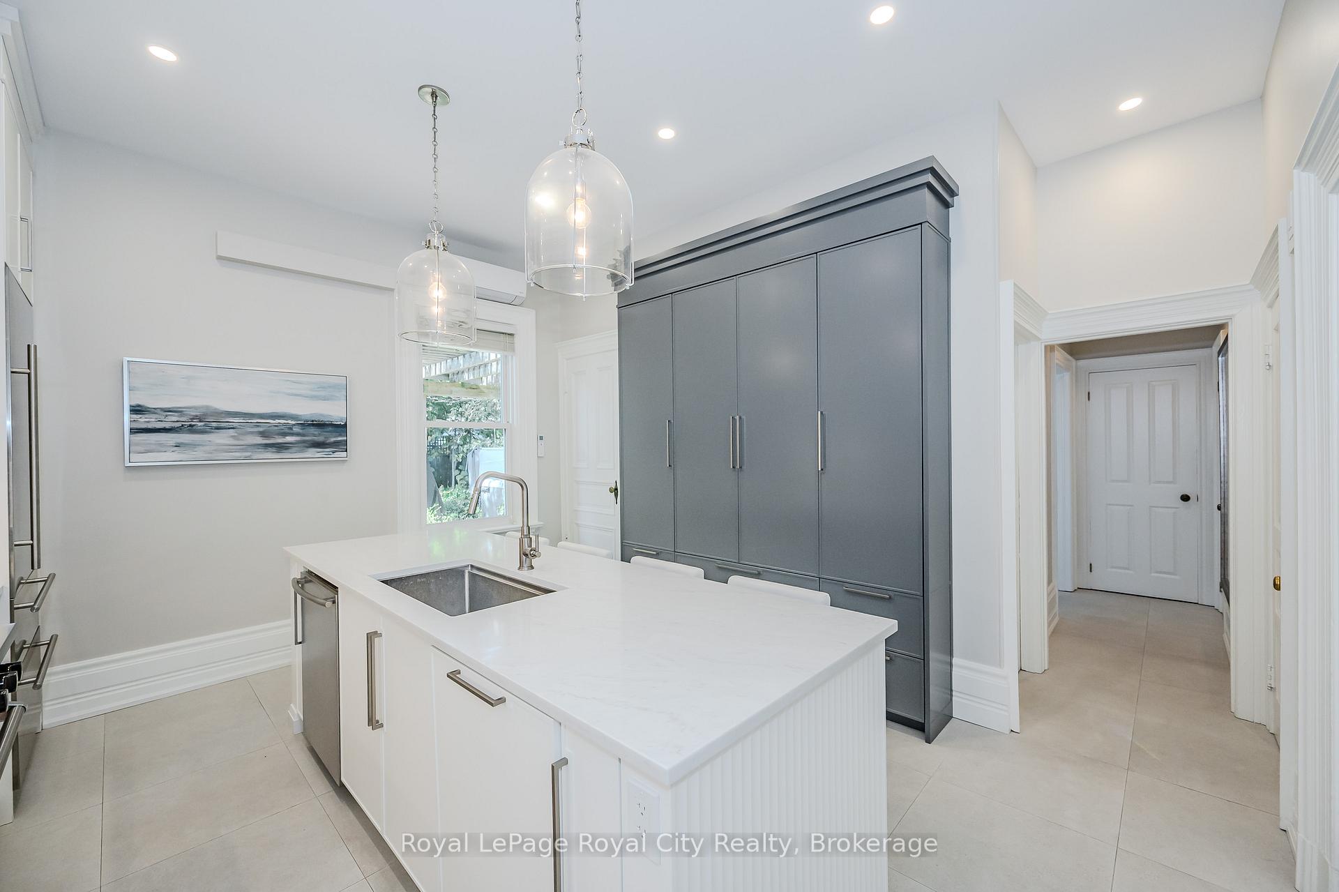Step into the timeless elegance of 138 Dublin Street N, a captivating century home nestled in the heart of Downtown Guelph. From the moment you arrive, the charming wraparound porch beckons you into a residence where historic beauty meets modern sophistication. Every detail has been thoughtfully curated, from the exquisite stained-glass windows to the grand curved staircase in the foyer. Hardwood floors, crown moulding, and soaring ceilings create a sense of refinement, while the intricate artistry throughout sets this home apart. The inviting living and dining rooms boast quintessential century home features, including pocket doors and a new electric fireplace, perfect for cozy evenings. The main level also offers a versatile family room with walkout access to the porch. The heart of the home is the fully remodeled kitchen, showcasing custom Barzotti cabinetry, a spacious island, and top-of-the-line Viking and Miele appliances. A secondary staircase, convenient laundry/mudroom, two pantries, and a 2-piece powder room complete this level, leading seamlessly to your private backyard retreat. Upstairs, the primary suite is a sanctuary, featuring a custom walk-in closet and a luxurious ensuite. Two additional bedrooms and a sunroom with balcony access add to the charm. The third level offers a fourth bedroom and a versatile recreation space, ideal for hobbies, yoga, or quiet reflection. Outside, the low-maintenance backyard is an entertainers dream, with a spacious deck, new gazebo, hot tub, and detached garage equipped with a 50-amp EV charging station. The lower level provides ample storage and potential for additional living space. Enjoy the best of both worldsproximity to Guelphs vibrant downtown with its boutique shops, cafés, and restaurants, and the serenity of your own private oasis. This cherished gem is truly one of a kind. Schedule your private showing today and experience the magic for yourself!