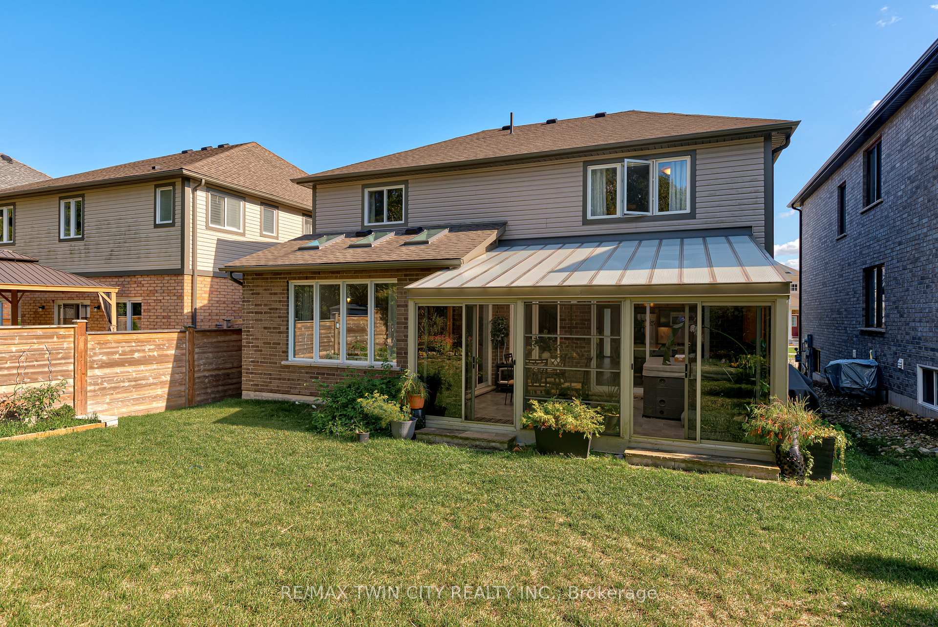 CUSTOM BUILT HOME BACKING ONTO KIWANIS PARK! Welcome to 138 Eaglecrest Street, a recently built (2016) stunning 4 Bed, 3 Bath home with backyard privacy and Western exposure. As you approach the property, you will notice the beautiful exterior complete with an extra wide garage & driveway, charming front porch, and soffit lighting. Heading inside, you are greeted with 9 foot ceilings, an open concept main floor, expanded updated kitchen (2024) with extensive quartz counters and quartz single slab backsplash, updated powder room (2024), and a bright custom cedar sunroom (2018). Heading upstairs, you will find four good-sized bedrooms, two recently updated full bathrooms (2024), and a convenient separate laundry room. Additional features of this home include hardwood flooring throughout, reverse osmosis, and income-generating solar panels. Located in an exceptional school district, the property provides direct access to Kiwanis Park, as well as close proximity to Grey Silo Golf Course, RIM Park, Conestogo Mall, and all amenities that the East end has to offer. Dont miss the virtual tour!