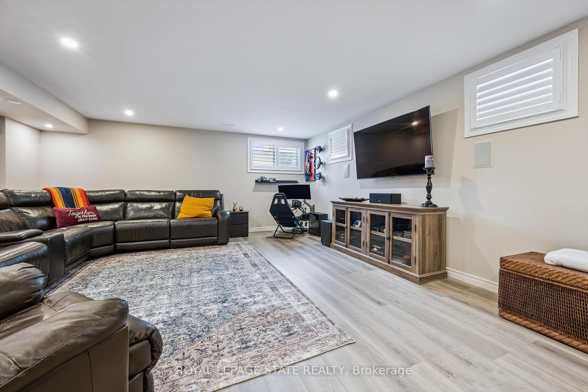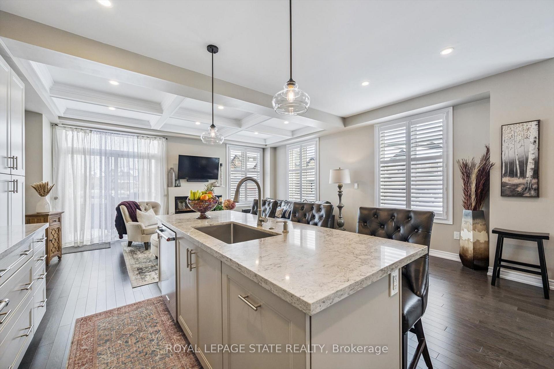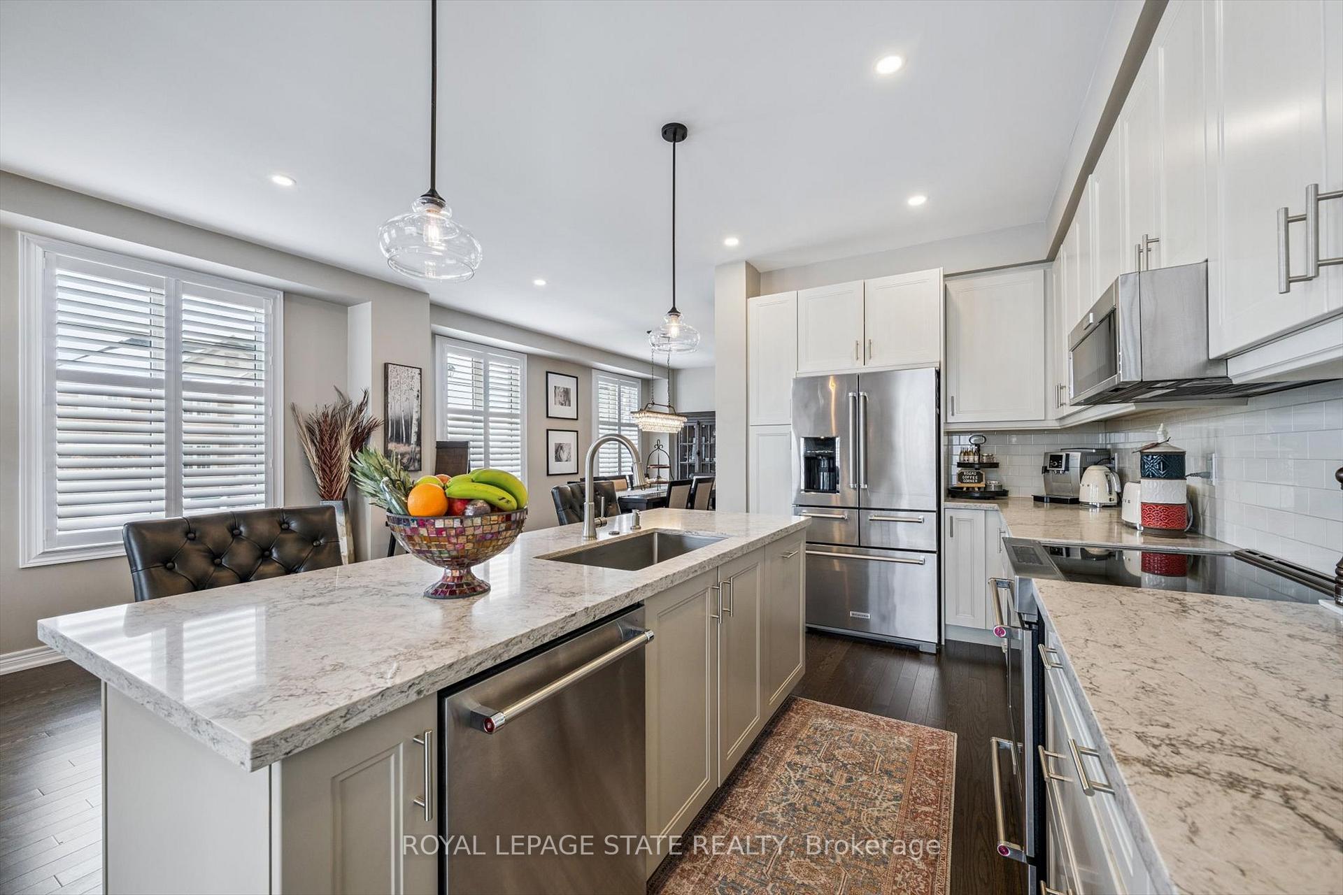Refined design, elevated comfort, and exceptional craftsmanship define this beautifully curated residence at 1383 Farmstead – a fully carpet-free home where every finish has been thoughtfully selected to create a timeless and sophisticated living experience.The stunning open-concept main floor showcases rich hardwood flooring, elegant coffered ceilings, California shutters throughout, and an abundance of natural light. A striking wood staircase with wrought-iron spindles adds architectural interest, while upscale light fixtures and pot lights create a warm, refined ambiance. The designer kitchen is both functional and impressive, featuring granite countertops, under-cabinet lighting, a coordinated backsplash, and impeccable craftsmanship. A discreet powder room, versatile office or piano room, and an elegant electric fireplace complete this inviting and beautifully balanced level.Upstairs, three spacious bedrooms and two full bathrooms provide exceptional comfort. The second bedroom offers convenient ensuite privilege access, while the luxurious primary retreat features two walk-in closets and a spa-inspired ensuite with a 6-jet rainfall shower tower. Hardwood flooring continues throughout the upper level, complemented by ceramic tile in the bathrooms. A well-appointed laundry room and rare walk-in linen closet add everyday practicality.The bright lower level extends the living space with a stylish open-concept great room finished in luxury vinyl plank flooring, California shutters, a four-piece bathroom with upscale finishes, wall-mounted speaker system, and generous storage. Furnace and A/C are nearly new, providing efficiency and peace of mind.Outdoors, enjoy a fully fenced yard with irrigation system, custom shed, and professionally landscaped gardens showcasing hydrangeas, hostas, and three Japanese maples.An exceptional, meticulously maintained home where quality, design, and comfort come together seamlessly.