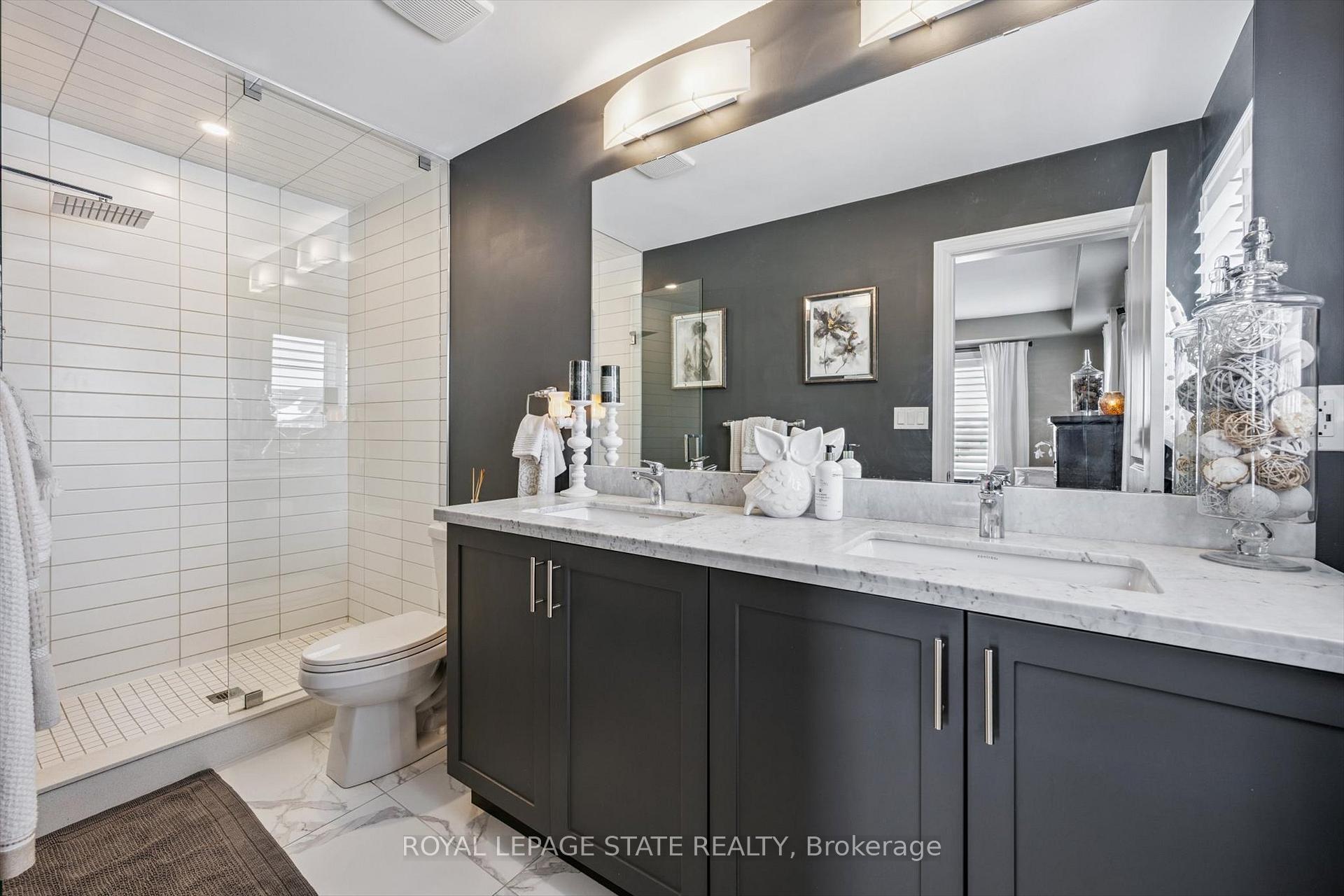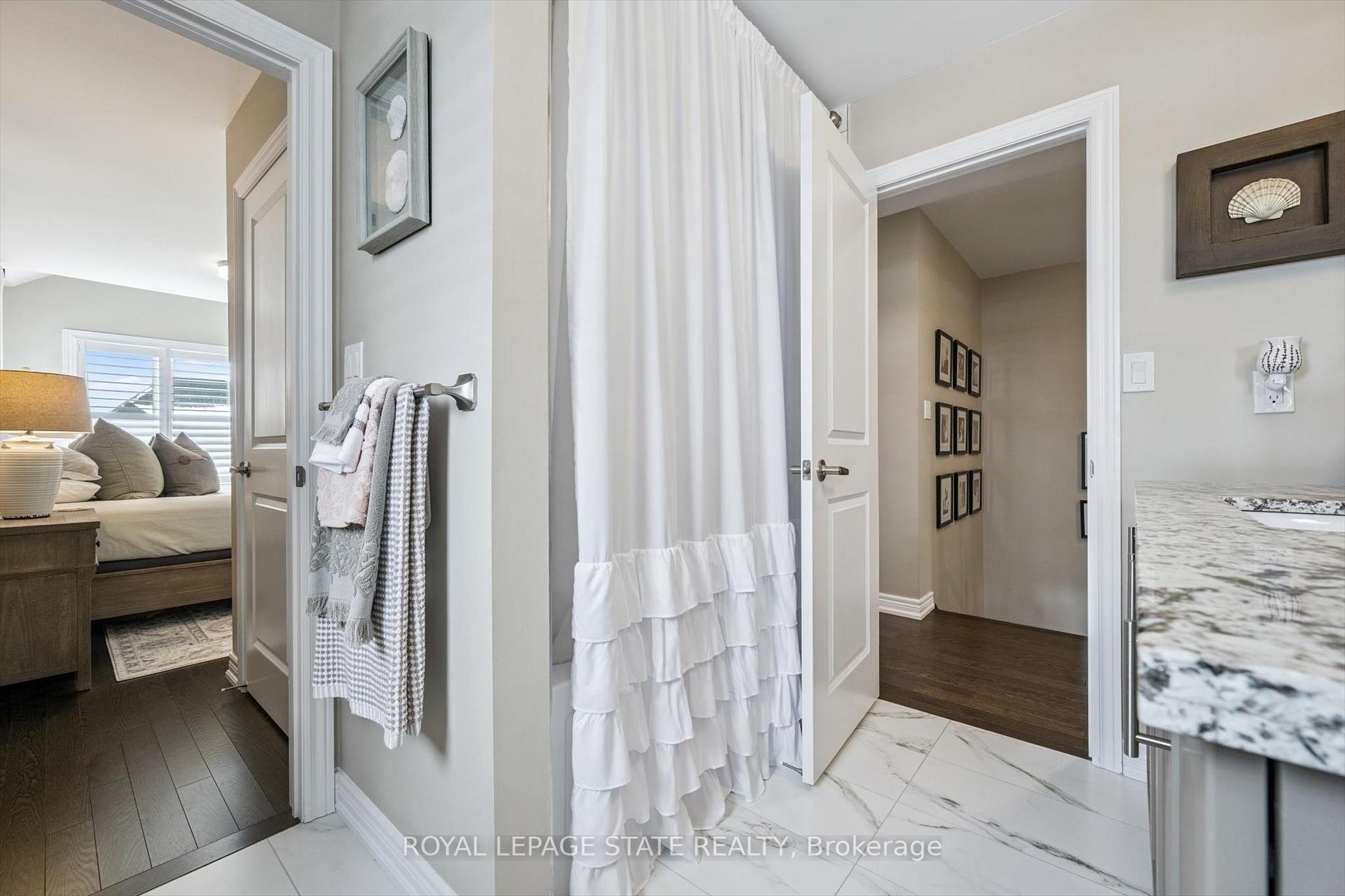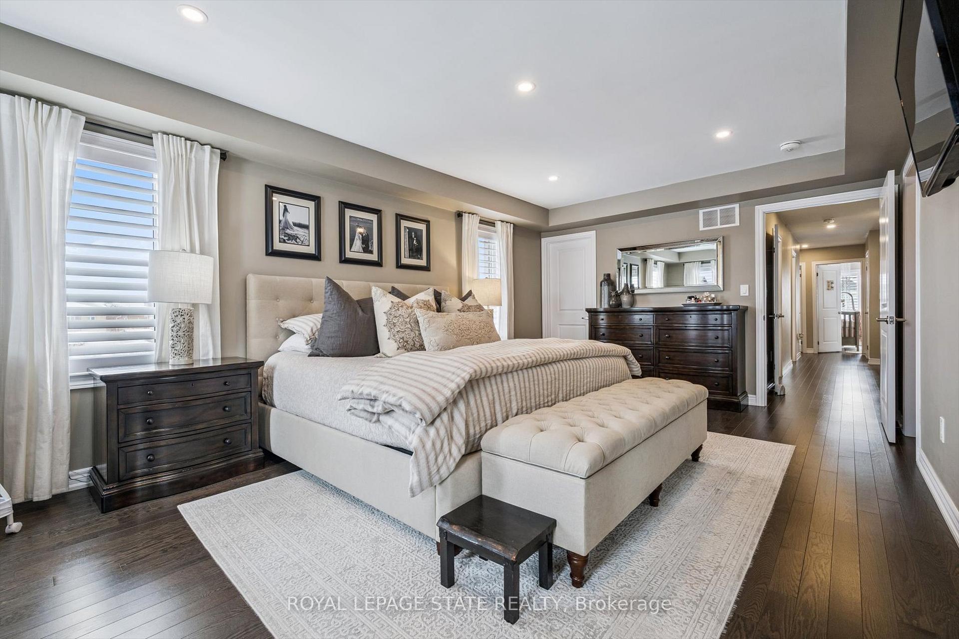 Refined design, elevated comfort, and exceptional craftsmanship define this beautifully curated residence at 1383 Farmstead – a fully carpet-free home where every finish has been thoughtfully selected to create a timeless and sophisticated living experience.The stunning open-concept main floor showcases rich hardwood flooring, elegant coffered ceilings, California shutters throughout, and an abundance of natural light. A striking wood staircase with wrought-iron spindles adds architectural interest, while upscale light fixtures and pot lights create a warm, refined ambiance. The designer kitchen is both functional and impressive, featuring granite countertops, under-cabinet lighting, a coordinated backsplash, and impeccable craftsmanship. A discreet powder room, versatile office or piano room, and an elegant electric fireplace complete this inviting and beautifully balanced level.Upstairs, three spacious bedrooms and two full bathrooms provide exceptional comfort. The second bedroom offers convenient ensuite privilege access, while the luxurious primary retreat features two walk-in closets and a spa-inspired ensuite with a 6-jet rainfall shower tower. Hardwood flooring continues throughout the upper level, complemented by ceramic tile in the bathrooms. A well-appointed laundry room and rare walk-in linen closet add everyday practicality.The bright lower level extends the living space with a stylish open-concept great room finished in luxury vinyl plank flooring, California shutters, a four-piece bathroom with upscale finishes, wall-mounted speaker system, and generous storage. Furnace and A/C are nearly new, providing efficiency and peace of mind.Outdoors, enjoy a fully fenced yard with irrigation system, custom shed, and professionally landscaped gardens showcasing hydrangeas, hostas, and three Japanese maples.An exceptional, meticulously maintained home where quality, design, and comfort come together seamlessly.