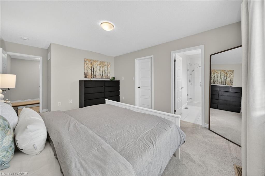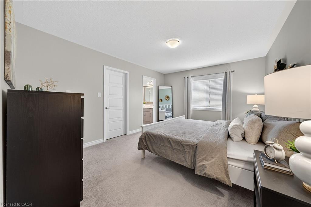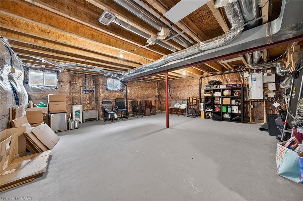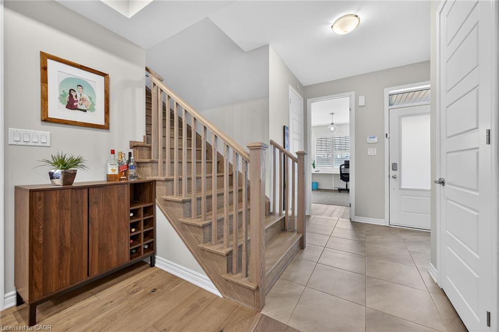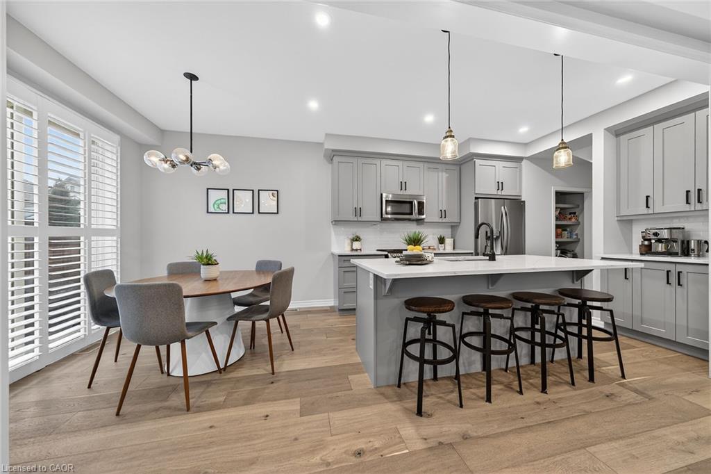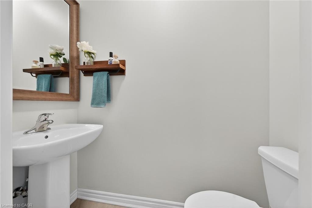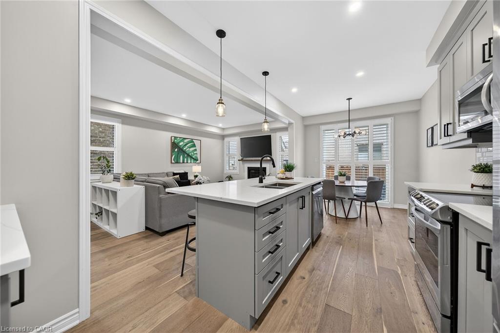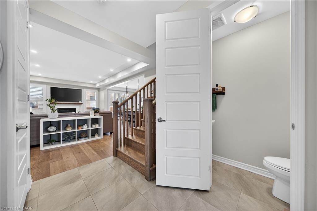 Charming detached home in a highly desirable Milton neighbourhood overlooking the pond and steps to 16 Mile Creek and scenic walking trails. This 4+1 bedroom, 3 bathroom home offers a spacious open-concept layout with wide plank hardwood floors, a modern kitchen with breakfast bar, dining area, and bright living room with cozy fireplace. Upstairs features four generously sized bedrooms, including a primary suite with large walk-in closet and spacious ensuite. The unspoiled basement with large windows offers excellent potential for additional living space. Enjoy professionally completed patio hardscaping (2022) in the front and backyard-providing parking for two additional cars and a great outdoor setting for relaxing or entertaining.