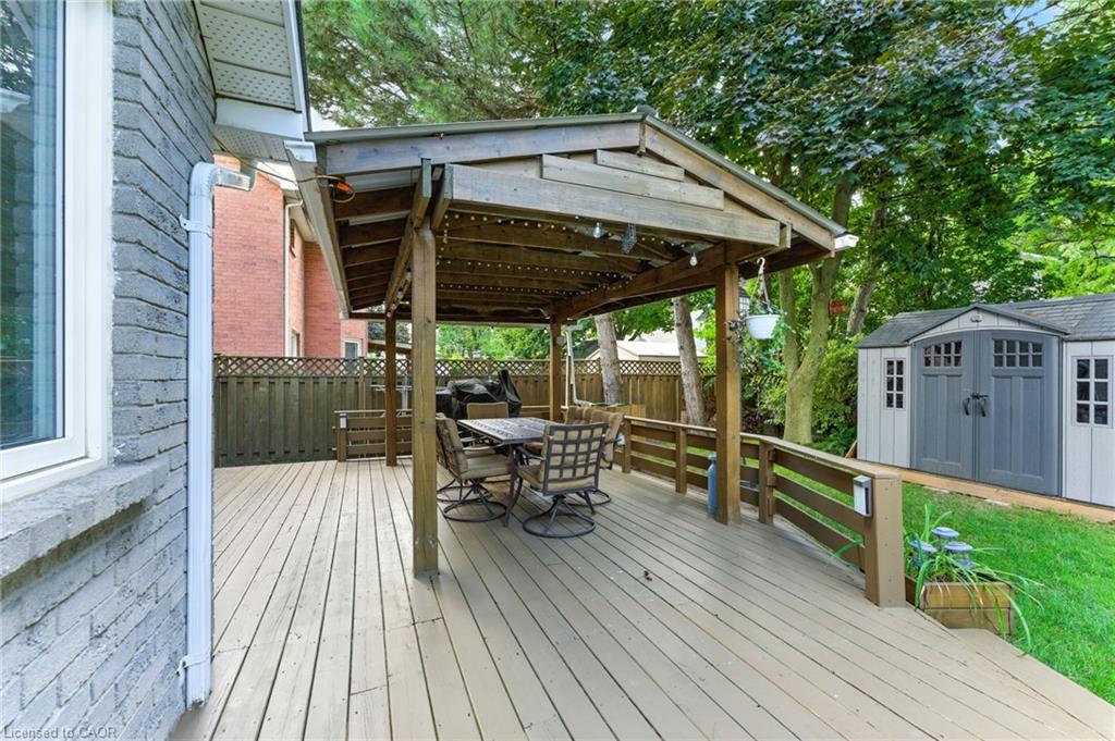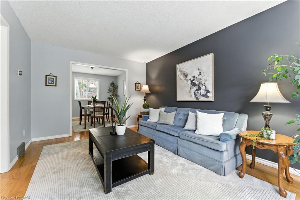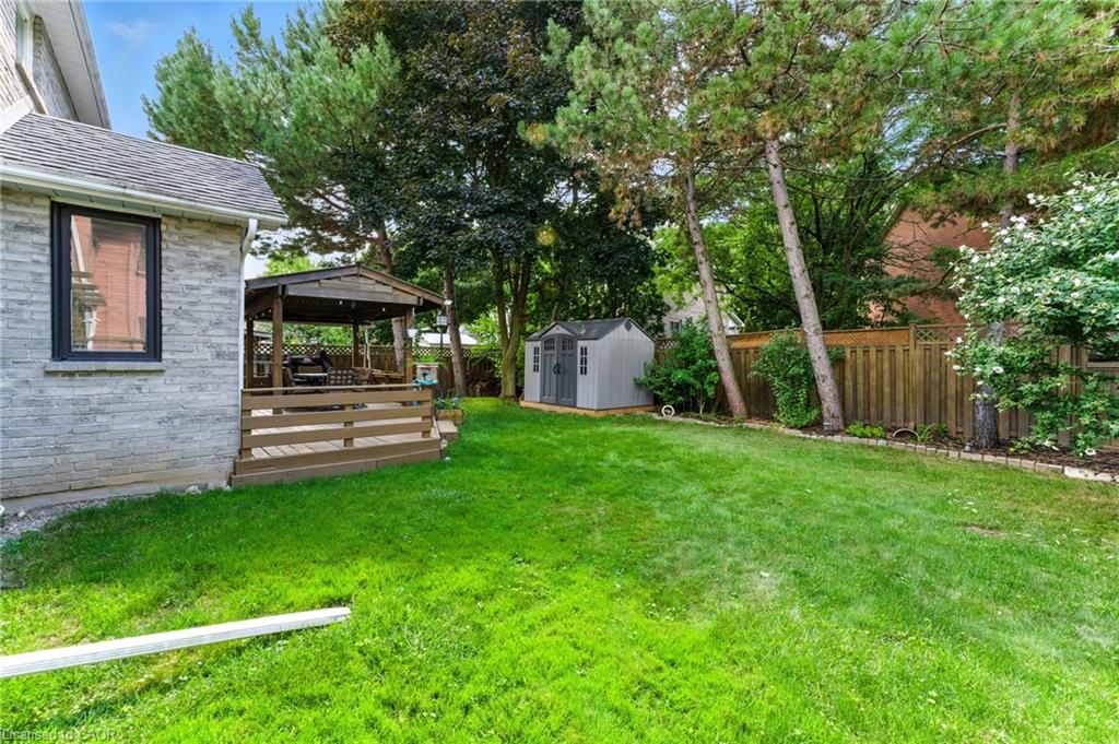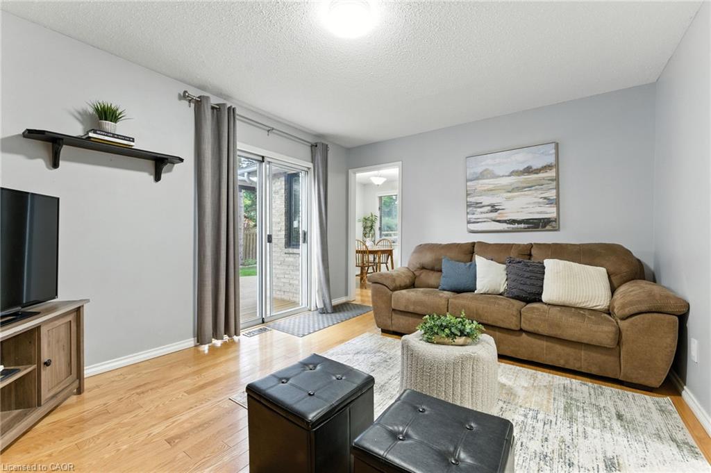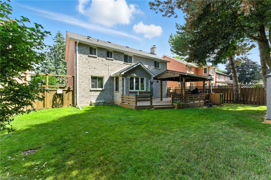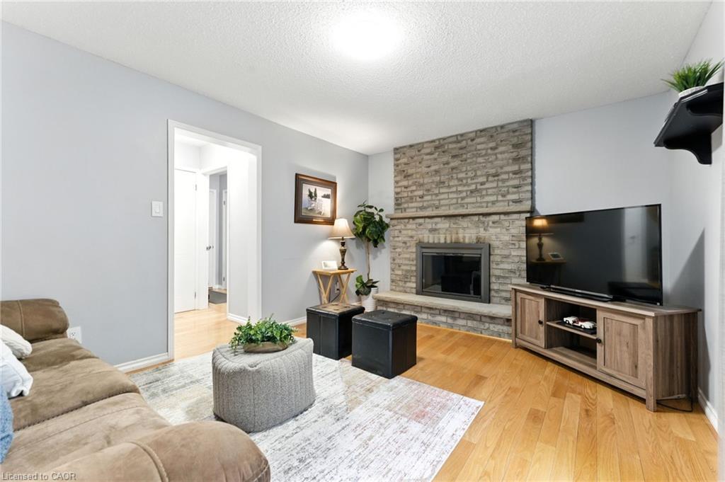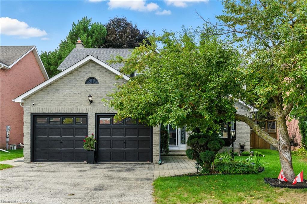 The one you’ve been waiting for! Located in one of the most sought-after neighbourhoods, this 3 bedroom, double car garage home offers comfort and convenience with inviting living spaces. Here, you’ll find great schools, peaceful trails, and quick access to shopping, dining, and the 401, all in a community you’ll be proud to call home. A welcoming interlock pathway leads to the enclosed front porch, a practical yet charming entry to kick off boots and shake off wet jackets! Step through the front door to find hardwood floors that carry you throughout the main level, connecting each room seamlessly. The formal living and dining rooms create a warm, open space for gatherings, while the sunlit kitchen with its stainless steel appliances and bright dinette keeps you visually connected to the backyard beyond. Off the kitchen is the cozy family room, where a brick fireplace invites you to settle in during cooler months, and sliding doors open onto a large deck. From quiet mornings with coffee to lively BBQs and evenings with friends, this space nicely integrates indoor/outdoor living and dining, featuring a custom fixed wooden gazebo. A 2pc powder room and a mudroom with direct garage access finish off the main floor with everyday practicality. Upstairs, the primary bedroom features a spacious sitting area, walk-in closet, and 4pc ensuite with recently updated flooring. Two additional bedrooms and a refreshed 4pc bathroom provide plenty of space for family or guests. The finished basement adds even more versatility with a large rec room anchored by a gas fireplace, a sleek 3pc bathroom with shower, and a flexible layout that adapts easily to movie nights, hobbies, or simply just expanding your living space. Out back, the low maintenance yard is landscaped with gardens, mature trees, and a storage shed, all enclosed in a fully fenced yard. This beautifully maintained home, in a prime location, is ready for you to move in and call your own!