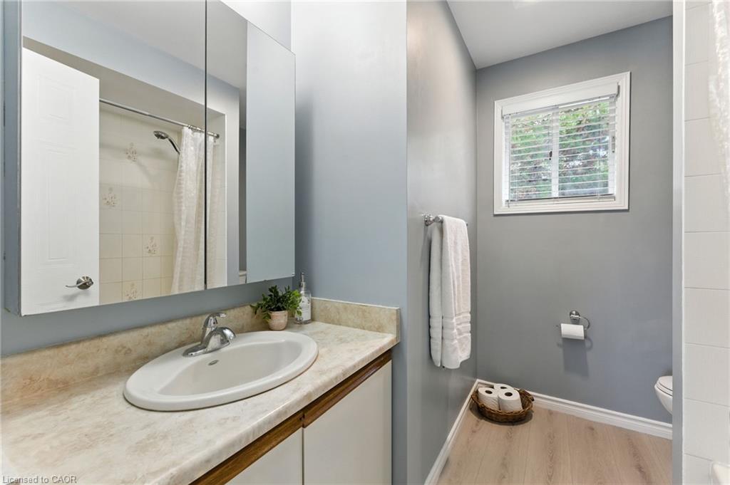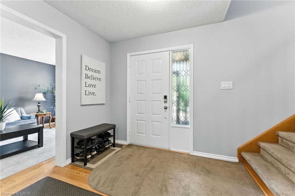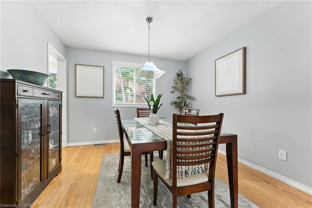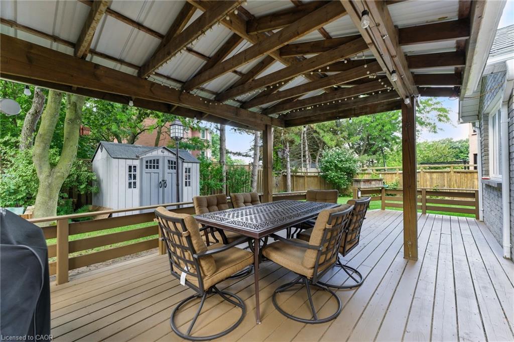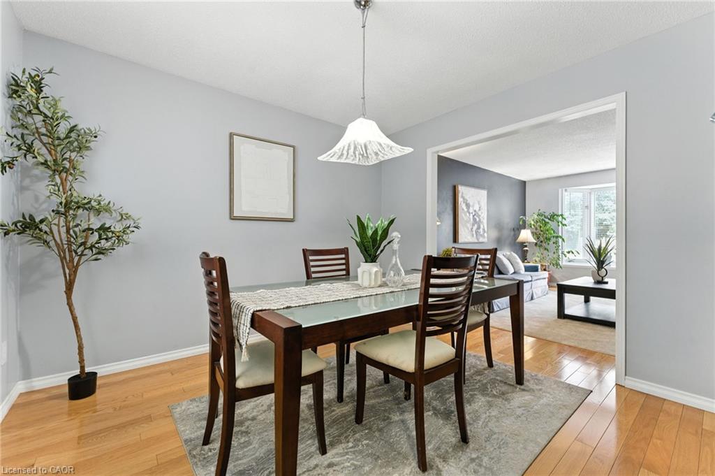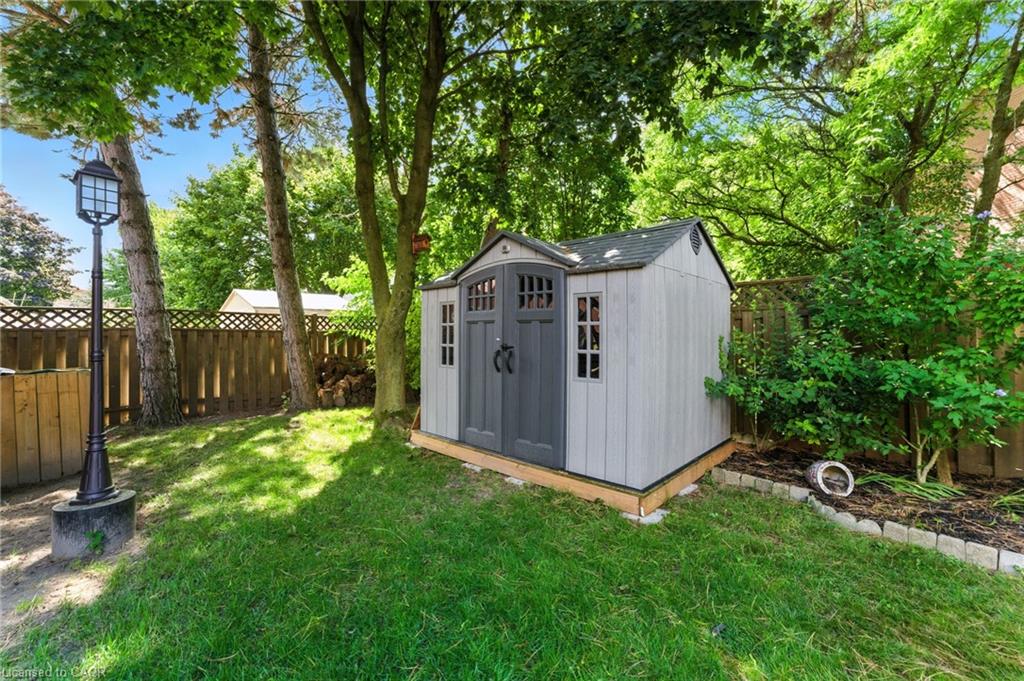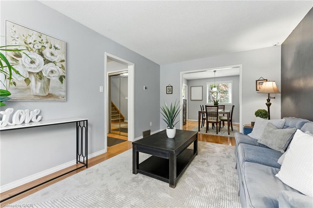 The one you’ve been waiting for! Located in one of the most sought-after neighbourhoods, this 3 bedroom, double car garage home offers comfort and convenience with inviting living spaces. Here, you’ll find great schools, peaceful trails, and quick access to shopping, dining, and the 401, all in a community you’ll be proud to call home. A welcoming interlock pathway leads to the enclosed front porch, a practical yet charming entry to kick off boots and shake off wet jackets! Step through the front door to find hardwood floors that carry you throughout the main level, connecting each room seamlessly. The formal living and dining rooms create a warm, open space for gatherings, while the sunlit kitchen with its stainless steel appliances and bright dinette keeps you visually connected to the backyard beyond. Off the kitchen is the cozy family room, where a brick fireplace invites you to settle in during cooler months, and sliding doors open onto a large deck. From quiet mornings with coffee to lively BBQs and evenings with friends, this space nicely integrates indoor/outdoor living and dining, featuring a custom fixed wooden gazebo. A 2pc powder room and a mudroom with direct garage access finish off the main floor with everyday practicality. Upstairs, the primary bedroom features a spacious sitting area, walk-in closet, and 4pc ensuite with recently updated flooring. Two additional bedrooms and a refreshed 4pc bathroom provide plenty of space for family or guests. The finished basement adds even more versatility with a large rec room anchored by a gas fireplace, a sleek 3pc bathroom with shower, and a flexible layout that adapts easily to movie nights, hobbies, or simply just expanding your living space. Out back, the low maintenance yard is landscaped with gardens, mature trees, and a storage shed, all enclosed in a fully fenced yard. This beautifully maintained home, in a prime location, is ready for you to move in and call your own!
