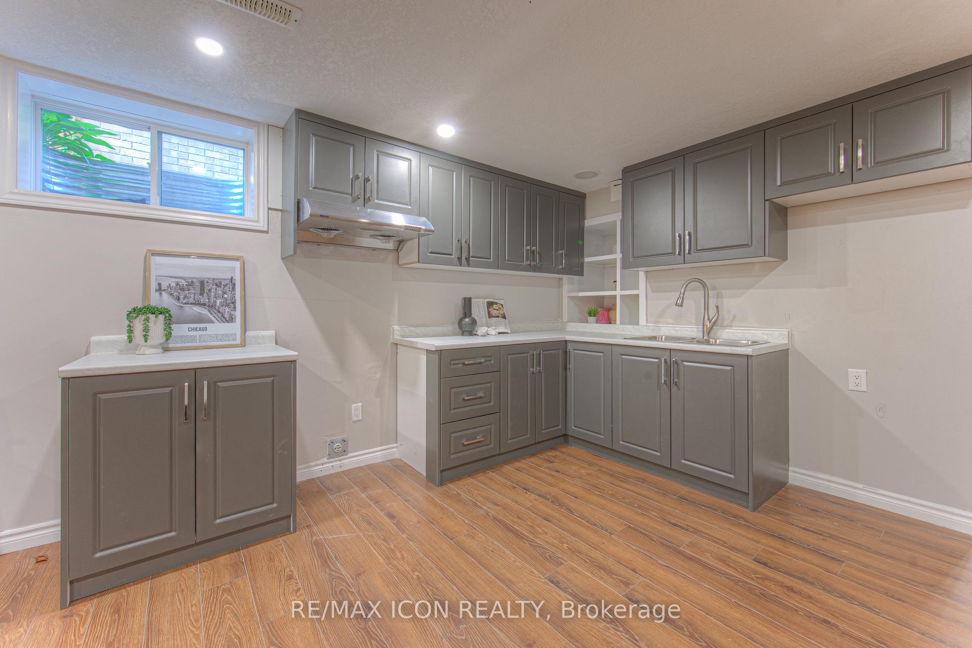 Rare opportunity in Kitchener’s desirable Chicopee/ Lackner Woods neighborhood! This stunning 5-bedroom, 3.5-bathroom detached home offers over 2,200+ sqft with an exceptional dual-kitchen layout perfect for multi-generational living or rental income potential. The main floor features an open-concept design with gourmet chef’s kitchen boasting oversized island, stone counters, dark modern cabinets, and stainless steel appliances, plus a covered deck overlooking the professionally landscaped, fully-fenced backyard. Upstairs offers three generous bedrooms including a luxurious master suite with walk-in closet and spa-like ensuite. The fully finished basement is a showstopper with its complete secondary kitchen, large family room, two additional bedrooms, 3-piece bathroom with walk-in shower, and abundant storage including a cold room. Located minutes from Highway 401 and Fairview Mall with nearby schools and walking trails, this property also includes a double-car garage plus two additional driveway spaces. This unique home combines luxury, functionality, and prime location – truly a must-see property that offers incredible versatility for modern family living!