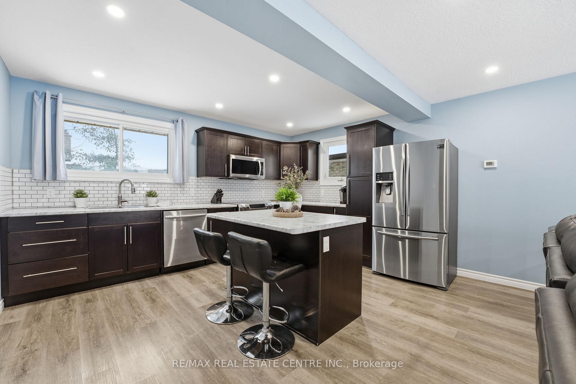 Welcome to 139 The Country Way, a thoughtfully updated four-level side-split offering a blend of space, comfort, and modern style. With 3 bedrooms, 2.5 bathrooms, and a fully finished layout top to bottom, this home delivers a surprising amount of livability in one of Kitchener’s most established and convenient neighbourhoods. The open-concept kitchen/living room, redesigned in 2019, sets the tone with its clean lines, generous pantry storage, and an inviting island with a breakfast bar-an ideal hub for weekday routines or weekend gathering. The adjoining living room area feels bright and connected, creating an easy flow throughout the main level. A cozy main-floor family room with a fireplace provides an everyday retreat, complete with sliding doors that open onto the backyard. A convenient two-piece bathroom finishes this level for added functionality. Upstairs, the bedroom level is anchored by a beautifully updated main bathroom (2024) featuring modern finishes and a surprisingly spacious linen closet. All three bedrooms offer comfortable proportions and natural light. The lower-level rec room impresses with its high ceilings-an uncommon and welcome feature in a sidesplit, making the space feel open and versatile for media, play, fitness, or a home office. Additional office space and storage continue on the lowest level, offering flexibility for future needs. Set on a good-sized lot, the fenced backyard provides room for gardening, play, or simply enjoying time outdoors. A single-car garage and double driveway complete the exterior. This location is known for its quiet residential streets and strong community feel, with McLennan’s Park that features a dog park, trails, shopping, and everyday amenities all close at hand. Families appreciate the nearby schools, while commuters value the easy access to major routes connecting throughout Waterloo Region.