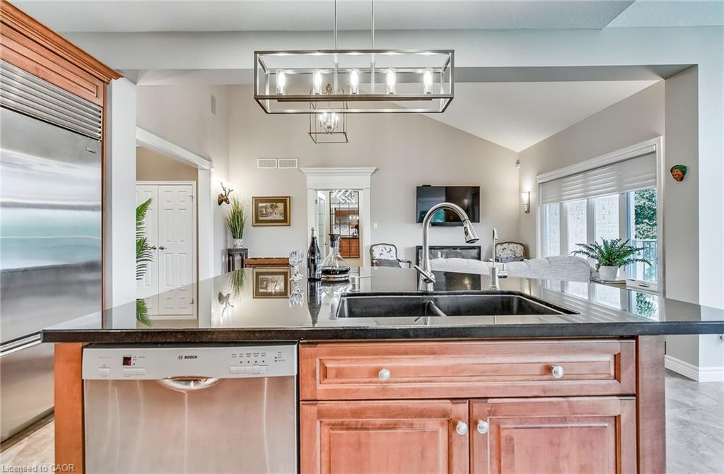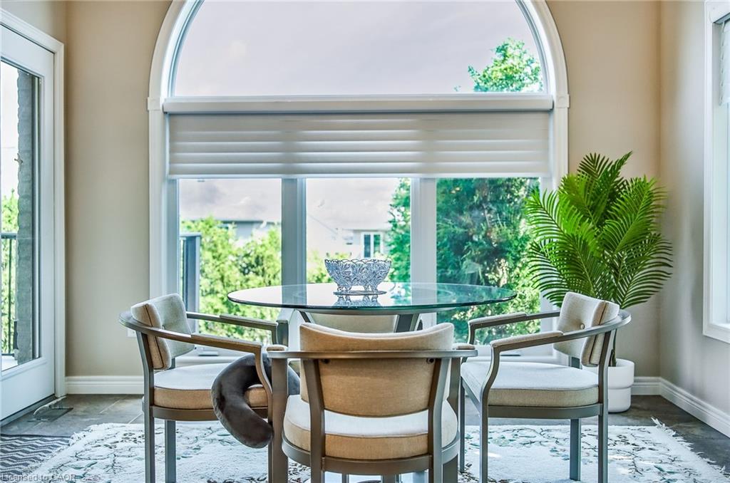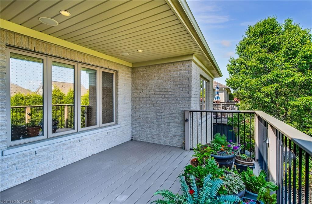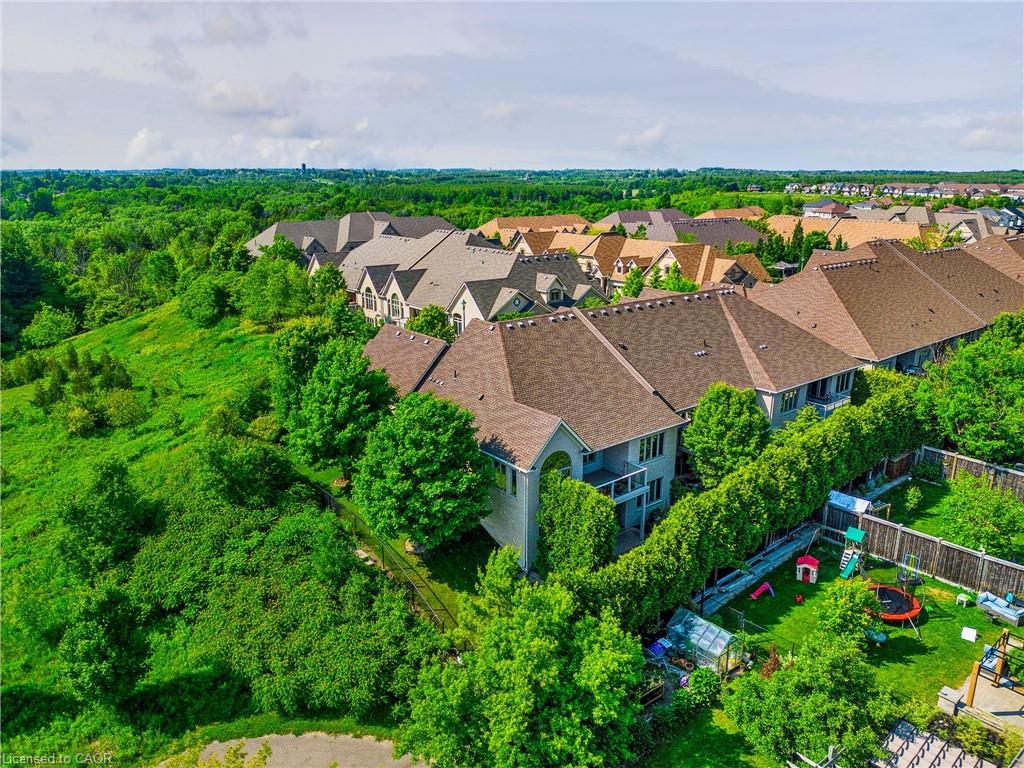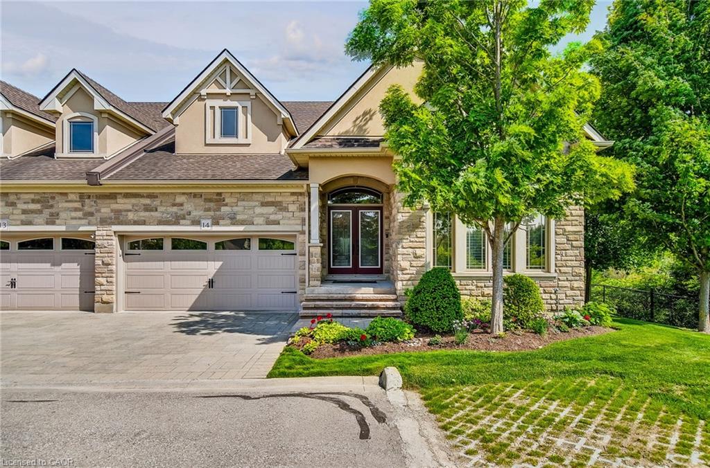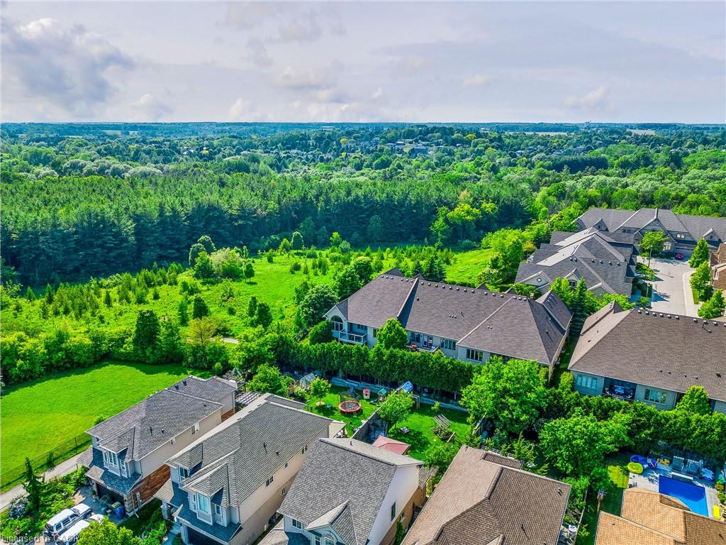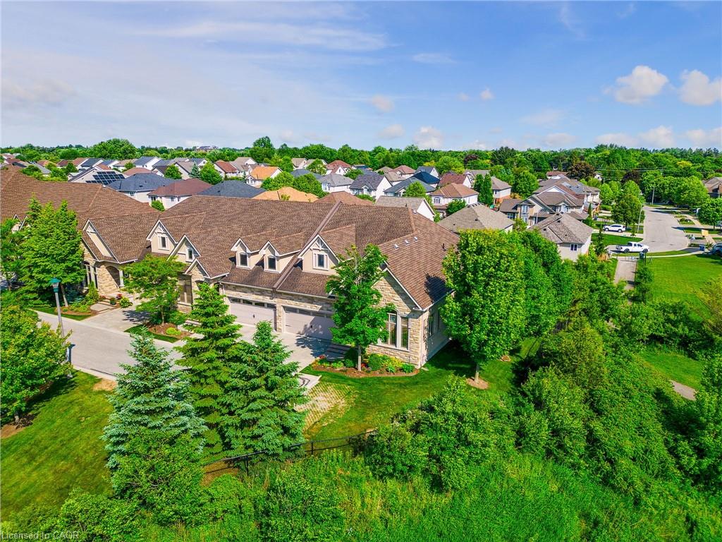 LOCATION! LOCATION! LOCATION! This beautiful, executive, end unit townhome has east, south and west views of the adjacent Conservation Lands. The nature views are stunning, and the southwest exposure of this unit offers an abundance of natural light, yard space and amazing sunset views. This is the best lot situated within the 46-unit complex and located within easy access to a variety of shopping and social services. The front exterior stands out with an upgraded garage door and front steps. The 2,171 square foot main floor features soaring 17-foot ceilings, an elegant formal dining room, and upgraded surround sound with in-room controls throughout, creating the perfect setting for both entertaining and everyday luxury. Enjoy preparing meals with high quality Wolf and Sub-Zero appliances in the kitchen along with beautiful granite counters with lots of cabinet space. The lower level contains a full walkout to a private patio. Venture into the basement where you’ll find stunning hardwood flooring, a cozy gas fireplace, a third bedroom and full bathroom. The basement offers plenty of extra room and versatile storage, giving you the freedom to customize it for whatever you need—be it a home gym, office, or entertainment area. This home is built for easy living with wide doorways and tons of space for extended family and friends to visit and enjoy. You will not want to miss out on owning this highly desirable quality home, not only because of its location in north Guelph with easy access to Victoria and Woodlawn Roads; but also because of the spectacular natural views and the quality executive features built by Fusion Homes, one of Guelph’s premier home builders. All this with low monthly fees! Don’t be TOO LATE*! *REG TM. RSA.