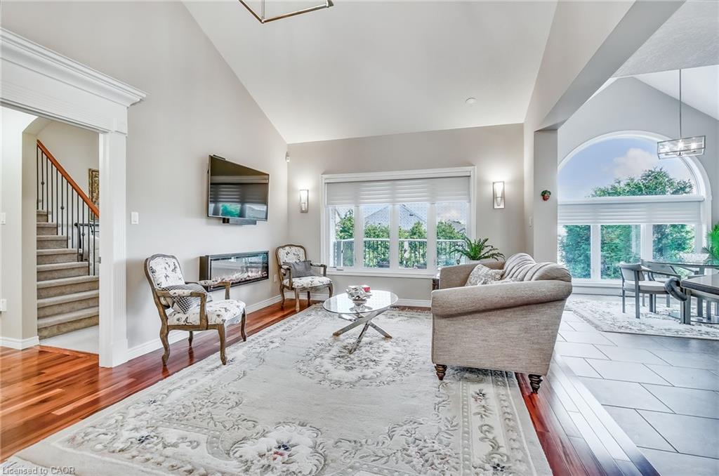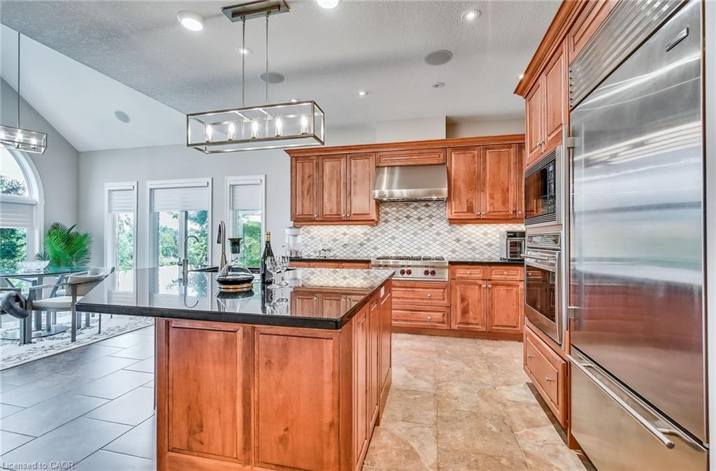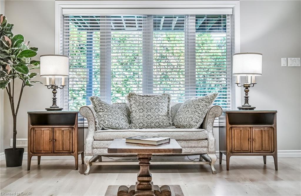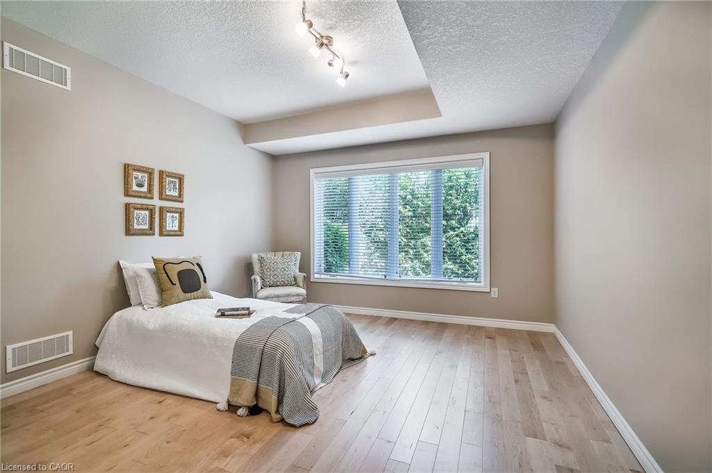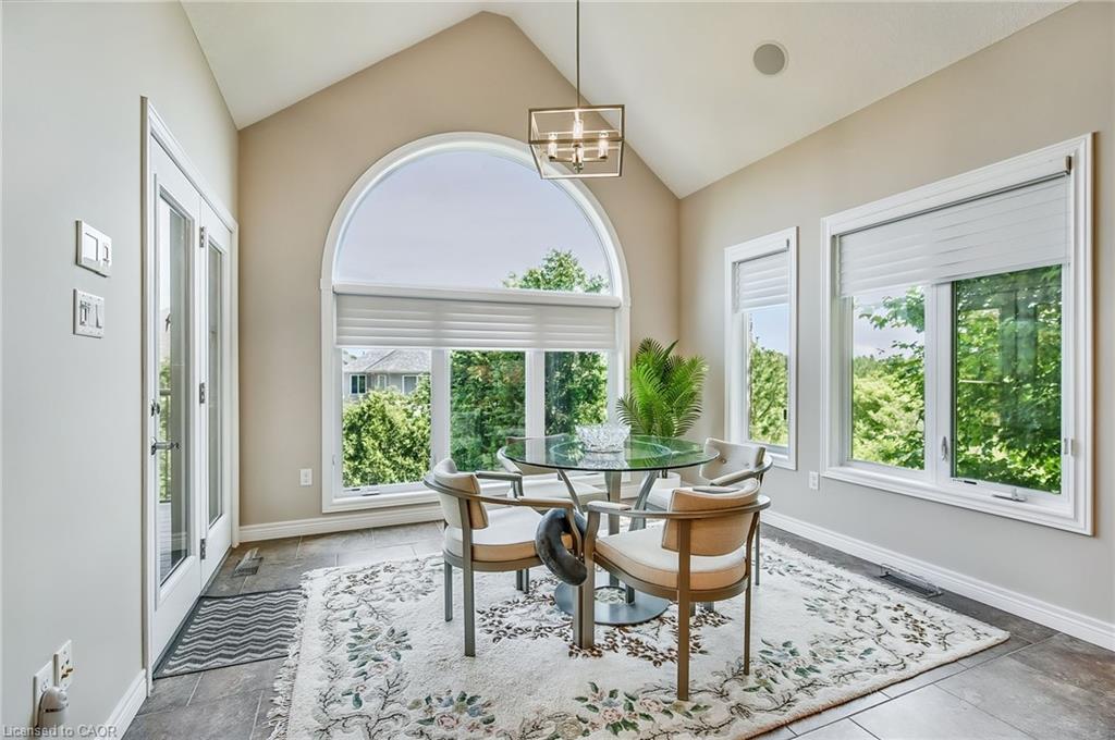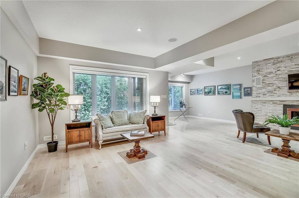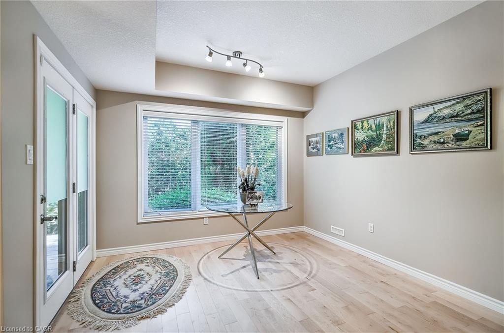 LOCATION! LOCATION! LOCATION! This beautiful, executive, end unit townhome has east, south and west views of the adjacent Conservation Lands. The nature views are stunning, and the southwest exposure of this unit offers an abundance of natural light, yard space and amazing sunset views. This is the best lot situated within the 46-unit complex and located within easy access to a variety of shopping and social services. The front exterior stands out with an upgraded garage door and front steps. The 2,171 square foot main floor features soaring 17-foot ceilings, an elegant formal dining room, and upgraded surround sound with in-room controls throughout, creating the perfect setting for both entertaining and everyday luxury. Enjoy preparing meals with high quality Wolf and Sub-Zero appliances in the kitchen along with beautiful granite counters with lots of cabinet space. The lower level contains a full walkout to a private patio. Venture into the basement where you’ll find stunning hardwood flooring, a cozy gas fireplace, a third bedroom and full bathroom. The basement offers plenty of extra room and versatile storage, giving you the freedom to customize it for whatever you need—be it a home gym, office, or entertainment area. This home is built for easy living with wide doorways and tons of space for extended family and friends to visit and enjoy. You will not want to miss out on owning this highly desirable quality home, not only because of its location in north Guelph with easy access to Victoria and Woodlawn Roads; but also because of the spectacular natural views and the quality executive features built by Fusion Homes, one of Guelph’s premier home builders. All this with low monthly fees! Don’t be TOO LATE*! *REG TM. RSA.