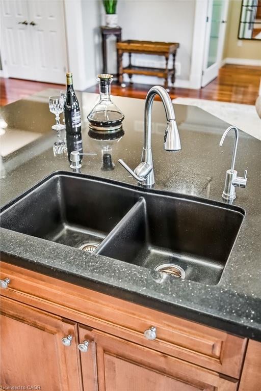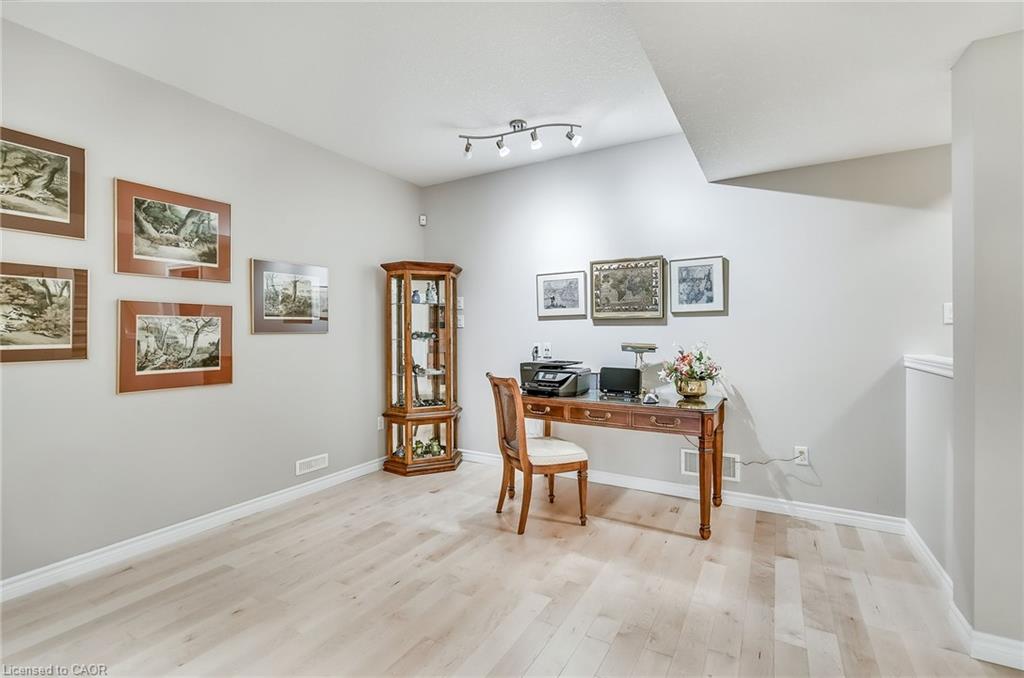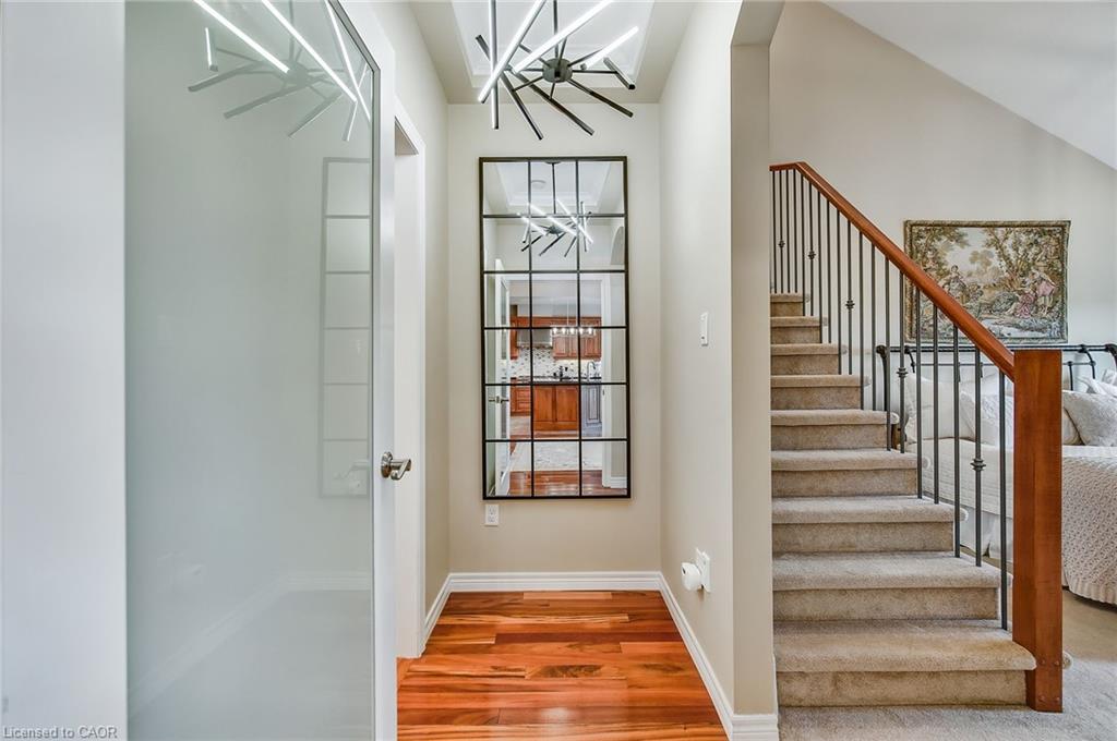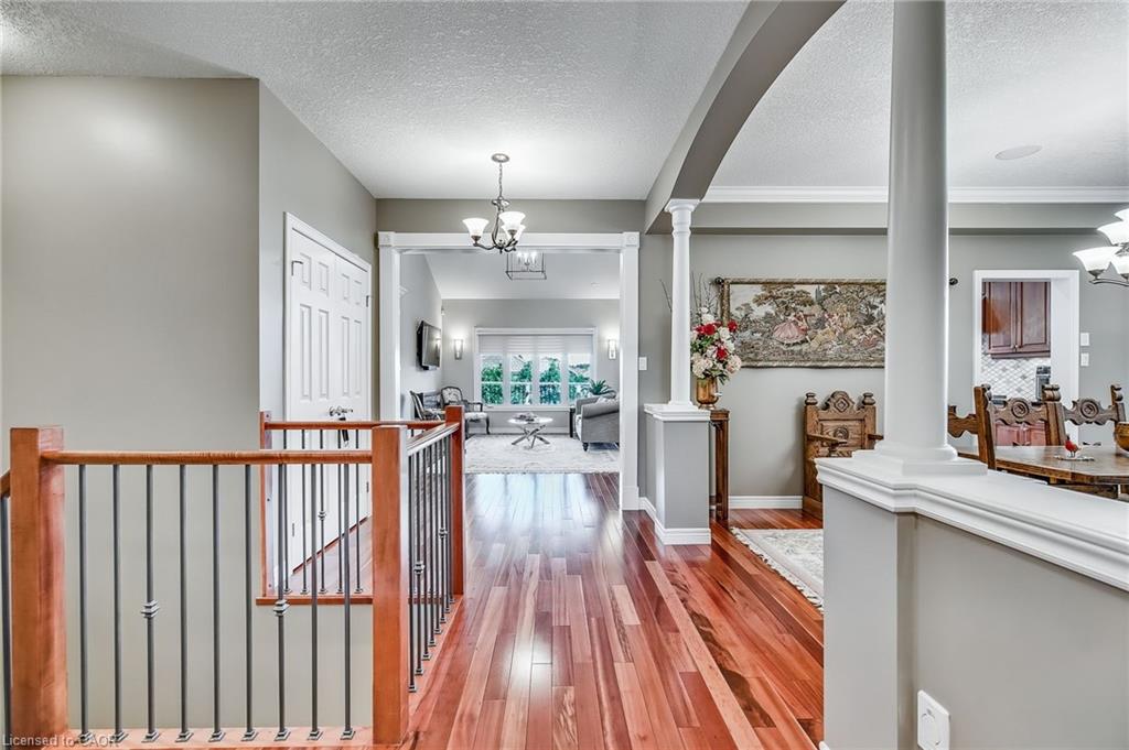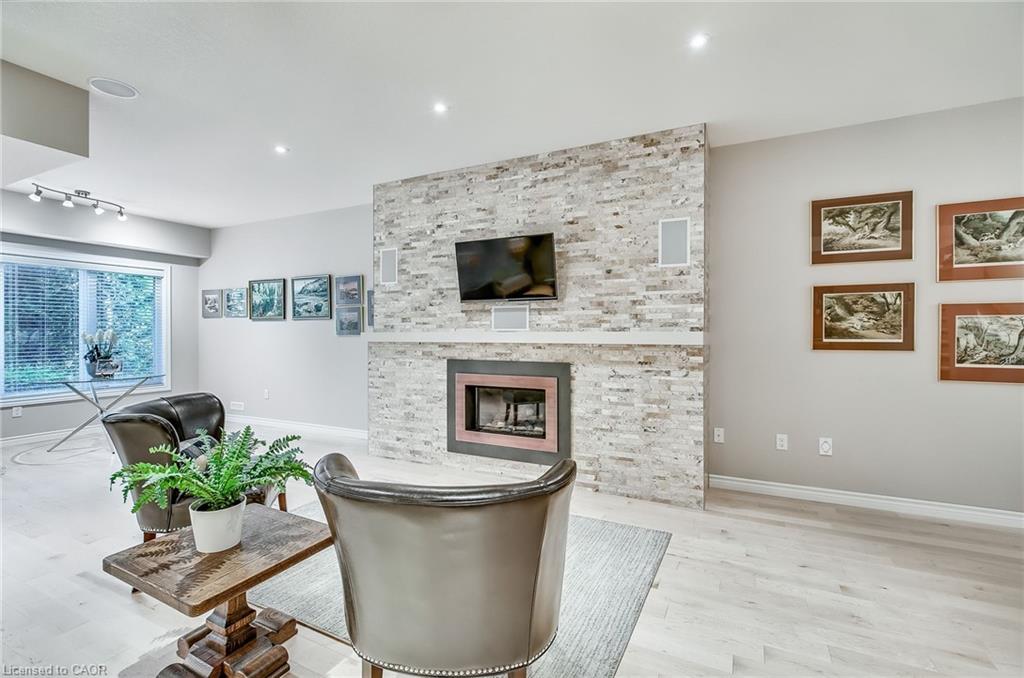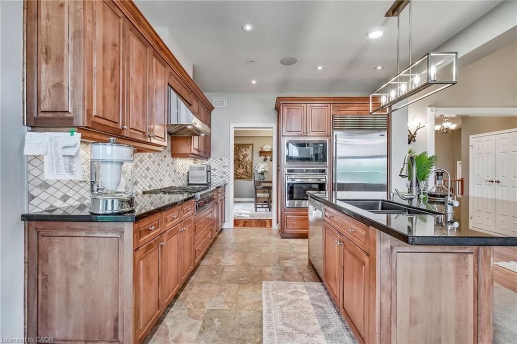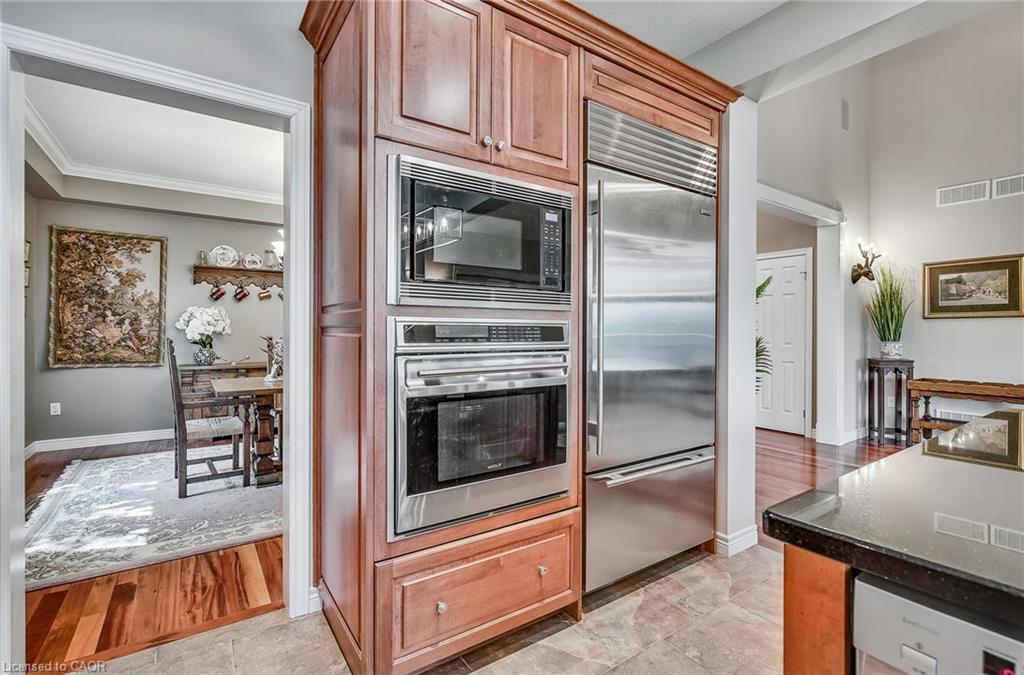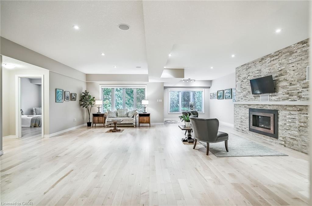 LOCATION! LOCATION! LOCATION! This beautiful, executive, end unit townhome has east, south and west views of the adjacent Conservation Lands. The nature views are stunning, and the southwest exposure of this unit offers an abundance of natural light, yard space and amazing sunset views. This is the best lot situated within the 46-unit complex and located within easy access to a variety of shopping and social services. The front exterior stands out with an upgraded garage door and front steps. The 2,171 square foot main floor features soaring 17-foot ceilings, an elegant formal dining room, and upgraded surround sound with in-room controls throughout, creating the perfect setting for both entertaining and everyday luxury. Enjoy preparing meals with high quality Wolf and Sub-Zero appliances in the kitchen along with beautiful granite counters with lots of cabinet space. The lower level contains a full walkout to a private patio. Venture into the basement where you’ll find stunning hardwood flooring, a cozy gas fireplace, a third bedroom and full bathroom. The basement offers plenty of extra room and versatile storage, giving you the freedom to customize it for whatever you need—be it a home gym, office, or entertainment area. This home is built for easy living with wide doorways and tons of space for extended family and friends to visit and enjoy. You will not want to miss out on owning this highly desirable quality home, not only because of its location in north Guelph with easy access to Victoria and Woodlawn Roads; but also because of the spectacular natural views and the quality executive features built by Fusion Homes, one of Guelph’s premier home builders. All this with low monthly fees! Don’t be TOO LATE*! *REG TM. RSA.