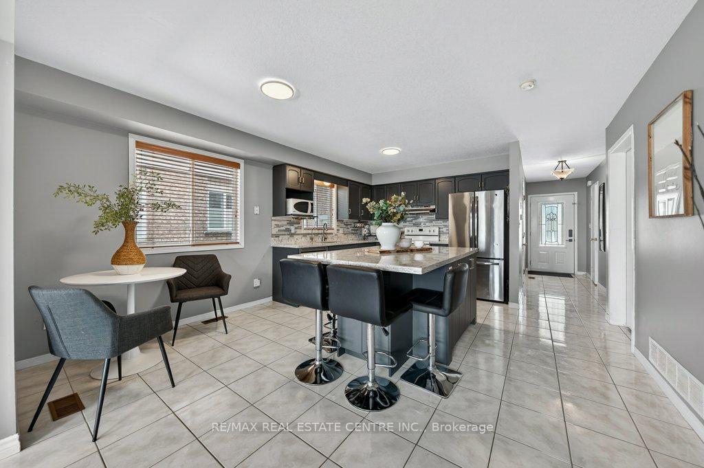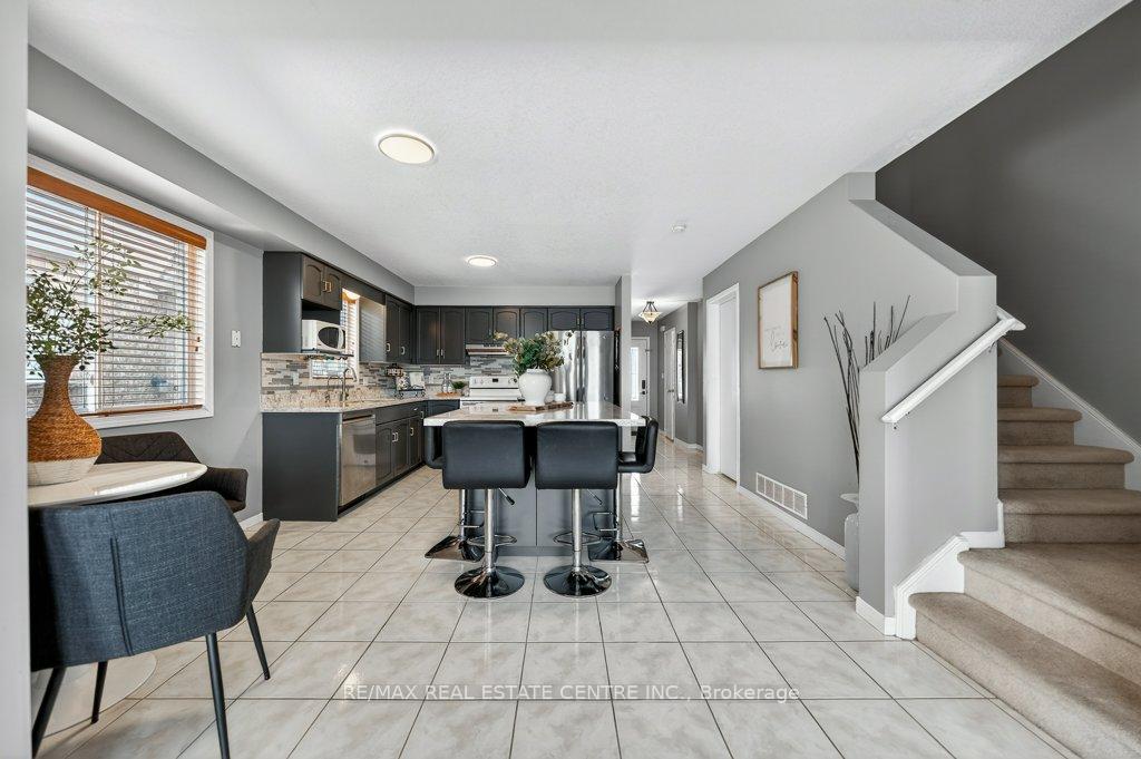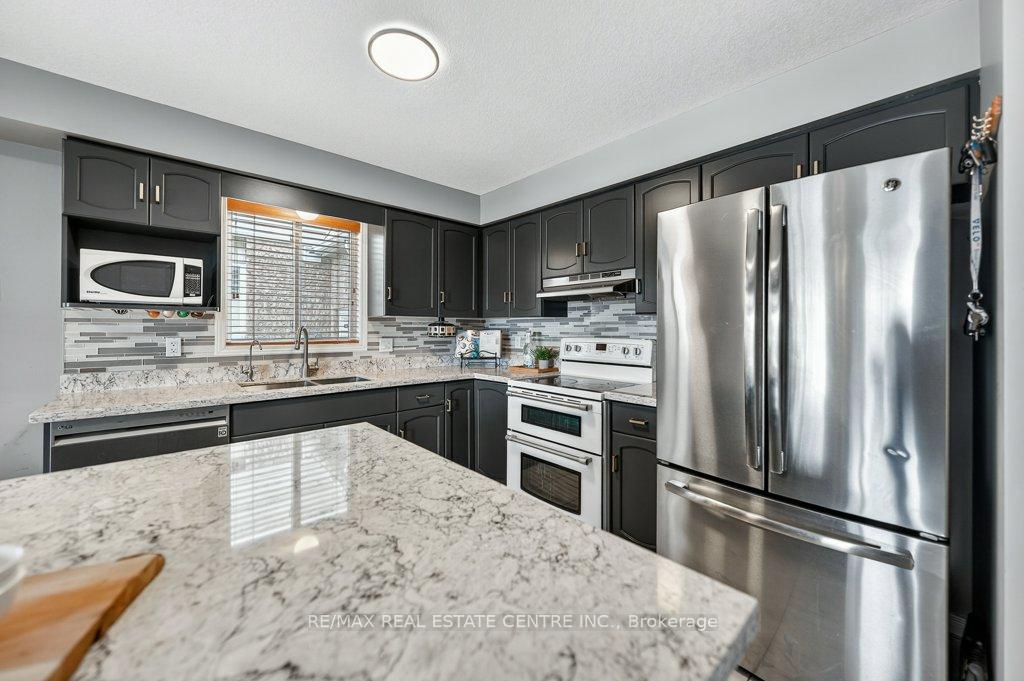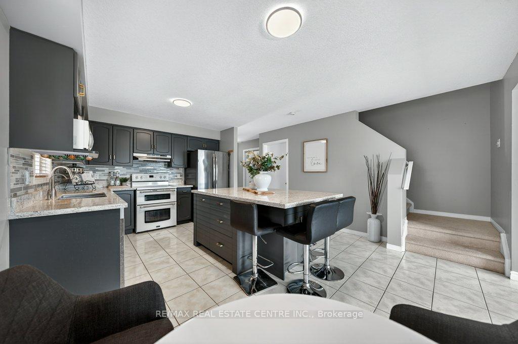 Tucked away in the highly desirable East Galt community, this impeccably cared-for 3-bedroom, 3-bathroom FREEHOLD townhome offers the perfect blend of comfort, style, and location – an outstanding opportunity for first-time buyers and growing families alike. Backing onto peaceful greenspace with no rear neighbours, this home delivers the privacy and lifestyle today’s buyers are searching for. The main level showcases a bright, open-concept design ideal for both everyday living and entertaining. The updated kitchen is thoughtfully designed with modern cabinetry, quartz countertops, a functional centre island, and S/S appliances, all framed by large sun-filled windows with elegant wooden shades. The space flows seamlessly into the inviting living area, where unobstructed rear views and direct walkout access lead to a private two-tier deck – perfect for summer gatherings or quiet morning coffee. Upstairs, the spacious primary retreat features a walk-in closet and a well-appointed 4-piece ensuite, with modern gold fixtures and faux marble tub surround. Two additional bedrooms and a full main bathroom provide flexibility for family, guests, or a home office setup. The freshly painted fully finished basement adds exceptional versatility with impressive ceiling height and ample room for a recreation space, media lounge, or workspace. A 3-piece rough-in bath, offers excellent future potential to customize the lower level to your needs. Ideally located close to parks, schools, shopping, and everyday amenities, this move-in-ready townhome combines low-maintenance living with a family-friendly setting – a fantastic place to call home. Recent updates include: Restored deck (2025), new thermopump (2024), central humidifier (2025), new tankless water heater.