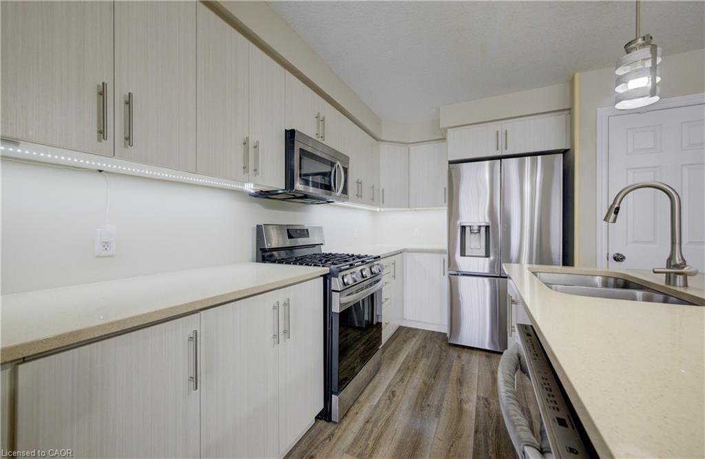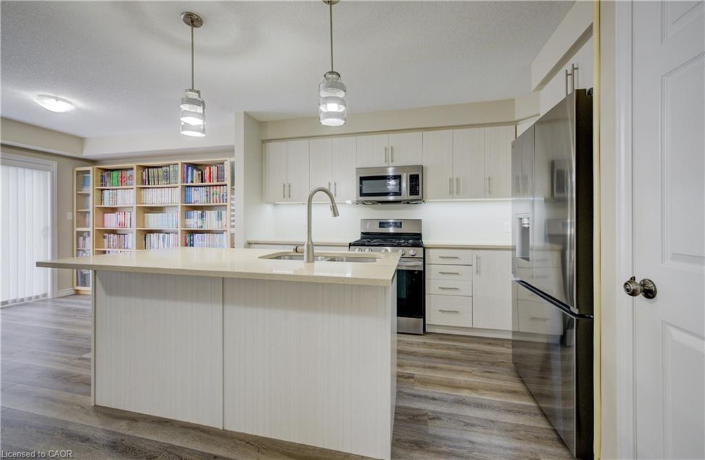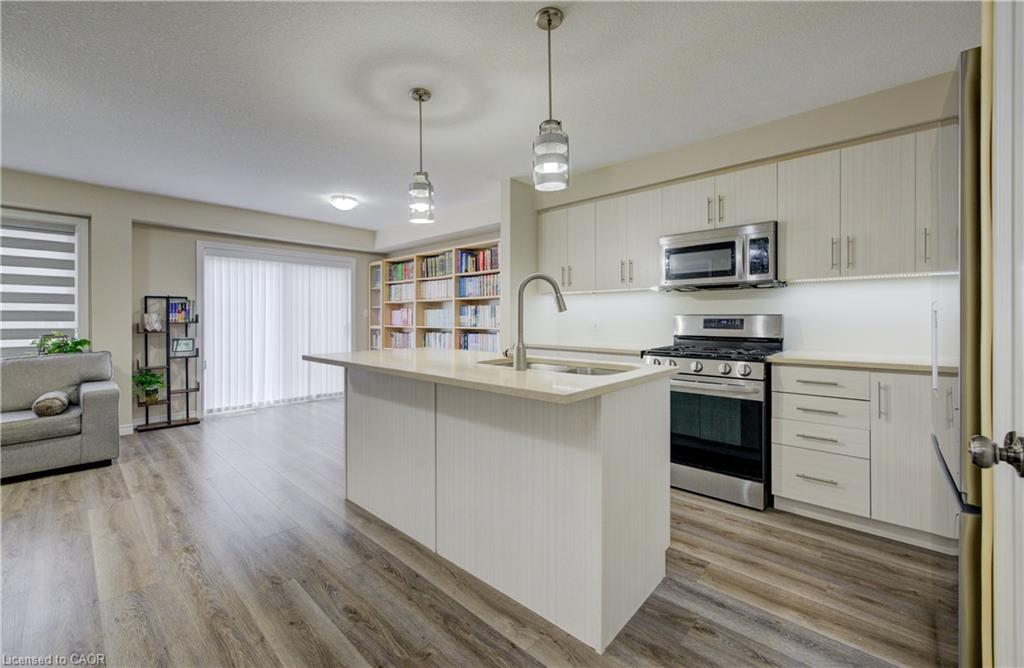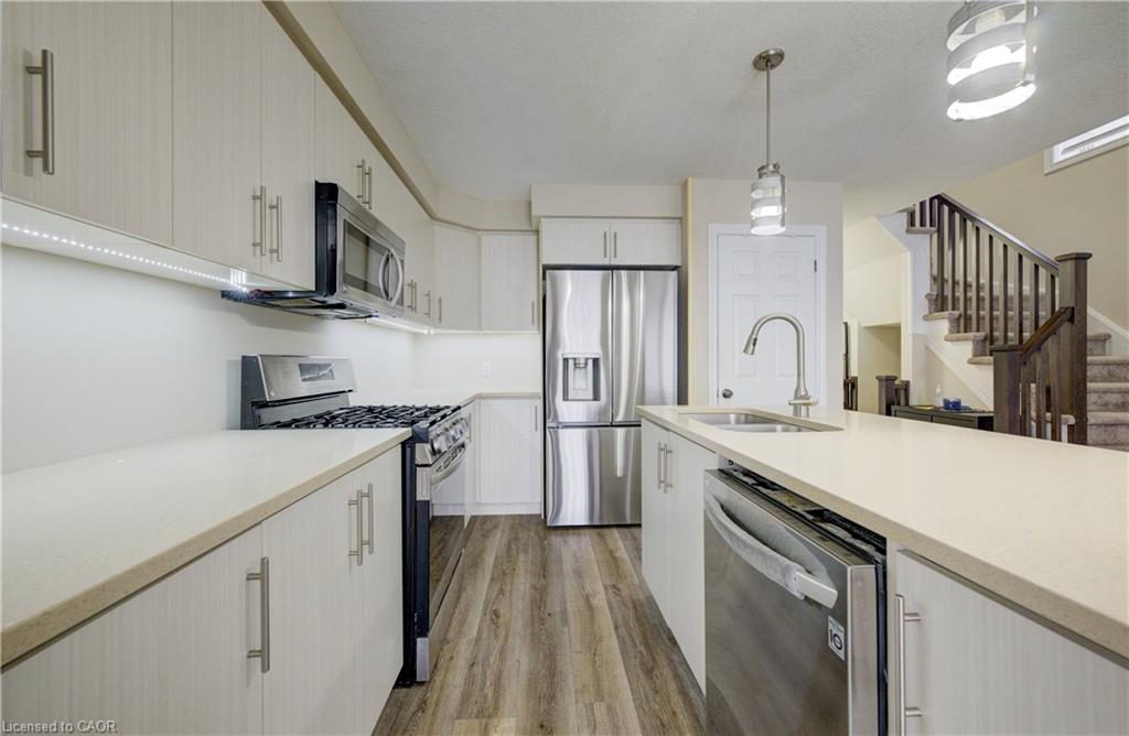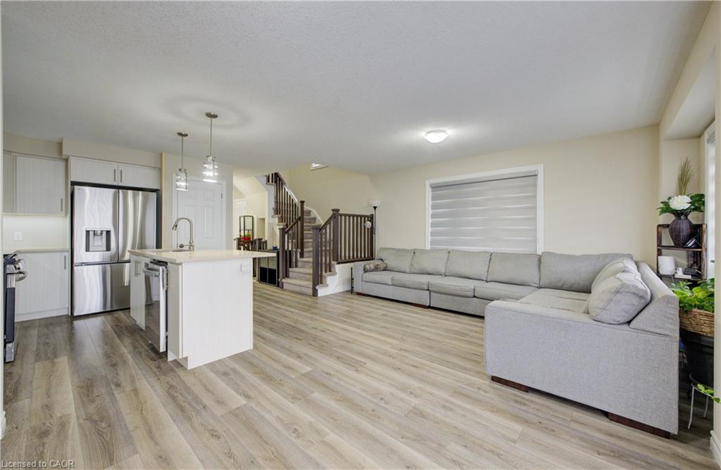 MODERN & SPACIOUS FREEHOLD END UNIT IN A FAMILY-FRIENDLY NEIGHBOURHOOD! Welcome to 14 Harrison Drive in Cambridge, where comfort meets style in this beautiful end-unit townhome offering over 1890 sq. ft. of living space. The bright and airy main floor is filled with natural light, featuring a stunning kitchen with granite countertops, an island with a breakfast bar, and an open view of the dining and family room. Large sliding doors open to a rear yard waiting for your touches. A convenient powder room completes this level. Upstairs, you’ll find 3 generously sized bedrooms, including the primary suite with a walk-in closet and a luxurious 4pc bathroom, boasting a beautiful stand-alone tub. 2 additional bedrooms share another well-appointed 4pc bathroom. The finished lower level expands your living space with a cozy rec room, an additional 4pc room, laundry facilities, and extra storage. With parking for up to 3 vehicles (including a single garage and an extended tandem driveway), this home has plenty of space for the whole family. Located within walking distance to top-rated schools, the YMCA, public transit, and all essential amenities, plus just minutes from Highway 401—this home has everything you need for convenient, modern living.