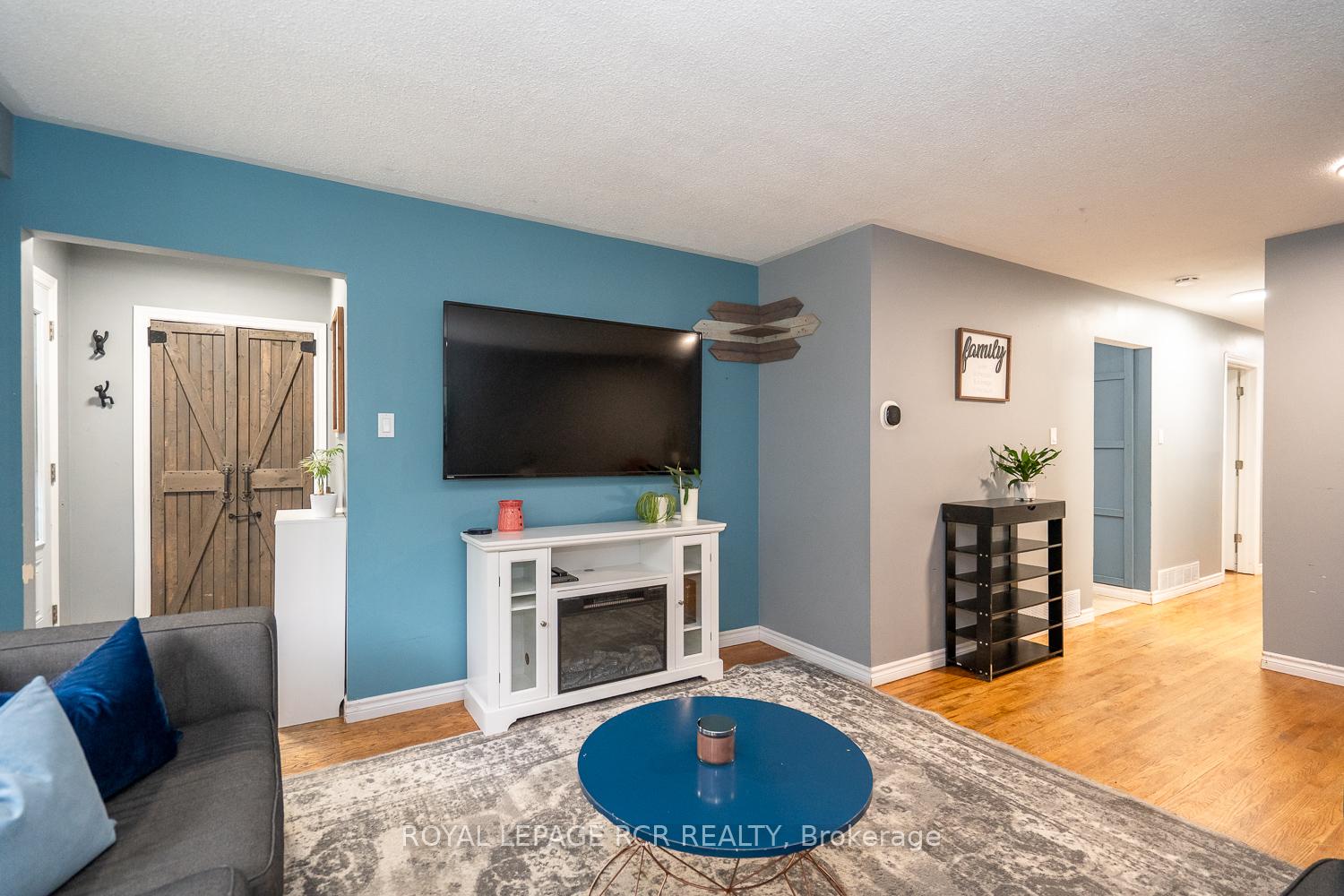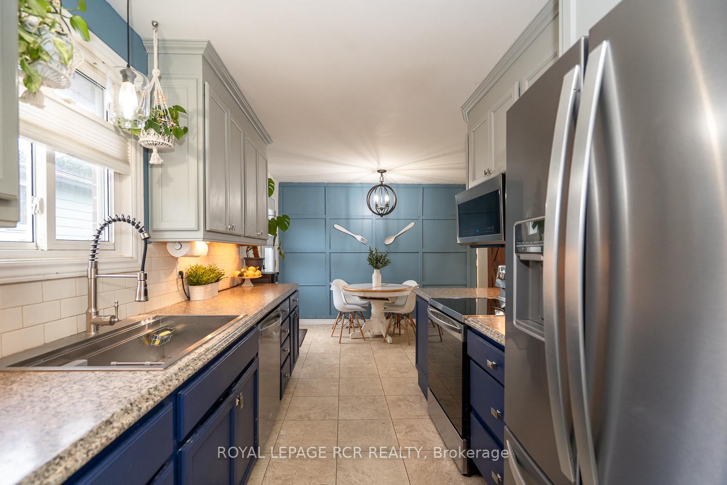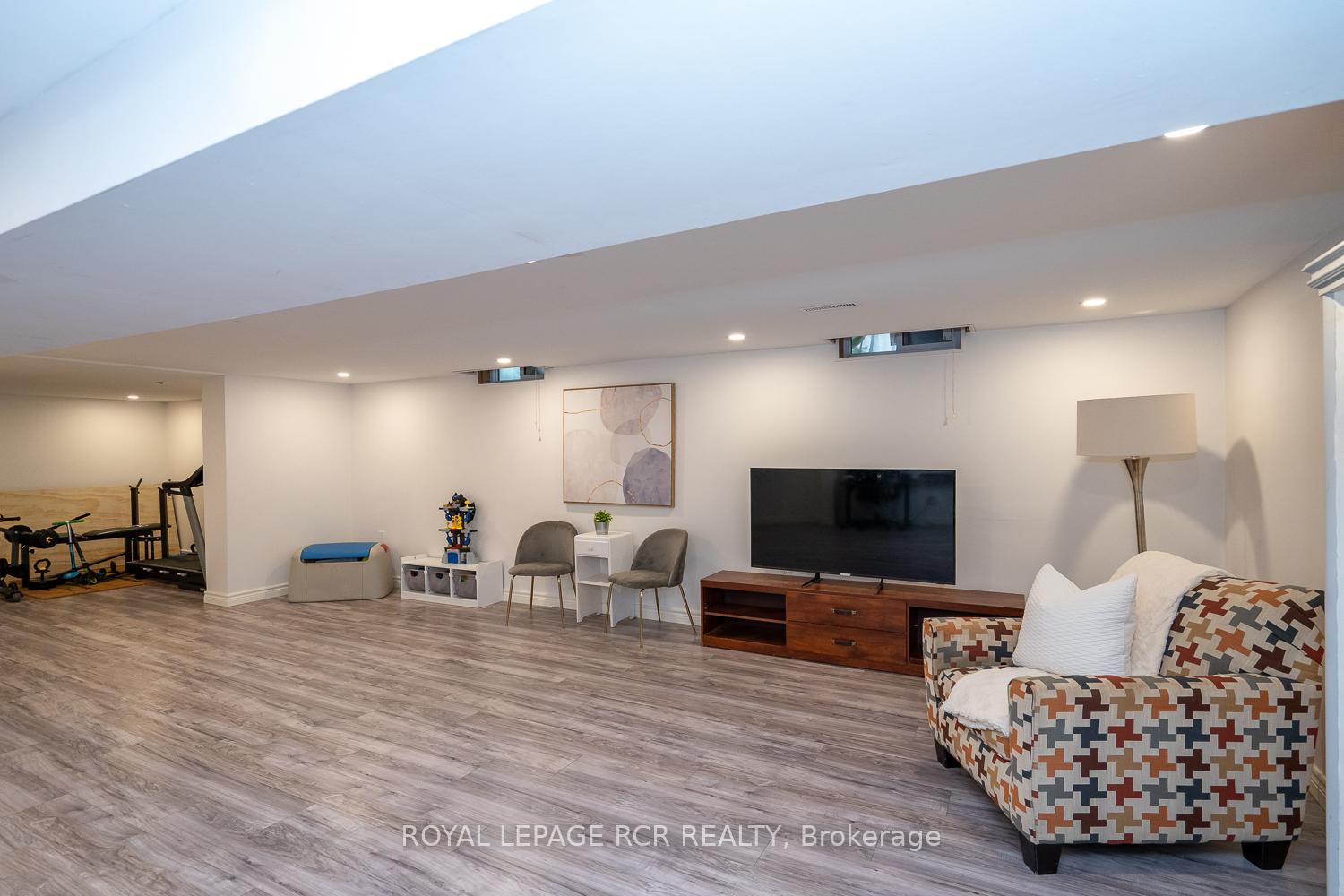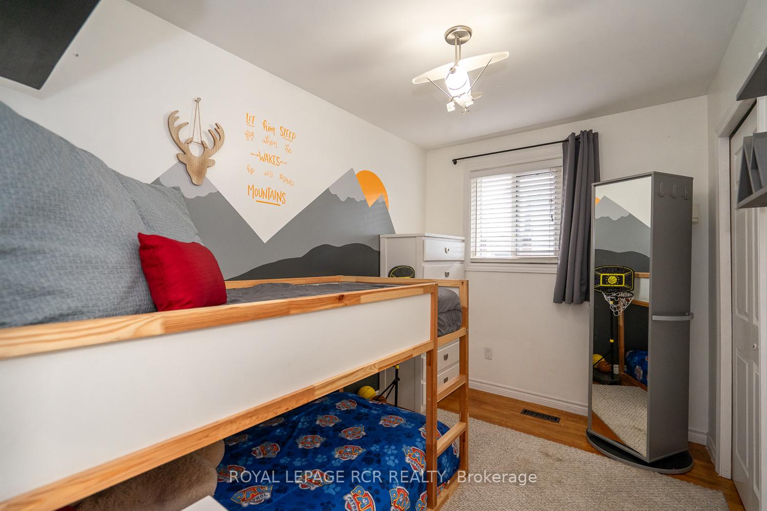3+1 bedroom, 2 bath semi-detached home on a large 120′ deep matured treed lot. The main level features a bright eat-in kitchen with a beautiful sliding barn door accent, lots of cupboard and counter space plus side walkout to the large fenced yard. Living/Dining area, 3 bedrooms & main bath with updated vanity. The finished lower level adds tons more living space offering a large Family Room, Exercise/Play area, 4 bedroom/office & beautiful 3pc bath with glass walk-in shower. Carpet free home with hardwood flooring on main level & laminate plank thru-out lower level. Other updates incl: new paved driveway (2025), new front window (approx 4 yrs), bsmt reno and bsmt bath redone (approx 5 yrs)