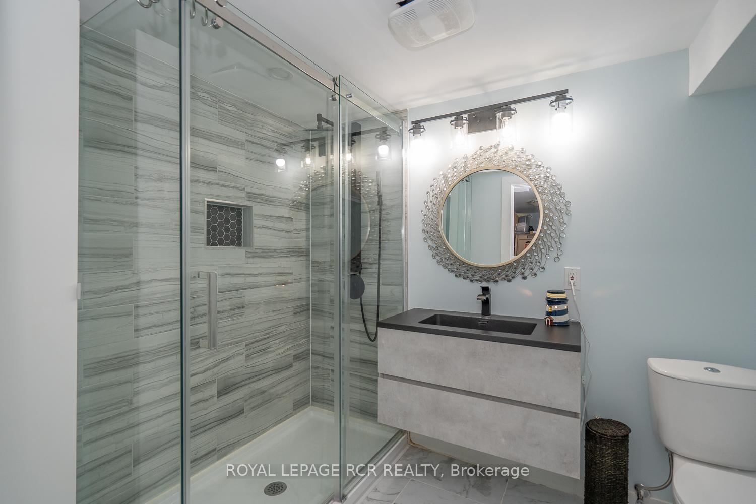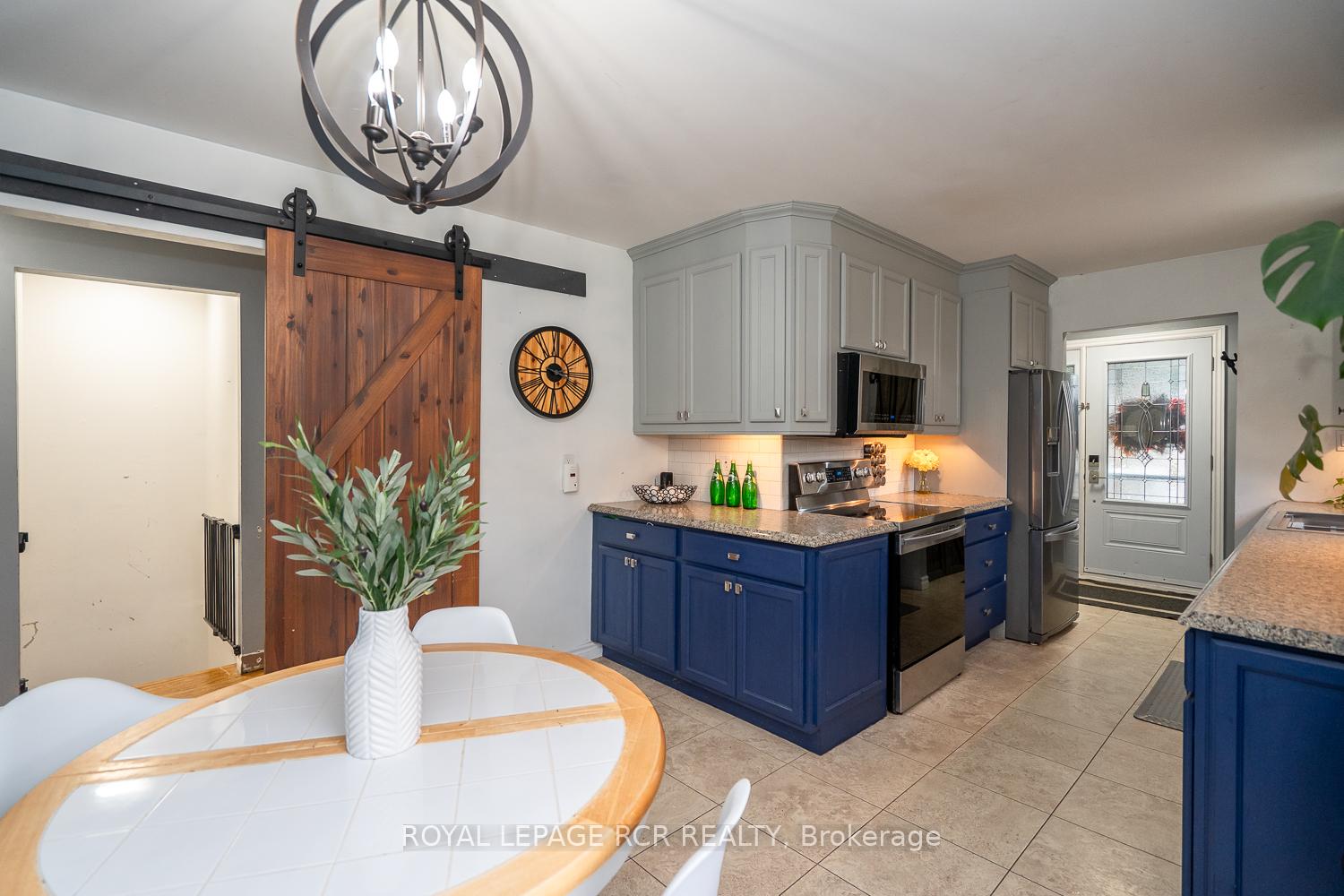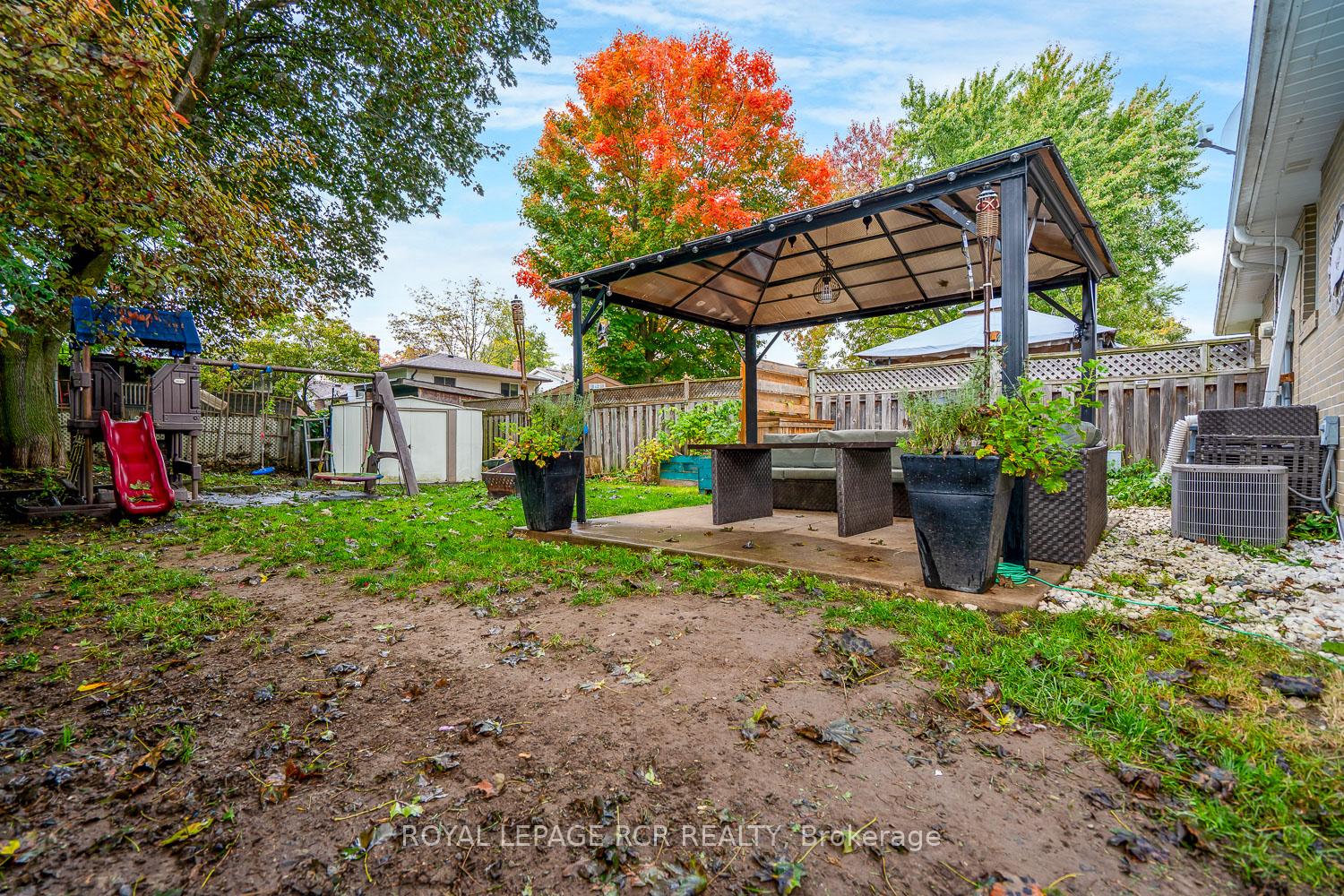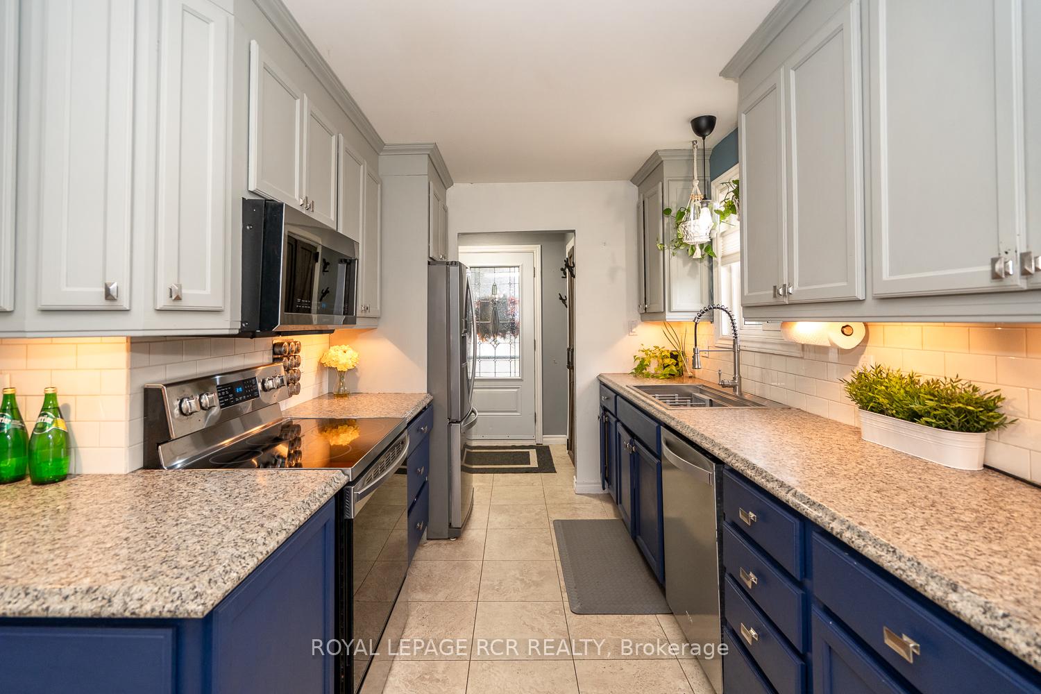 3+1 bedroom, 2 bath semi-detached home on a large 120′ deep matured treed lot. The main level features a bright eat-in kitchen with a beautiful sliding barn door accent, lots of cupboard and counter space plus side walkout to the large fenced yard. Living/Dining area, 3 bedrooms & main bath with updated vanity. The finished lower level adds tons more living space offering a large Family Room, Exercise/Play area, 4 bedroom/office & beautiful 3pc bath with glass walk-in shower. Carpet free home with hardwood flooring on main level & laminate plank thru-out lower level. Other updates incl: new paved driveway (2025), new front window (approx 4 yrs), bsmt reno and bsmt bath redone (approx 5 yrs)