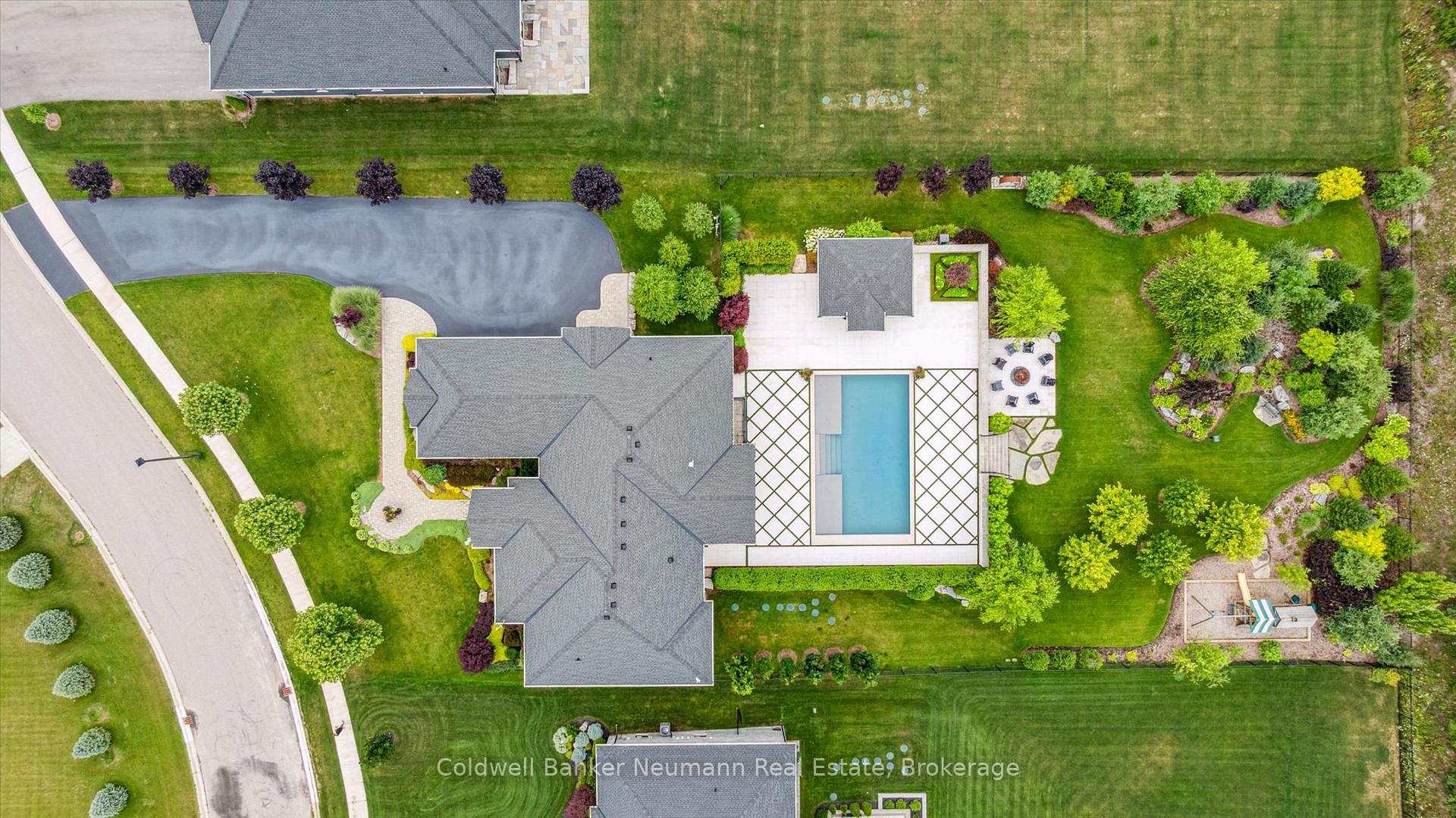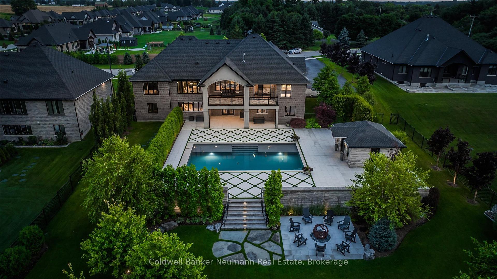 Welcome to 14 Inverhill Road, an exceptional bungalow offering over 5,000 squarefeet of thoughtfully designed living space in the prestigious Swan Creek Estates.This remarkable home sits proudly on an award-winning, fully landscaped and fencedlot just under an acre.Originally the model home by Gemini Homes, no detail was overlooked. The grandfront entrance opens to soaring vaulted ceilings and expansive windows, flooding thehome with natural light and framing beautifully private views. The living room, anchoredby a statement fireplace, serves as an elegant yet inviting focal point.The open-concept kitchen is designed for both everyday living and entertaining,featuring an oversized island, custom cabinetry, high-end appliances, and a butler’spantry. Adjacent are a casual breakfast area overlooking the backyard and a formaldining room ideal for hosting.The bedroom quarters are thoughtfully positioned for maximum privacy. The primarysuite occupies its own wing, complete with a walk-in closet, a luxurious five-pieceensuite, and access to a private balcony. The opposite wing offers two generously sizedbedrooms sharing a well-appointed four-piece bathroom.The fully finished lower level has heated, polished floors and includes a bar area,spacious living room, two additional bedrooms, and a dedicated home gym.Outdoors, enjoy a year-round pool designed for all seasons. The pool house featuresa cedar-finished interior, two change rooms, and an outdoor shower. An artfullydesigned fire pit provides the perfect setting for memorable gatherings throughout theyear.For those seeking a home where friends and family naturally come together, 14Inverhill Road delivers an unparalleled lifestyle.