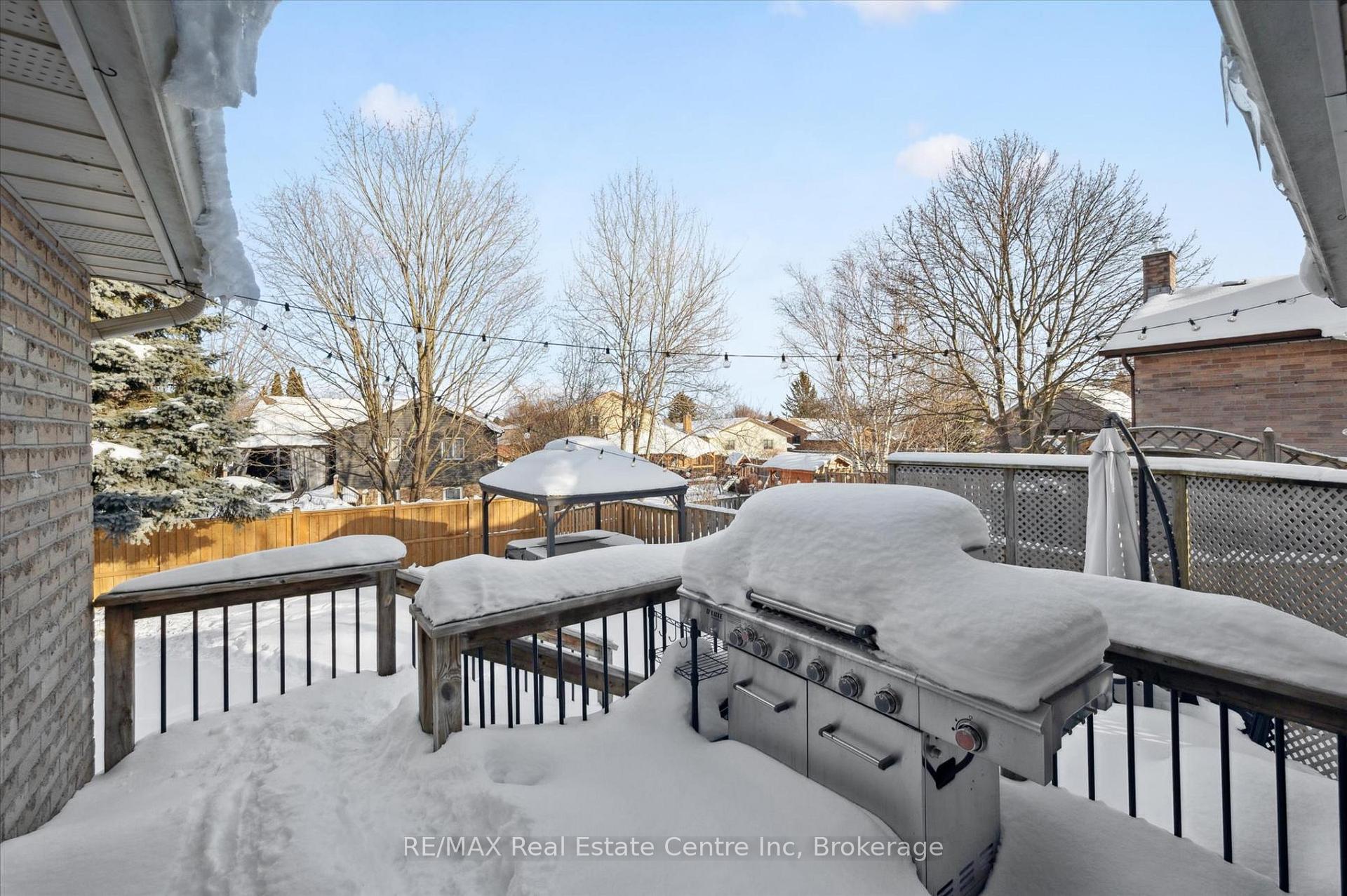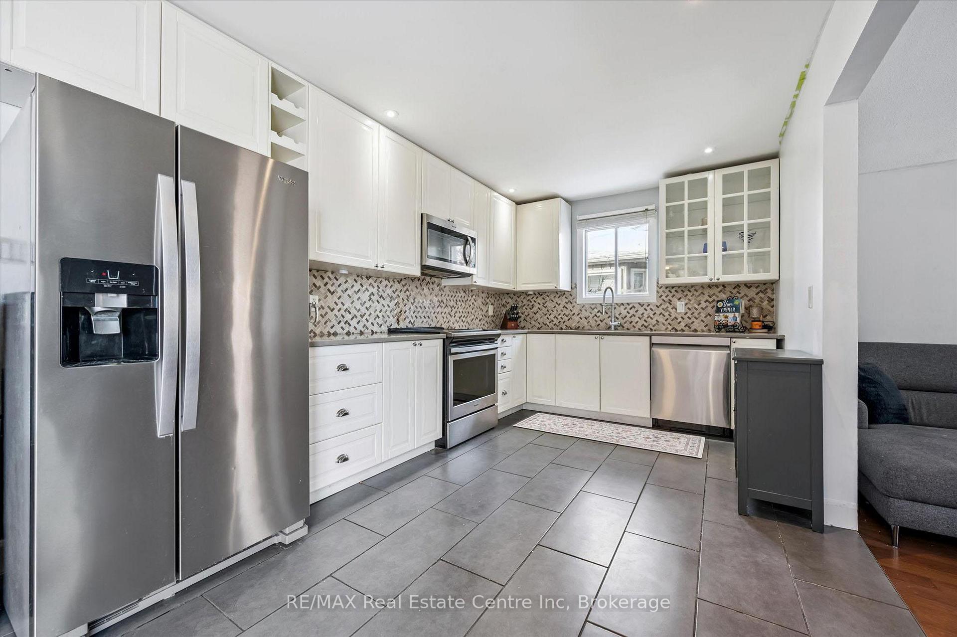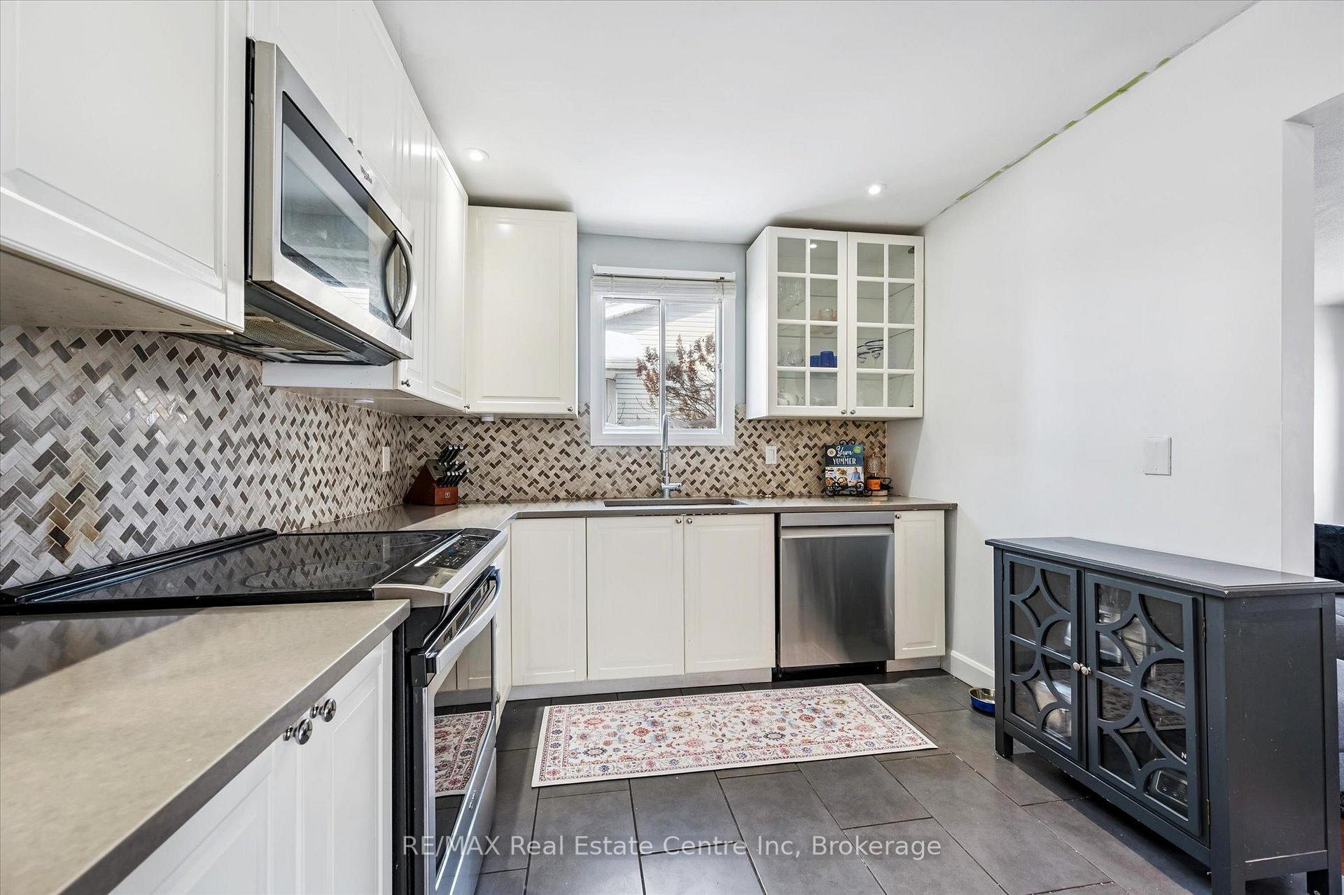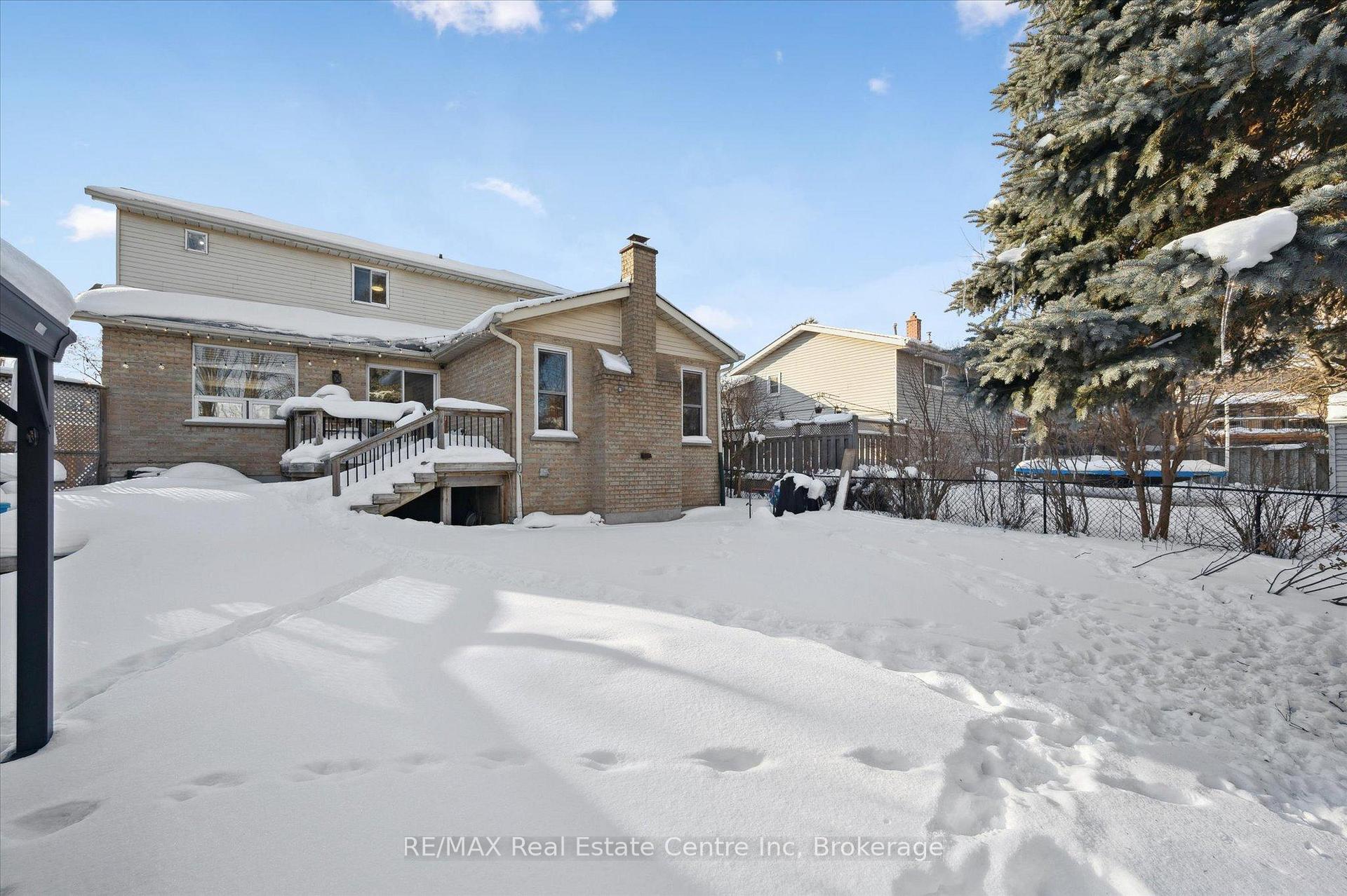 14 Pipers Green Crt is a fantastic 3-bdrm family home tucked away on quiet court in one of Kitchener’s most sought-after family-friendly neighbourhoods! Situated on generous 50 X 115ft lot this home offers exceptional space, privacy & lifestyle appeal, all within mins of schools, parks, shopping & major hwys. Step inside to bright & spacious living/dining area W/laminate floors & large windows that flood space W/natural light. Eat-in kitchen has been tastefully updated W/white cabinetry with B/I wine rack, quartz counters, oversized tile floors, chic backsplash & S/S appliances, offering ample storage & prep space. Dinette features sliding doors that open directly to backyard seamlessly blending indoor & outdoor living. Inviting family room has cozy fireplace W/dramatic floor-to-ceiling brick mantel flanked by windows that frame the peaceful views. This space offers a warm & welcoming atmosphere to relax & unwind. Main level is completed by modern 2pc bath & laundry. Upstairs you’ll find 3 bdrms all W/hardwood floors, large windows & ample closet space. Updated 4pc main bath W/modern vanity & tiled shower/tub combo providing both style & function for busy family life. Fully renovated bsmt completed last year, adds versatility to the home W/wide vinyl plank floors, spacious rec area & add’l bonus room that would make excellent office, gym or playroom. There is R/I for a 3/4pc bath making it ideal for extended family & guests. The backyard offers a true private retreat! Enjoy evenings on expansive deck overlooking a lush treed yard, complete W/private gazebo & hot tub. With ample greenspace for kids & pets to play this space is both peaceful & practical. Steps from trail access leading directly to Rittenhouse Park, Countryside Park & schools incl. Blessed Sacrament Catholic Elementary School, Cardinal-Léger Catholic Elementary School & Glencairn PS. Quick access to shopping centres, grocery stores, fitness, restaurants & commuter routes including Hwy 7, Hwy 8 & 401!