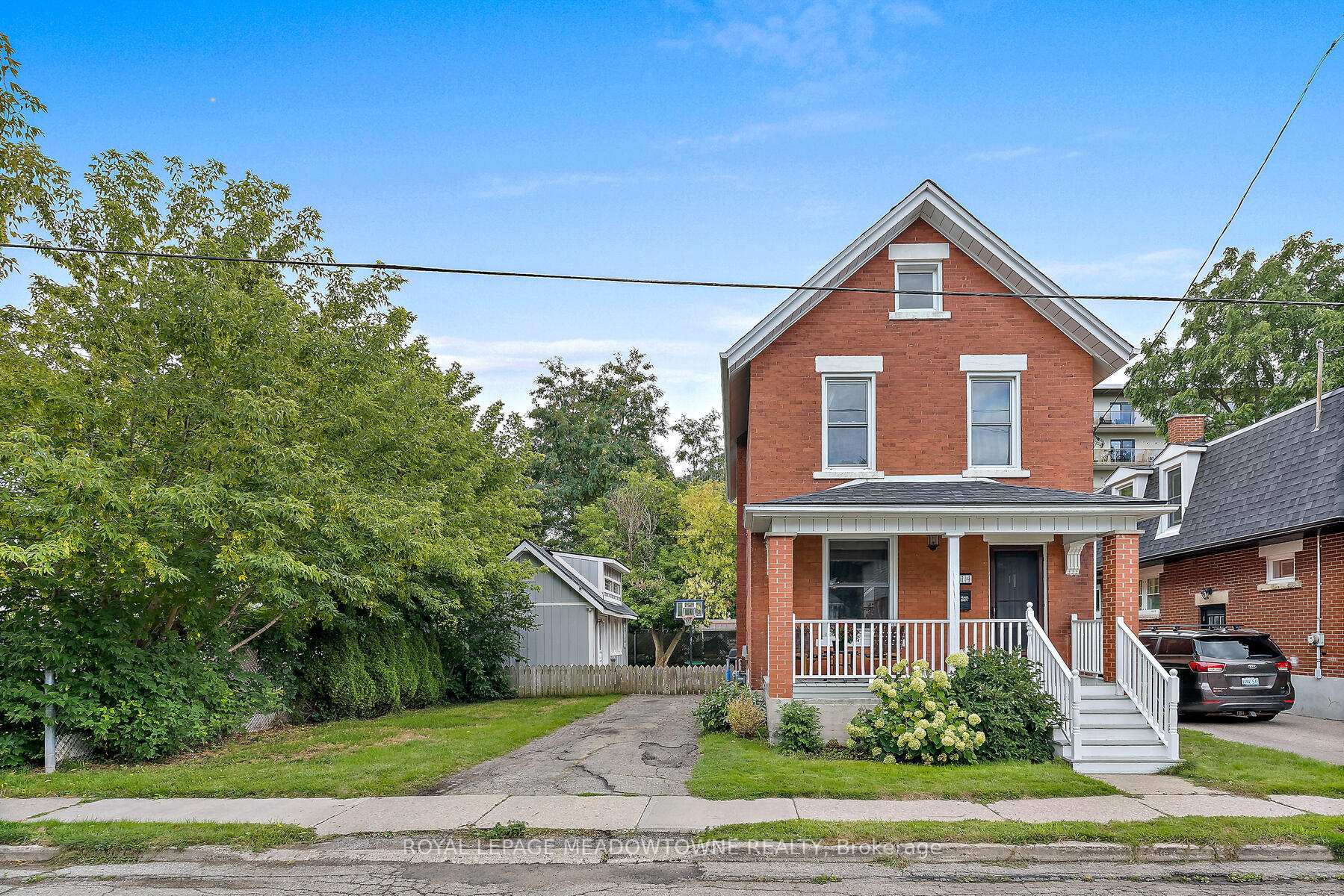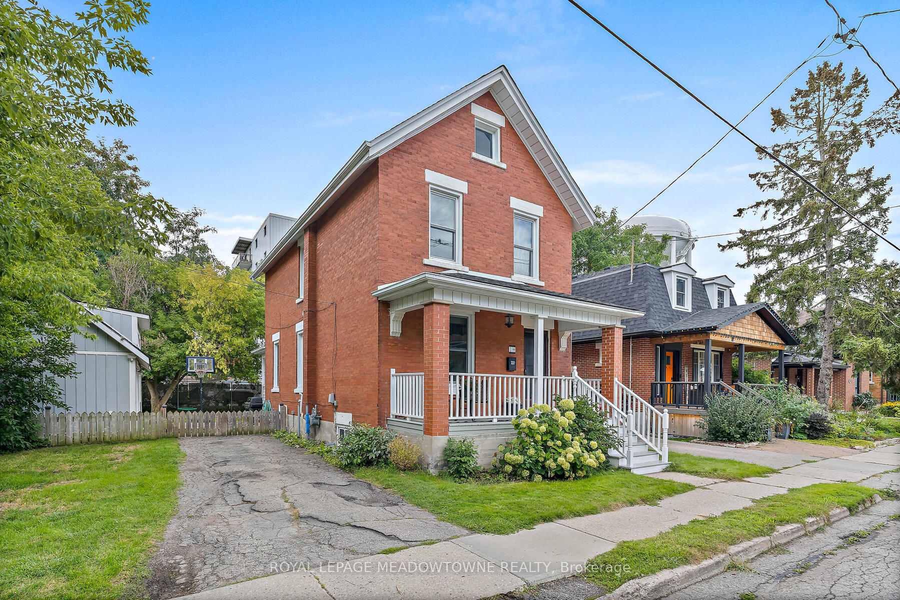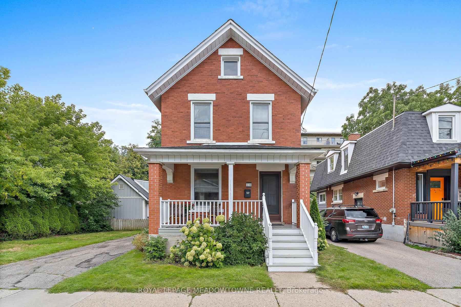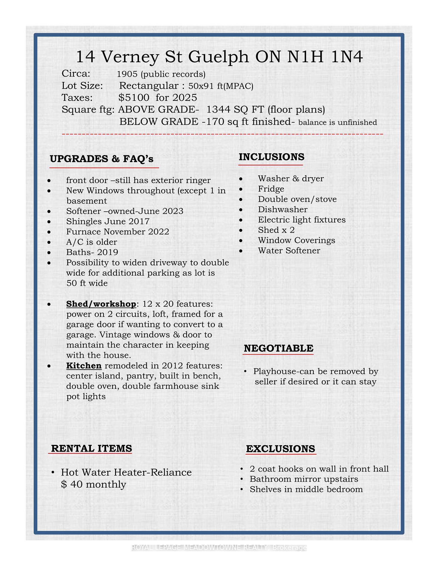 Exhibition Park is a Historic and coveted neighbourhood where Location = Lifestyle! Steps to Exhibition park and in the Victory School catchment. Enjoy short walk or bike to Riverside park or Downtown shops/dining& nearby trails along the Speed River. This is your chance to be a part of this charming & welcoming community. Big in heart & history. Charming home (with workshop) features high ceilings, beautiful trim, baseboards, oak hardwood on main and pine upstairs. New doors and handles. Windows through-out have been replaced. Kitchen with island, farmhouse sink & island installed in 2012 is now the hub of the home with centre island & open concept floor plan. So much storage is provided by the long pantry wall . Special care was made with consideration to provide character in keeping with the home. The 50 ft lot and 3 car parking are unique to the street. With it’s extra width; there is potential to widen the driveway even further for additonal parking. Private yard for play and entertaining. The oversized 12×20 WORKSHOP with loft and power 2018( same size as a single car garage!) Note: it has been framed to add a garage door if desired to convert to a garage. 100 amp panel 2003, high efficiency furnace Nov 2022 , bathrooms renovated in 2019, shingles June 2017, softener owned-June 2023, The basement has been partially fiinished offering a recreational space for play/ TV/Office opportunity. Look no further than 14 Verney to start your next chapter.
