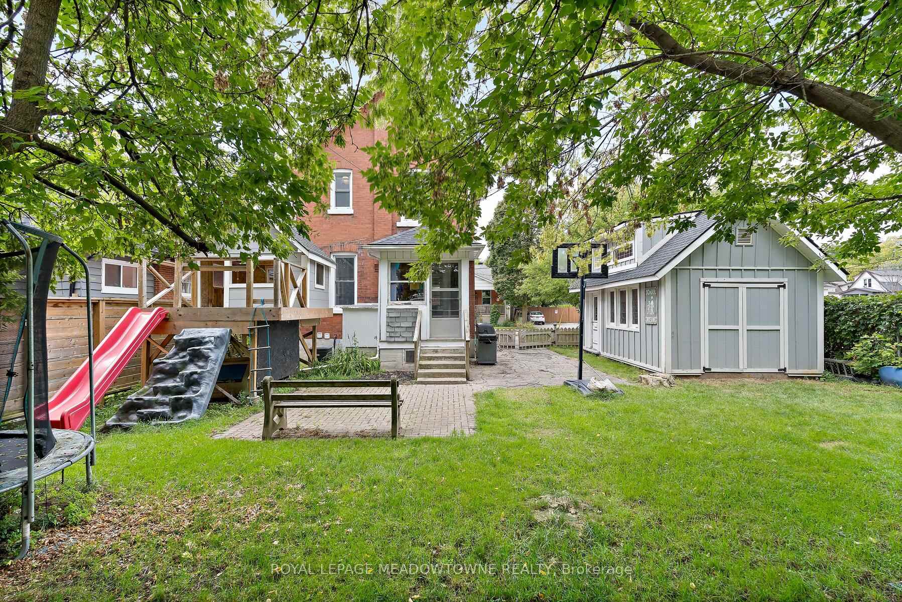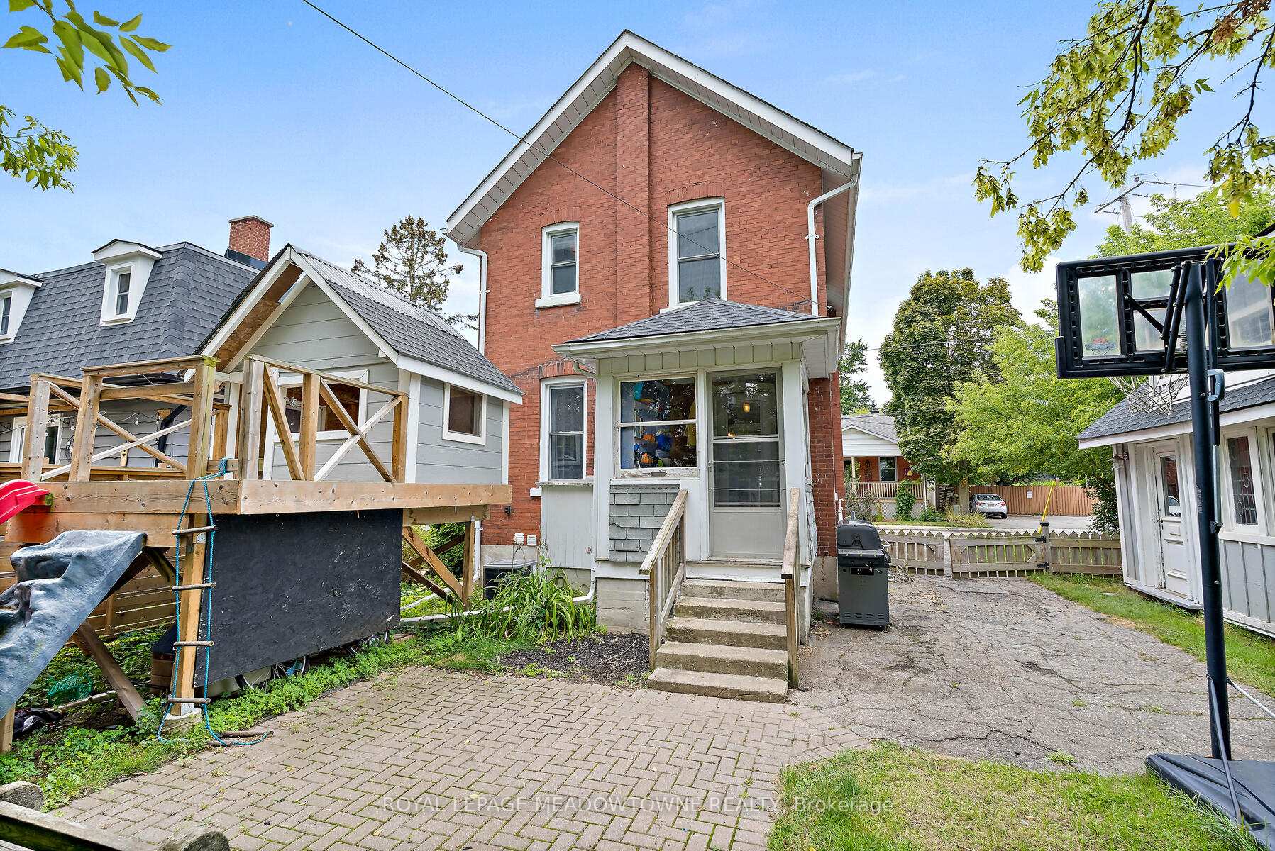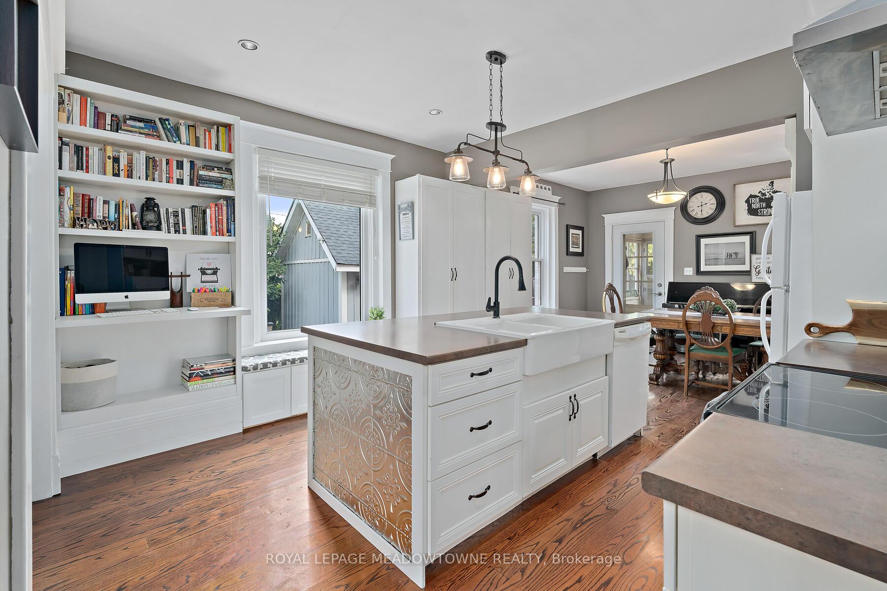 Exhibition Park is a Historic and coveted neighbourhood where Location = Lifestyle! Steps to Exhibition park and in the Victory School catchment. Enjoy short walk or bike to Riverside park or Downtown shops/dining& nearby trails along the Speed River. This is your chance to be a part of this charming & welcoming community. Big in heart & history. Charming home (with workshop) features high ceilings, beautiful trim, baseboards, oak hardwood on main and pine upstairs. New doors and handles. Windows through-out have been replaced. Kitchen with island, farmhouse sink & island installed in 2012 is now the hub of the home with centre island & open concept floor plan. So much storage is provided by the long pantry wall . Special care was made with consideration to provide character in keeping with the home. The 50 ft lot and 3 car parking are unique to the street. With it’s extra width; there is potential to widen the driveway even further for additonal parking. Private yard for play and entertaining. The oversized 12×20 WORKSHOP with loft and power 2018( same size as a single car garage!) Note: it has been framed to add a garage door if desired to convert to a garage. 100 amp panel 2003, high efficiency furnace Nov 2022 , bathrooms renovated in 2019, shingles June 2017, softener owned-June 2023, The basement has been partially fiinished offering a recreational space for play/ TV/Office opportunity. Look no further than 14 Verney to start your next chapter.