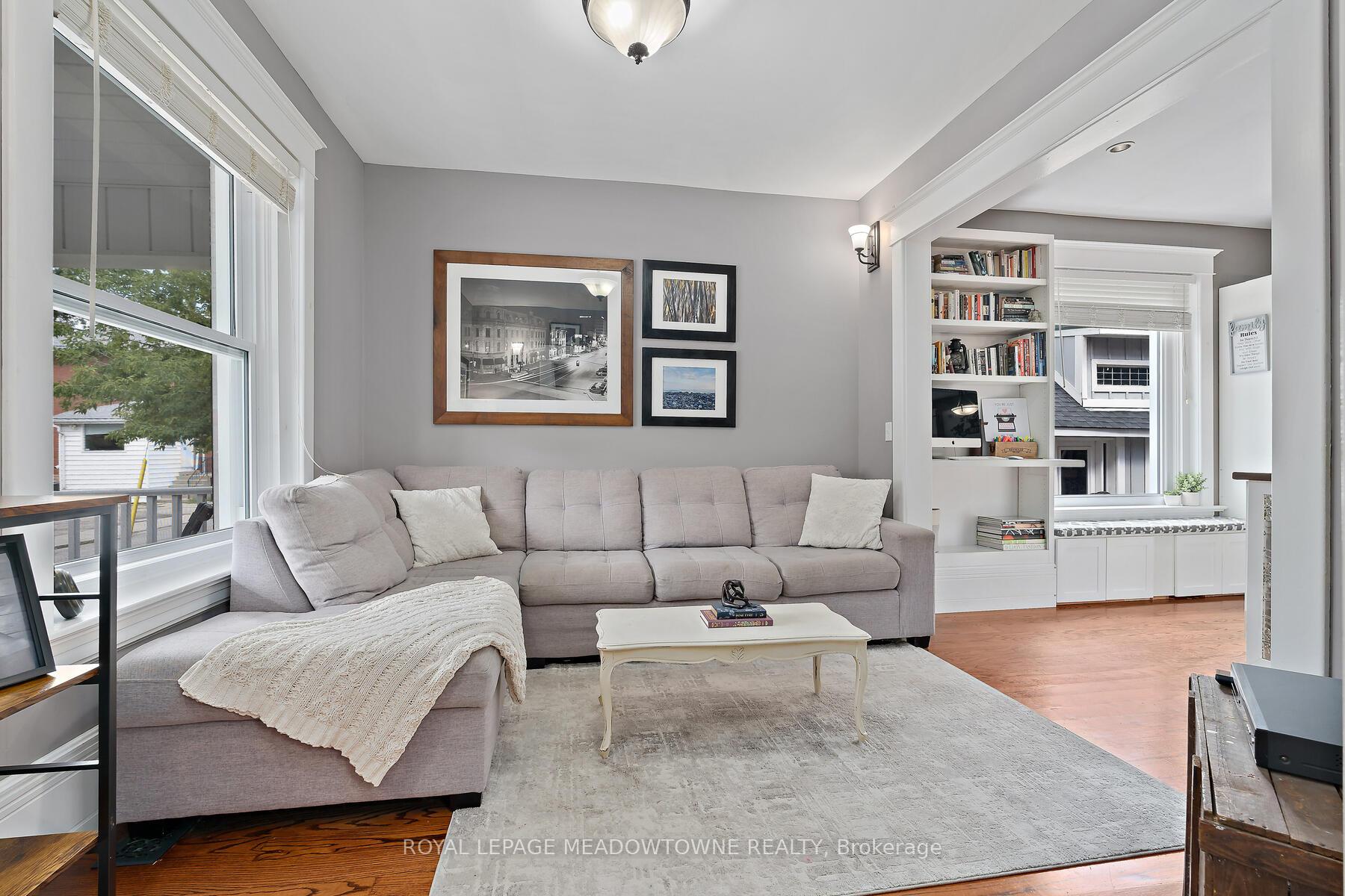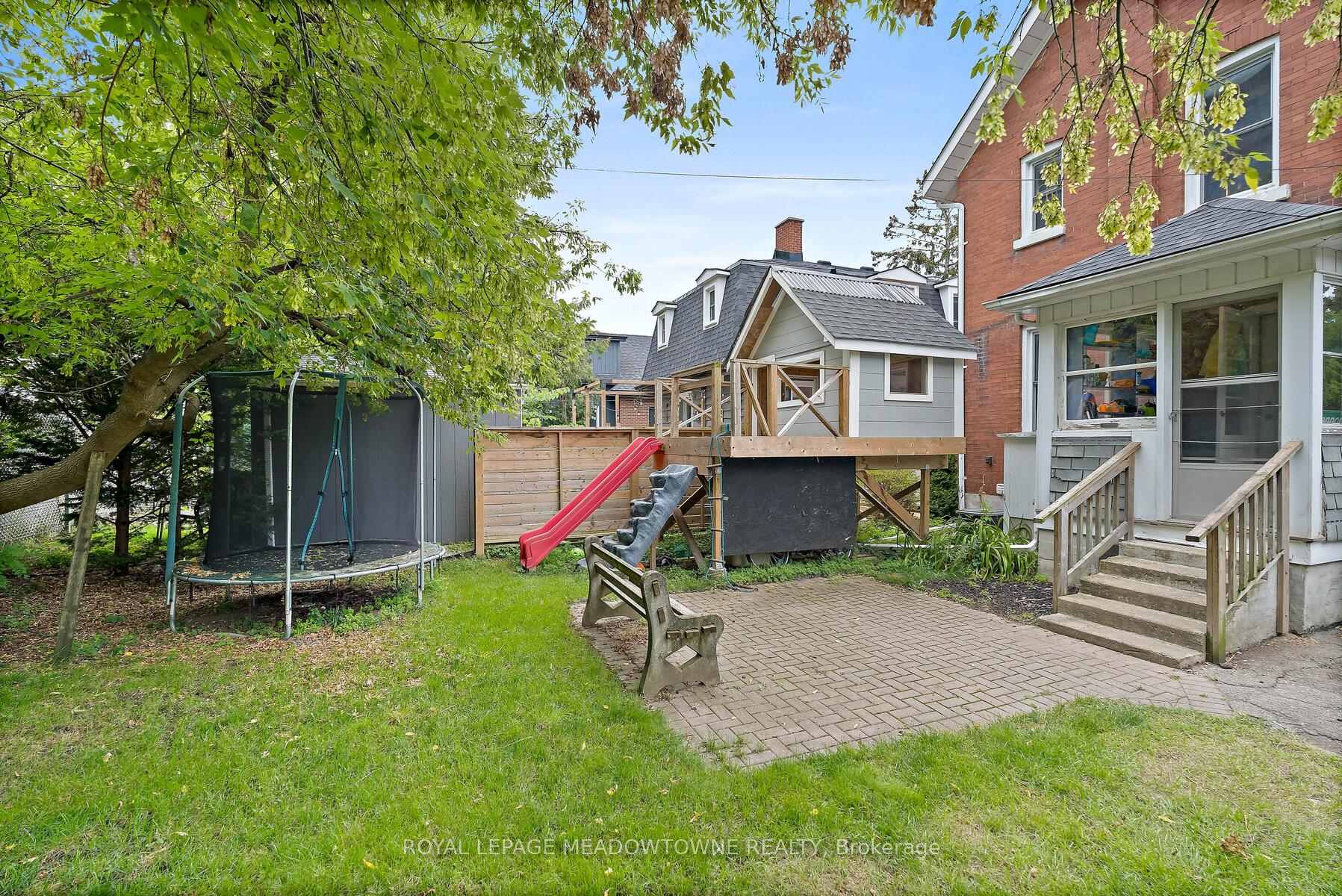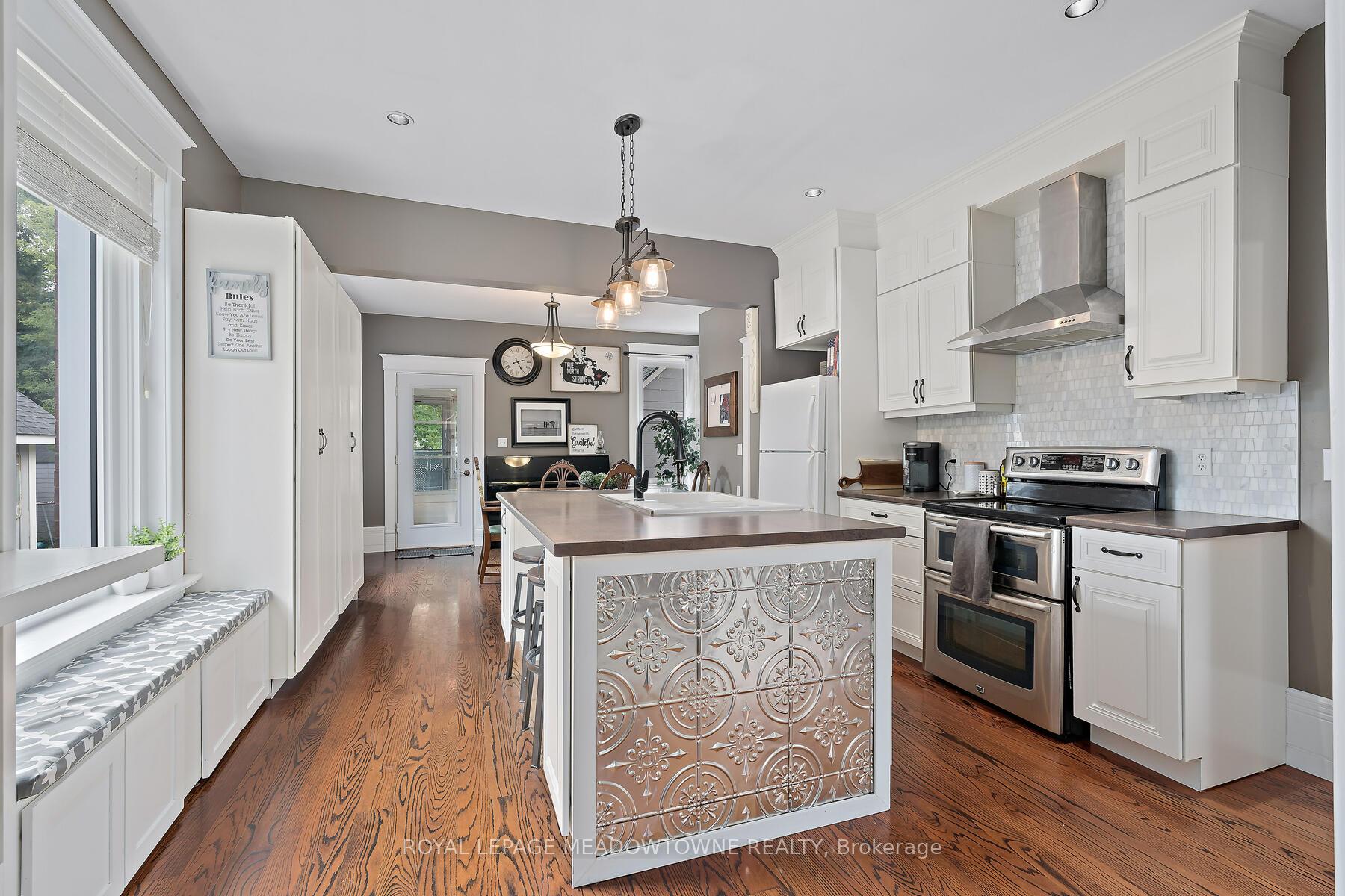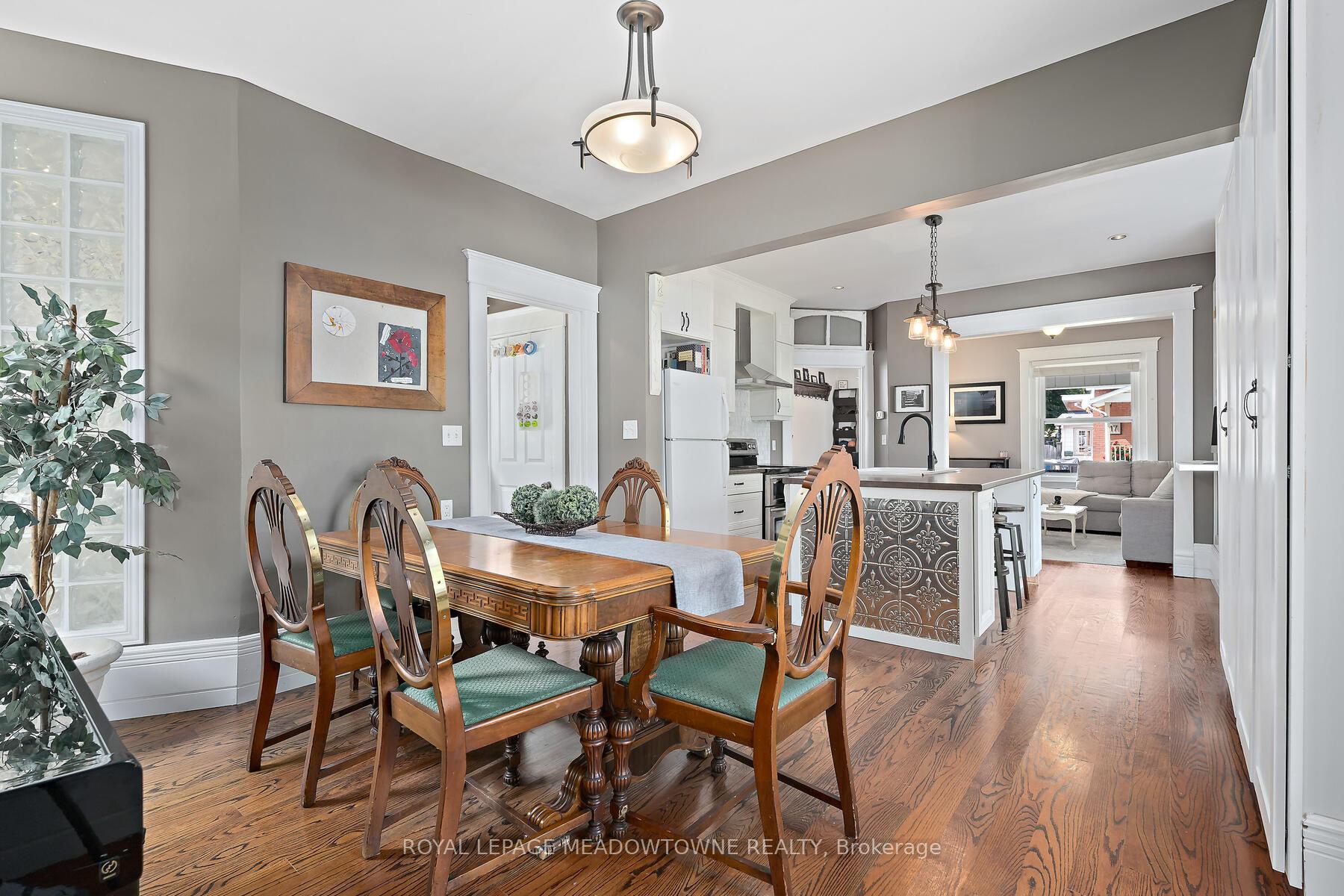 Exhibition Park is a Historic and coveted neighbourhood where Location = Lifestyle! Steps to Exhibition park and in the Victory School catchment. Enjoy short walk or bike to Riverside park or Downtown shops/dining& nearby trails along the Speed River. This is your chance to be a part of this charming & welcoming community. Big in heart & history. Charming home (with workshop) features high ceilings, beautiful trim, baseboards, oak hardwood on main and pine upstairs. New doors and handles. Windows through-out have been replaced. Kitchen with island, farmhouse sink & island installed in 2012 is now the hub of the home with centre island & open concept floor plan. So much storage is provided by the long pantry wall . Special care was made with consideration to provide character in keeping with the home. The 50 ft lot and 3 car parking are unique to the street. With it’s extra width; there is potential to widen the driveway even further for additonal parking. Private yard for play and entertaining. The oversized 12×20 WORKSHOP with loft and power 2018( same size as a single car garage!) Note: it has been framed to add a garage door if desired to convert to a garage. 100 amp panel 2003, high efficiency furnace Nov 2022 , bathrooms renovated in 2019, shingles June 2017, softener owned-June 2023, The basement has been partially fiinished offering a recreational space for play/ TV/Office opportunity. Look no further than 14 Verney to start your next chapter.