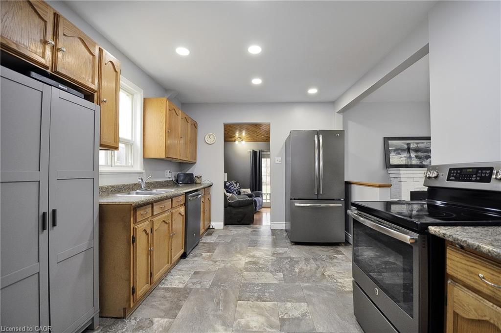 Discover this beautifully maintained two-storey home in one of West Galt’s most desirable neighbourhoods. Perfectly located just minutes from Highway 401 and close to schools, parks, and shopping, this property is ideal for both commuters and growing families. A stylish composite-covered front porch (2022) sets the tone before stepping inside. The main floor offers a formal dining room for special gatherings, a bright and welcoming living room, and a spacious kitchen that seamlessly flows into a stunning family room with soaring ceilings. French doors open to a large, fully fenced backyard — the perfect setting for summer barbecues, entertaining, or simply enjoying your own private retreat. Upstairs, you’ll find three generously sized bedrooms, including a comfortable primary with ample closet space, plus a modern 4-piece bath. The finished lower level adds even more versatility with a convenient 2-piece bath and laundry area. Recent upgrades include a newer furnace and A/C (2018), upgraded insulation, and the custom porch, giving you comfort, efficiency, and peace of mind. This home combines charm, space, and thoughtful updates in a fantastic West Galt location. Don’t miss your chance to make it yours!