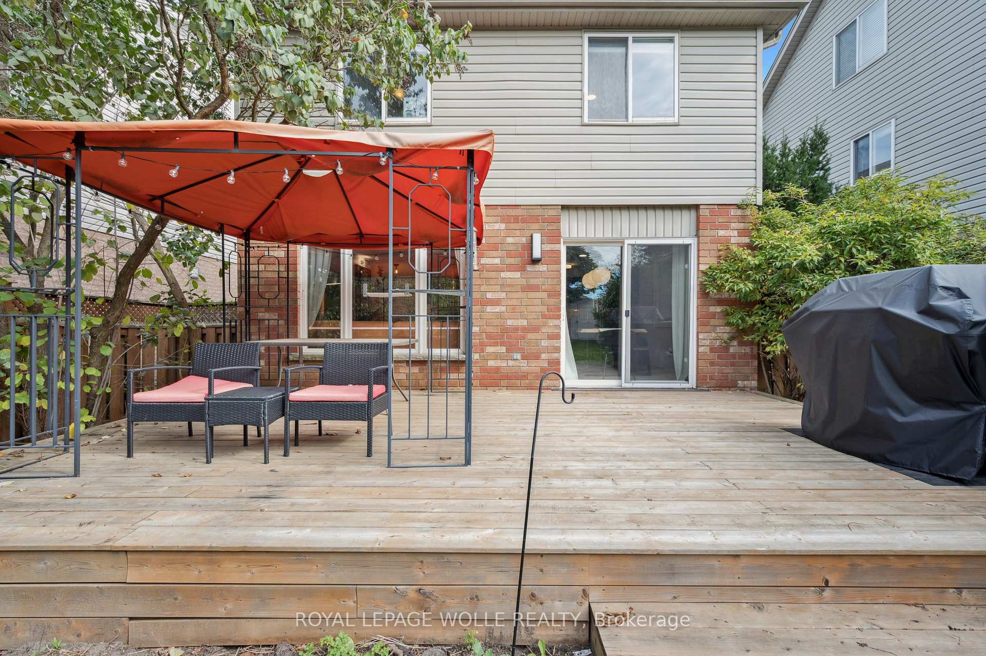 Welcome to 140 Veronica Drive. This BEAUTIFULLY UPDATED 3-bedroom, 2-bathroom family home perfectly blends comfort, style, and functionality in a PRIME LOCATION. The main floor is warm and inviting, featuring an UPGRADED KITCHEN with elegant display accents, crown molding, under-valence lighting, tile backsplash, and STONE COUNTERTOPS. The kitchen is complete with newer stainless-steel appliances, including a Bosch dishwasher (2025) and Samsung fridge (2023). The spacious dining area offers plenty of room for family gatherings and leads to the backyard through sliding doors, enhanced by new light fixtures (2025). The main floor also includes an updated powder room and a bright family room with updated flooring. Upstairs you’ll find THREE GENEROUS BEDROOMS, a convenient upper-level laundry, and a stunning 5-piece bathroom (updated in 2021) showcasing an OVERSIZED GLASS SHOWER, relaxing SOAKER TUB, and DOUBLE-SINK VANITY with a cheater door to the primary bedroom. The primary bedroom impresses with a DOUBLE-DOOR ENTRY, oversized windows flooding the space with light, and a LARGE WALK-IN CLOSET. Step outside to your PRIVATE BACKYARD, complete with a SPACIOUS DECK (2021), and full fencing for privacy-ideal for entertaining or relaxing outdoors. The double-wide driveway and large 1.5-car garage with AUTOMATIC OPENER and inside entry provide ample space for parking and storage. Additional updates include a water softener system (2022), and brand new stamped concrete driveway, porch, and landscaping (2025). Imagine spending your days exploring scenic trails, skiing at Chicopee Hill, or strolling along the Grand River, all just moments from your doorstep. With quick connections to Highway 401 and the 7/8, your commute is effortlessly simplified. Every detail has een thoughtfully updated and maintained-simply move in and enjoy!