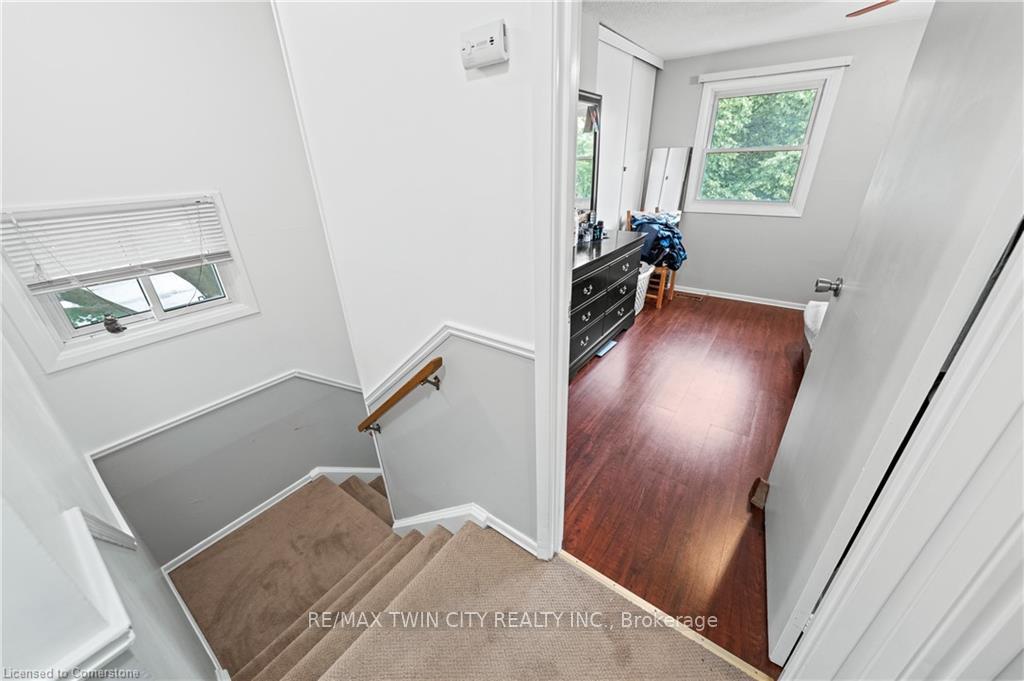 SOUGHT AFTER COURT LOCATION!! IMMEDIATE POSSESSION!! This spacious home has been freshly painted throughout and awaits its new owner. The main floor features a large foyer and and a spacious and bright living room with sliding glass doors that lead to a fully fenced yard. Eat in kitchen. The second floor does not disappoint featuring 3 spacious bedrooms with the primary bedroom featuring two large windows to let in all the natural light. Updated main bathroom with a newer porcelain tile surround. The basement adds another living room and a full 3 piece bathroom and additional storage. Parking for 3 cars in the private driveway and a custom shed for additional storage. Here is your opportunity to get on this great court location within minutes to 401, schools and all amenities.