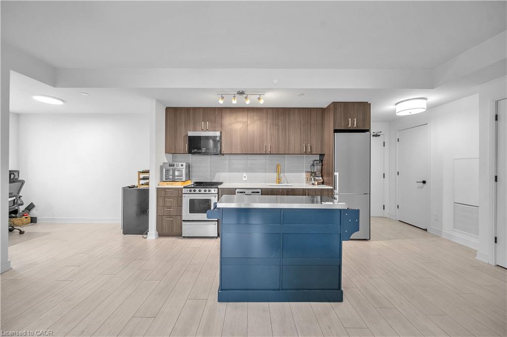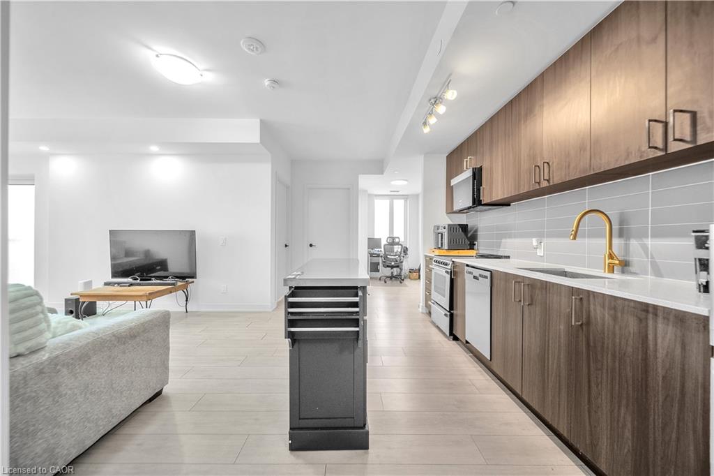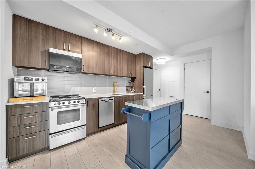 Discover modern living at Connectt Condos in Milton with this stunning one-year-old corner unit that perfectly blends style, comfort, and convenience. This bright open-concept layout features pot lights in the living area and large windows that flood the space with natural light, along with 2 spacious bedrooms plus a versatile den and 2 full 3-piece washrooms, including a private ensuite. The unit boasts a beautifully upgraded kitchen equipped with a stainless steel fridge, stove, dishwasher, and microwave/hood fan, sleek laminate flooring, and in-suite laundry. Step out onto the spacious private balcony, perfect for relaxing or enjoying scenic views of Milton. Added value includes one underground parking space and a locker. Residents also enjoy impressive common amenities, including a fully equipped gym, theatre room, game room, kids room, barbecue area, and party room. Ideally located in the heart if Milton, with easy access to transit, schools, recreation and community centres, as well as close proximity to the hospital, shopping, major highways, and the Toronto Premium Outlets, this condo offers an exceptional lifestyle and a fantastic investment opportunity.