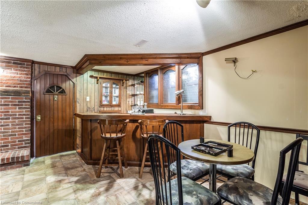 “Open – concept” living room / dining room. Some newer windows. 2 bedrooms on main floor plus main floor laundry room and 3rd bedroom on lower level. Finished large recreation room plus separate games room and bar area, workshop room. Full double garage with plenty of storage space. Parking for several vehicles.