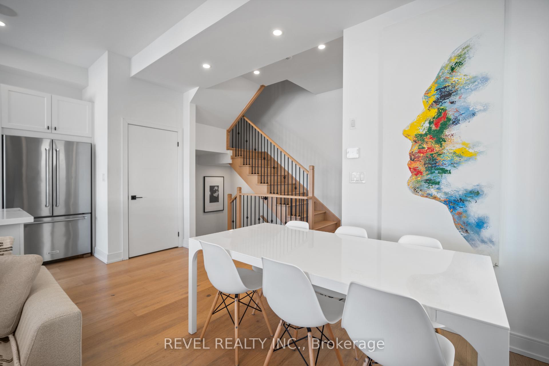 Freehold end-unit townhouse offering three stories of pristine living. This sun-drenched home features wide-plank hardwood flooring throughout and an open-concept layout designed for both comfort and style. Soaring 10-ft ceilings on the main level enhance the sense of space, while thoughtful details include custom built-in closets in every bedroom, main floor built in speakers and designer lighting throughout. This home offers three spacious bedrooms and three well-appointed bathrooms. Enjoy seamless indoor-outdoor living with a large private balcony, complete with a gas line for summer BBQs and entertaining. A truly move-in-ready residence that blends simplicity, function, and beauty in one exceptional package.