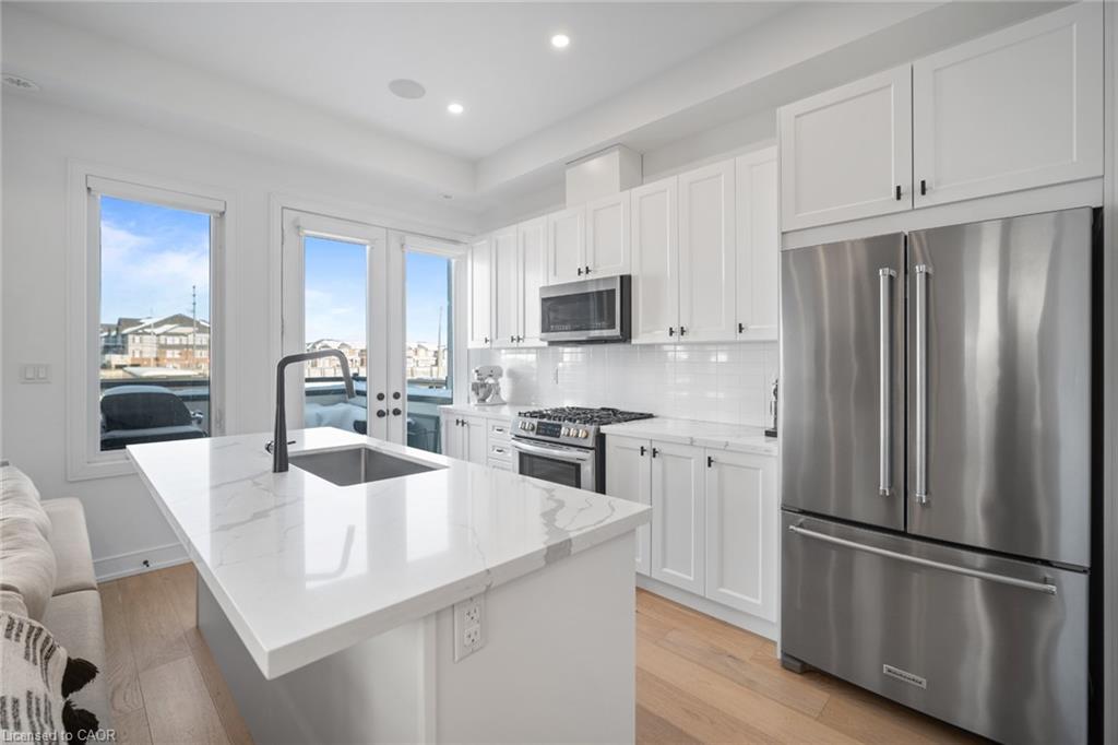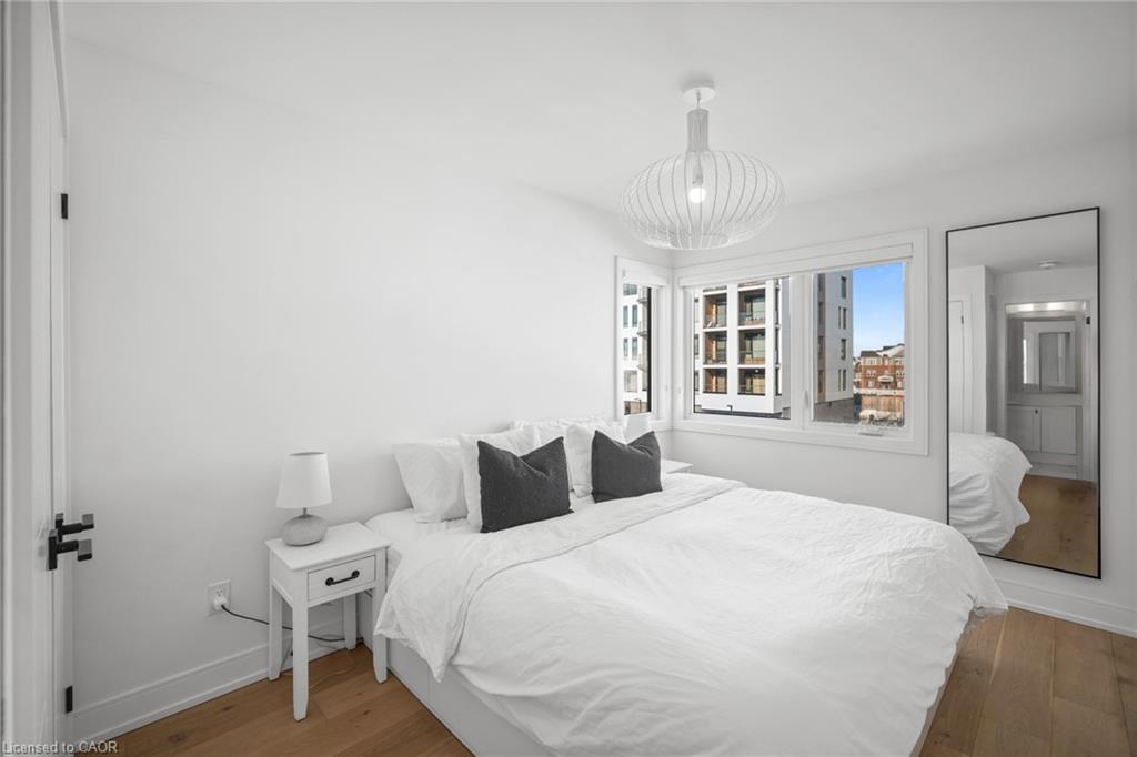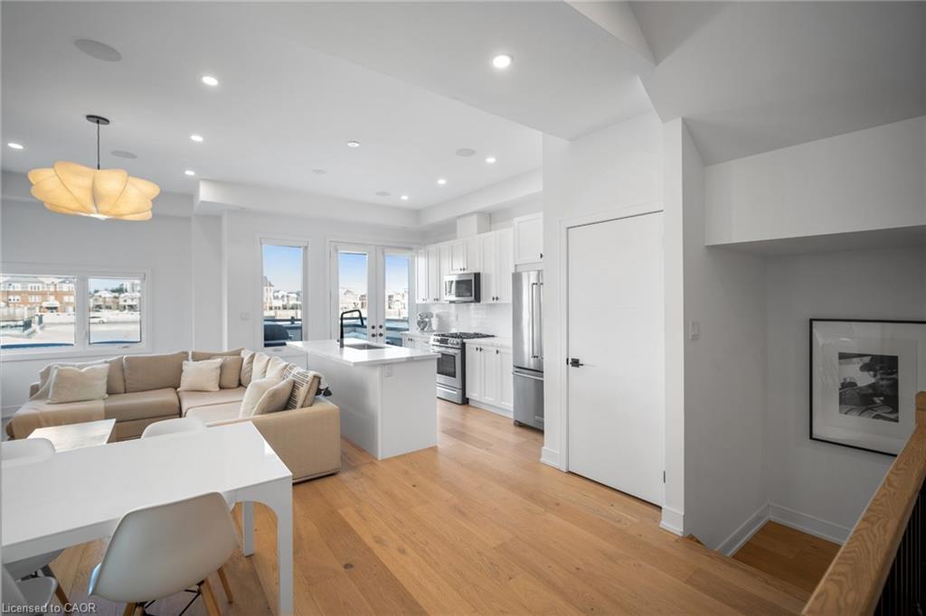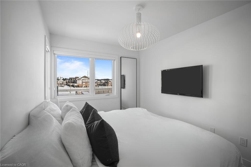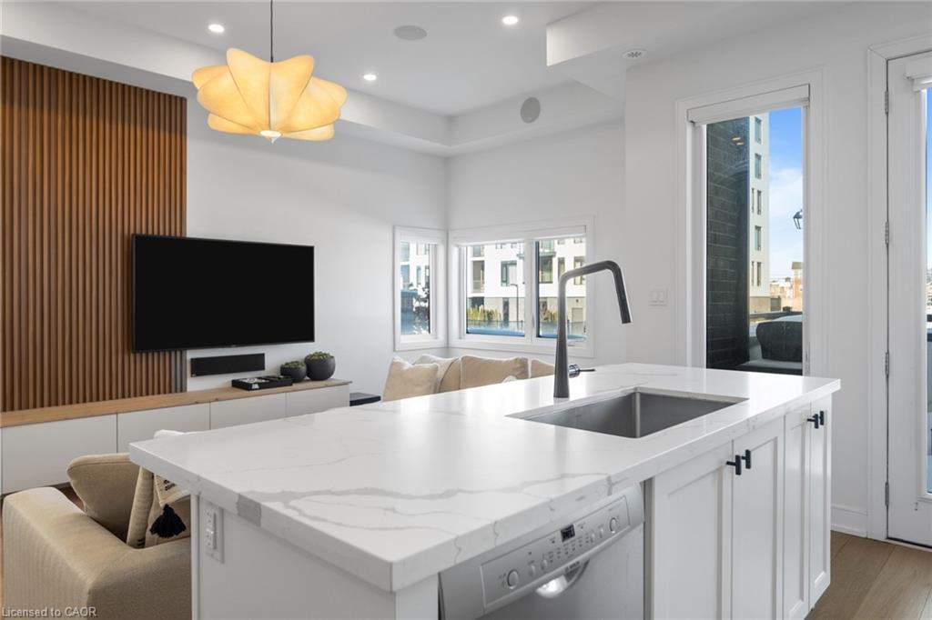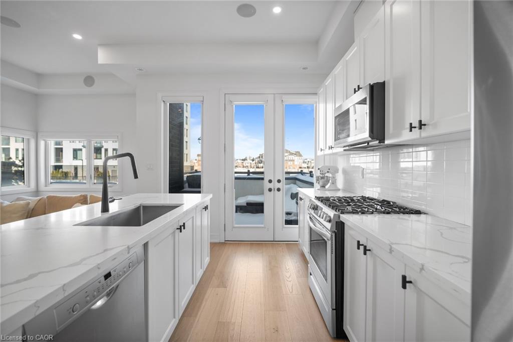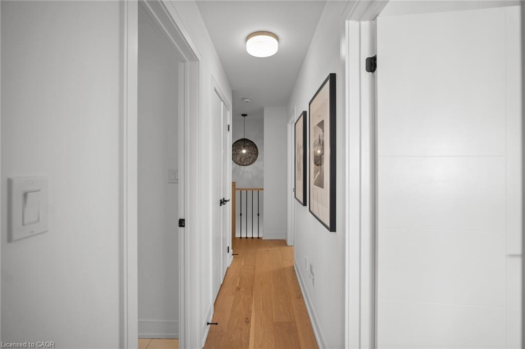 Freehold end-unit townhouse that feels like a 5 star resort as soon as you walk in! This sun-drenched home features wide-plank hardwood flooring throughout and an open-concept layout designed for both comfort and style. Soaring 10-ft ceilings on the main level enhance the sense of space, while thoughtful details include custom built-in closets in every bedroom, main floor built in speakers and designer lighting throughout. This home offers three spacious bedrooms and three well-appointed bathrooms. Enjoy seamless indoor-outdoor living with a large private balcony, complete with a gas line for summer BBQs and entertaining. A truly move-in-ready residence that blends simplicity, function, and beauty in one exceptional package.
