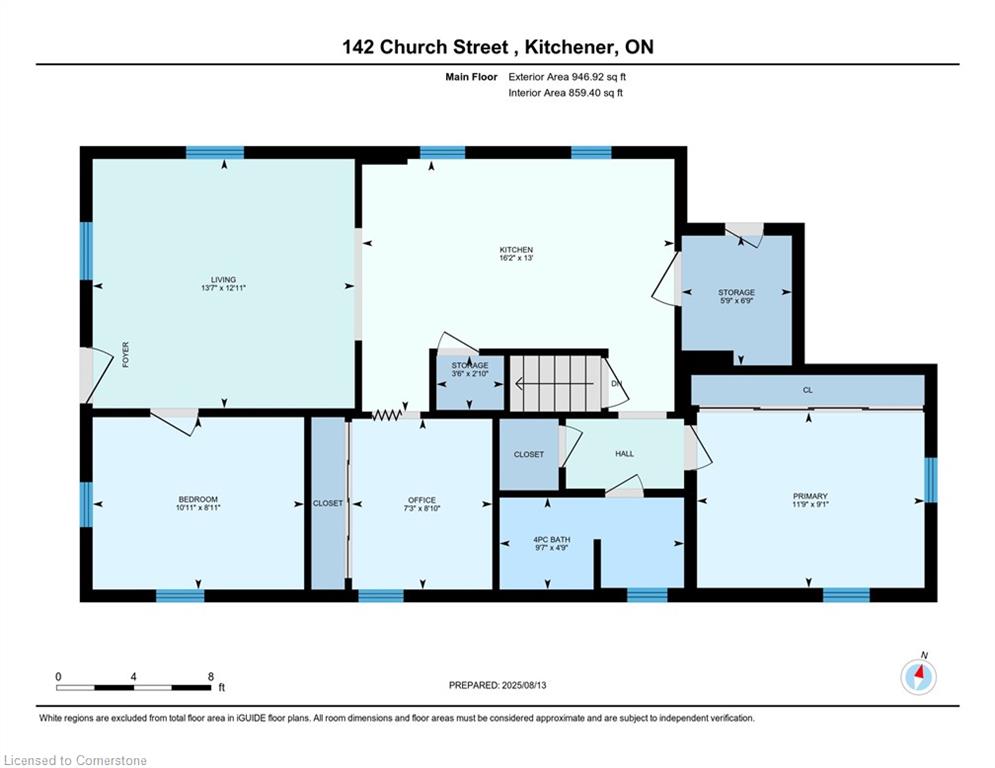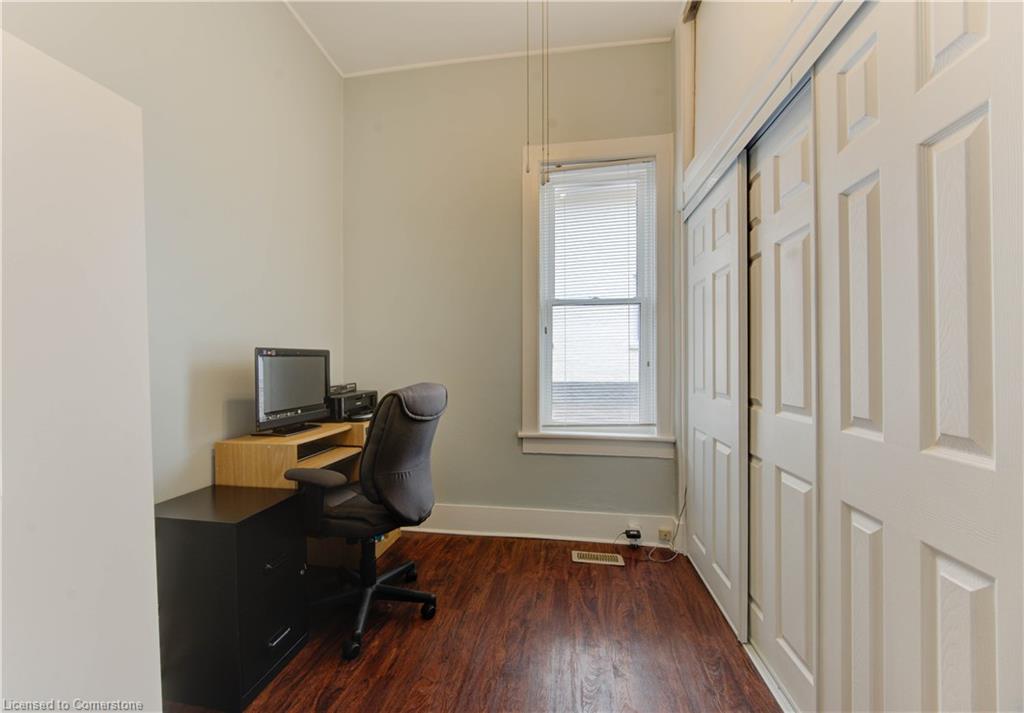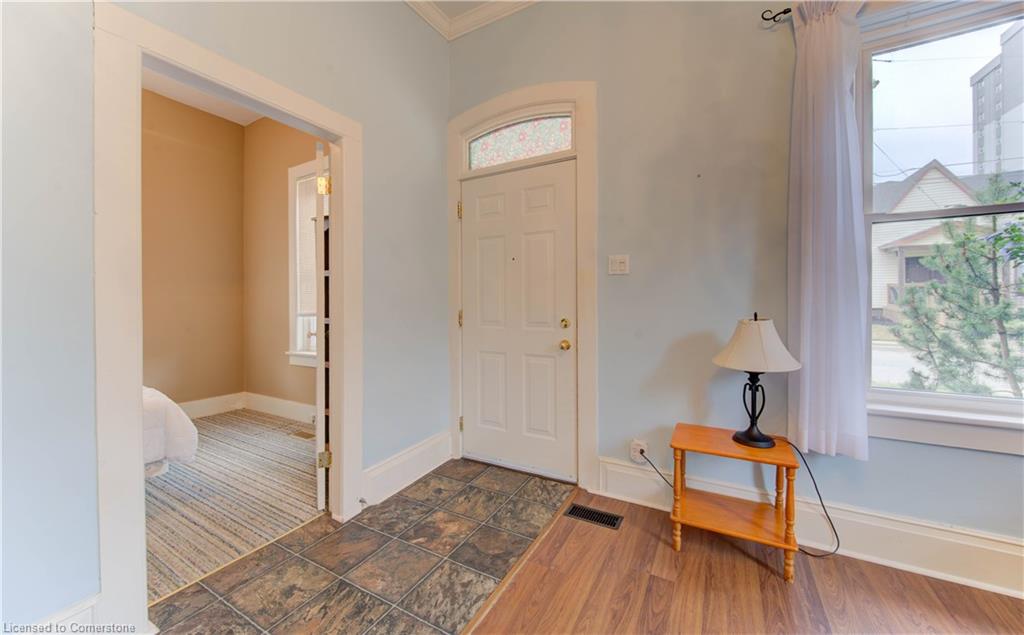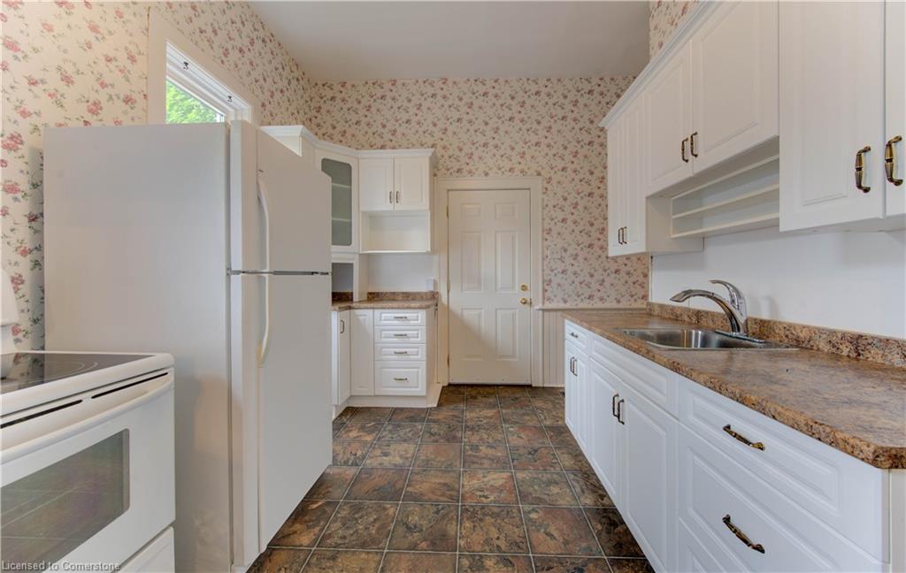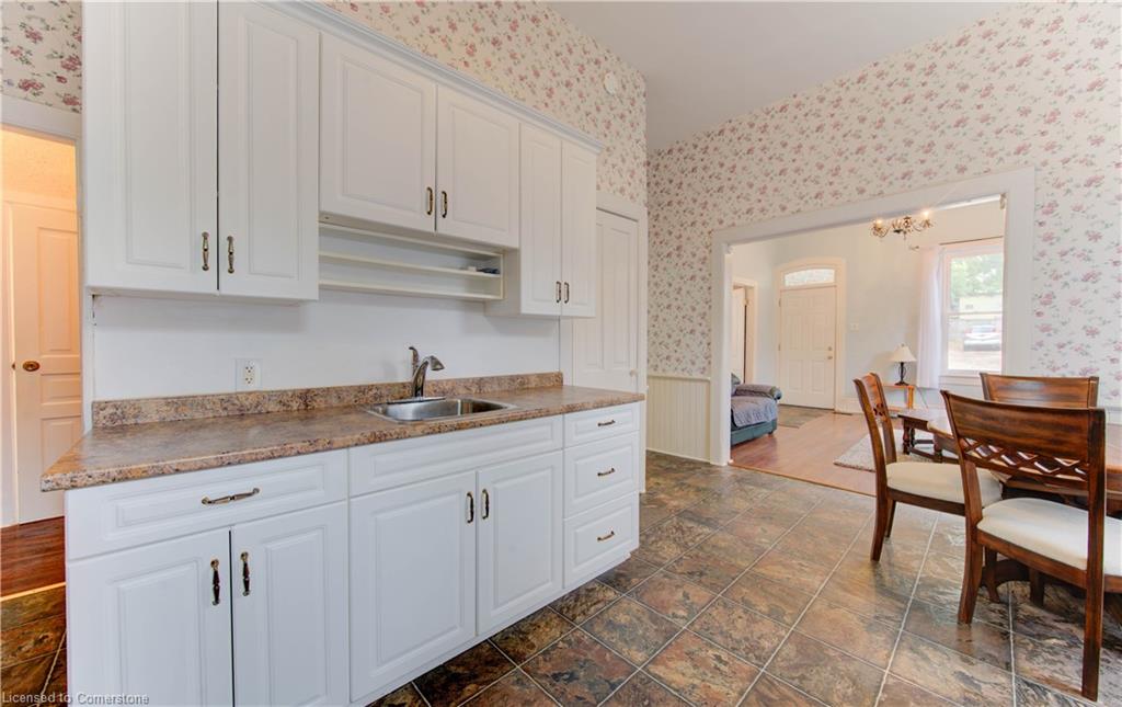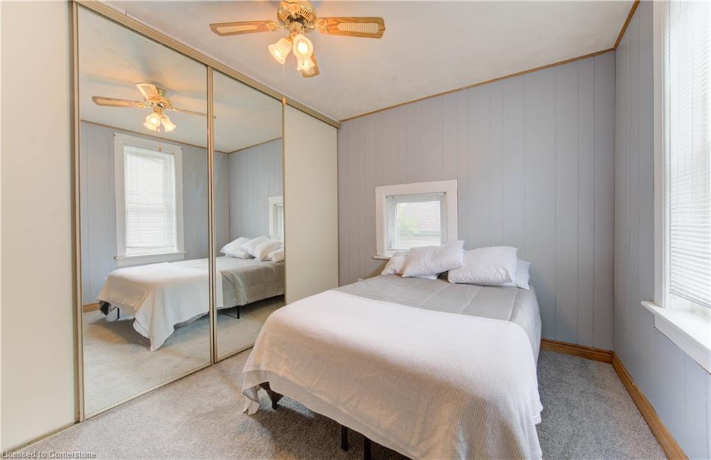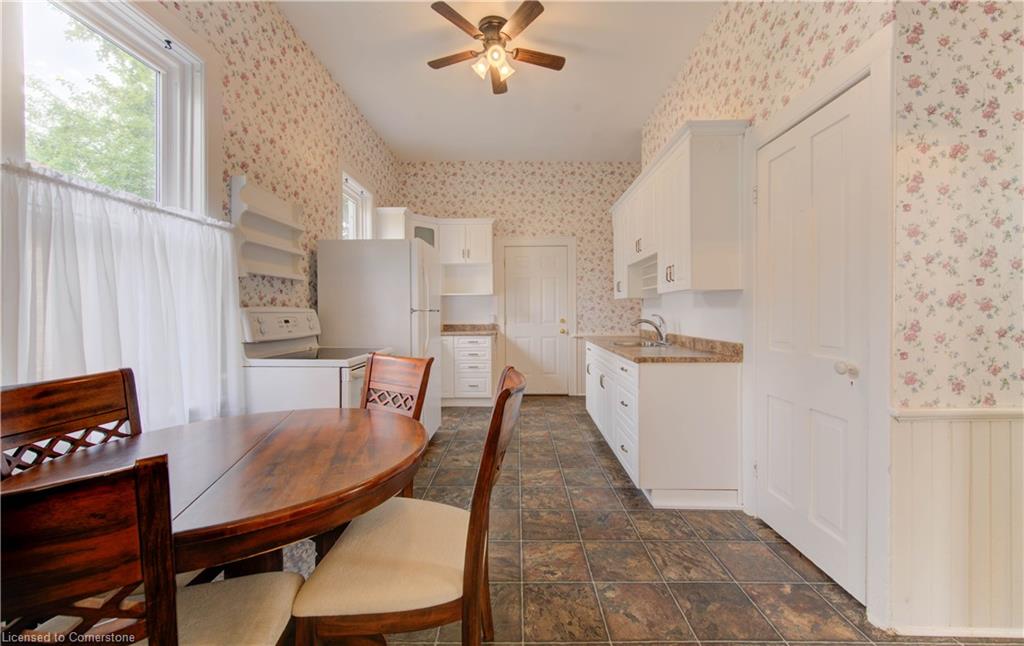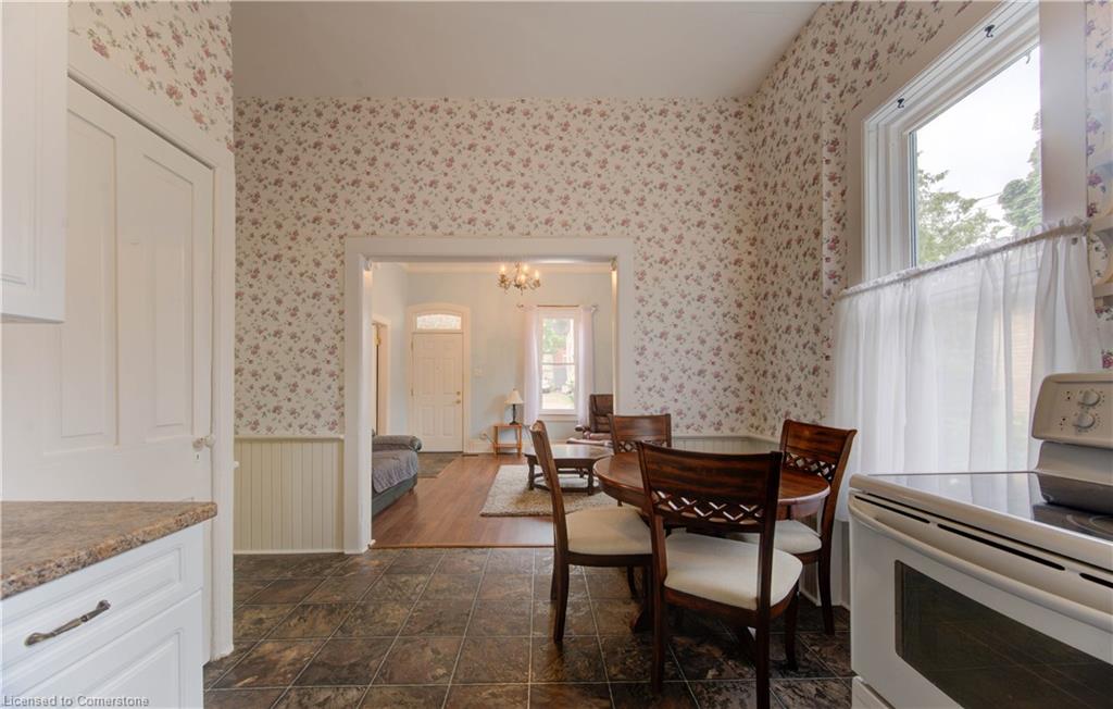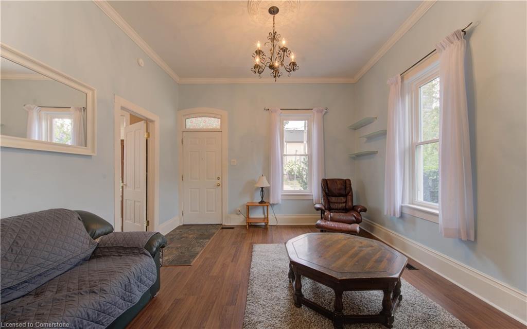 Welcome to 142 Church Street – Where Charm Meets Possibility! Own this single detached home for less than a condo! Own this piece of history in one of Kitchener’s oldest homes, built in 1855 and lovingly maintained and updated. Nestled in a mature Kitchener neighborhood, this solid brick bungalow blends timeless Regency-style architecture and the central front door, flanked by large windows, welcomes you into a single-storey residence that reflects the grace of its era. A charming veranda with trellis-like supports adds curb appeal and a perfect spot to enjoy quiet mornings or evening sunsets. Inside, soaring 10 and a half foot ceilings create an airy, open feel, while the living room sets the tone for cozy evenings and casual gatherings. Natural light pours through updated vinyl windows, including distinctive Gothic-style panes that add character. The eat-in kitchen offers white cabinetry. Whether you are sipping morning coffee or preparing a family meal, this space is both functional and welcoming. Two bedrooms provide flexibility for families and guests. Office may also be used as third bedroom. A four-piece bath is conveniently located, and the basement includes newer laundry appliances and an owned water heater. The home features a Carrier furnace, central air, and a 125 AMP electrical panel ready for EV upgrades. Roof is approximately 10 years old. Outside, enjoy a low-maintenance yard with a charming patio and a handy shed with little upkeep required, making this an ideal retreat for those who value simplicity and peace. Whether you’re starting out, settling down, or investing wisely, 142 Church Street is an easy place to call home.