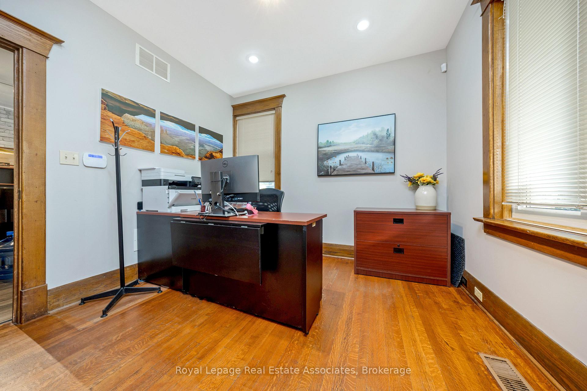 Historic Charm Meets Modern Comfort in the Heart of Milton. Welcome to 142 Martin Street, a beautifully restored century home (circa 1920) located on a generous lot just steps from downtown Milton. Rich in character and timeless appeal, this stately property boasts original interior doors, trim, and a grand staircase that have been lovingly preserved. The refinished original hardwood floors and soaring ceilings create a warm, elegant atmosphere, while the inviting front porch adds a touch of classic charm. Thoughtfully updated for todays lifestyle, the home features modernized essentials including the roof, windows, electrical, and HVAC systems offering peace of mind without compromising its heritage. Currently configured as a professional office space, the layout provides flexibility and can be easily converted back into a stunning family residence. Located in a sought-after neighbourhood surrounded by newly renovated and expanded homes, and just steps to the newly revamped Martin Street Public School, this unique property presents a rare opportunity to own a piece of Milton’s history while enjoying all the conveniences of downtown living.