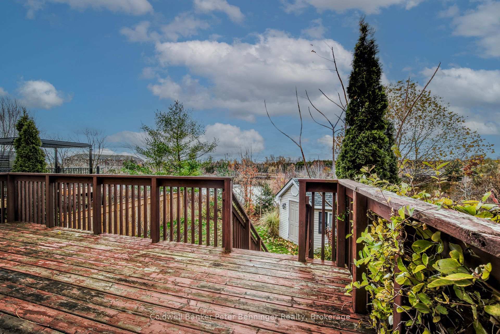 Welcome to 142 Severn Drive! This beautiful family home is situated in a desirable & quiet neighbourhood overlooking greenspace & pond! This detached 3 bedroom home has lots to offer and is complete with finished walkout basement! The main floor features maple hardwood floors, ceramic in entrance, kitchen & baths. Walkout from kitchen dining area to entertainment deck with scenic views. Functional kitchen features ample cabinet & counter space; double pantry; & breakfast bar. Upper level showcases a sizeable primary bedroom with private ensuite. The two additional bedrooms are also of great dimension and one highlighting a vaulted ceiling and picturesque window. Laundry is conveniently located on second level close by a 4 piece bath. The lower level boasts a bright finished rec with rough- in bath. Interlock patio under the deck and separate storage shed in backyard. Situated in desirable east Guelph; nearby schools, parks, trails, sports fields, shopping & all amenities. Make this home yours!